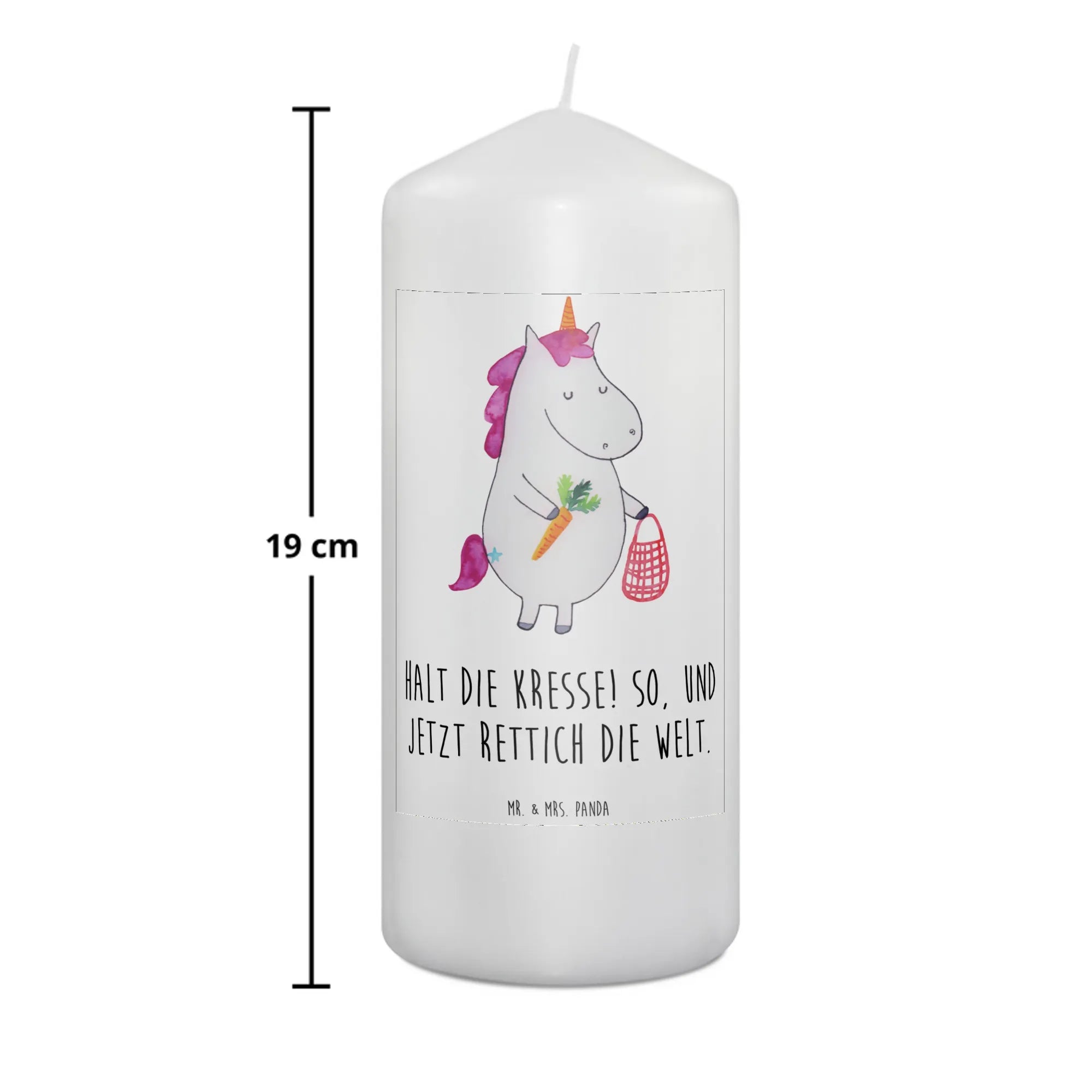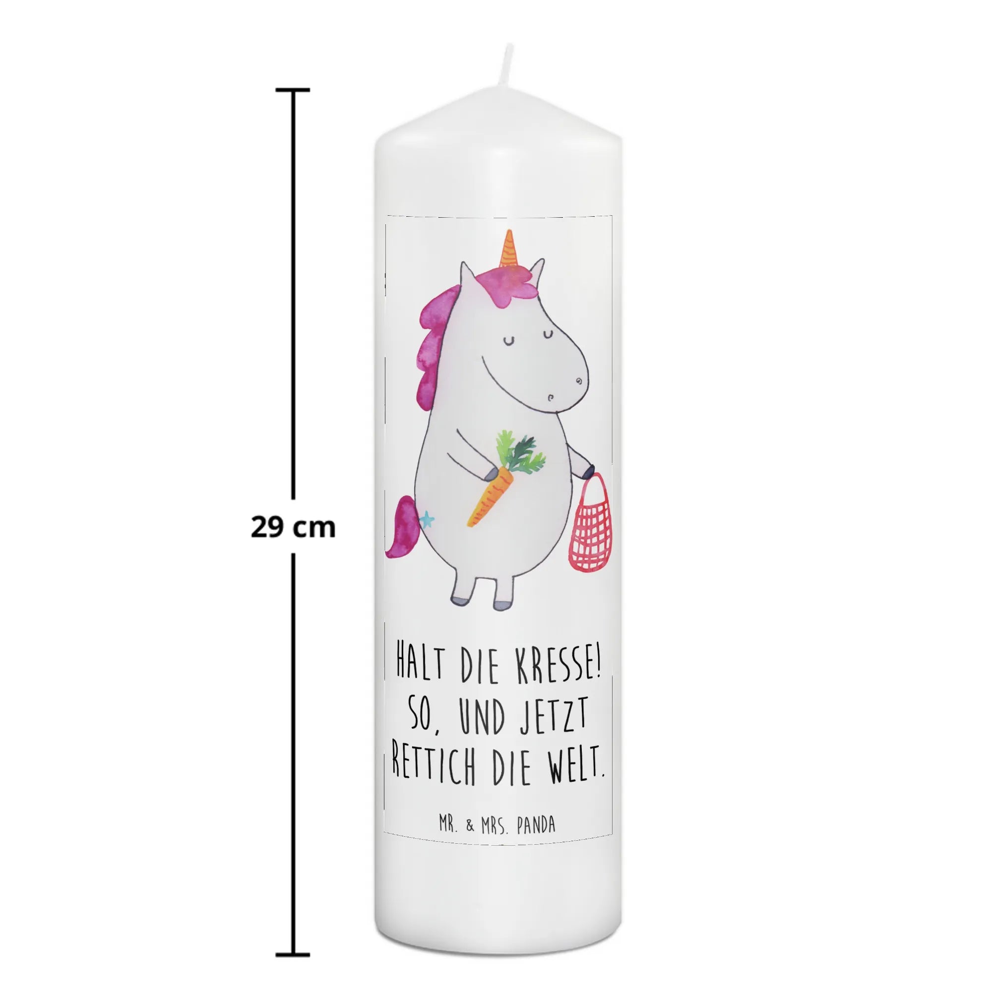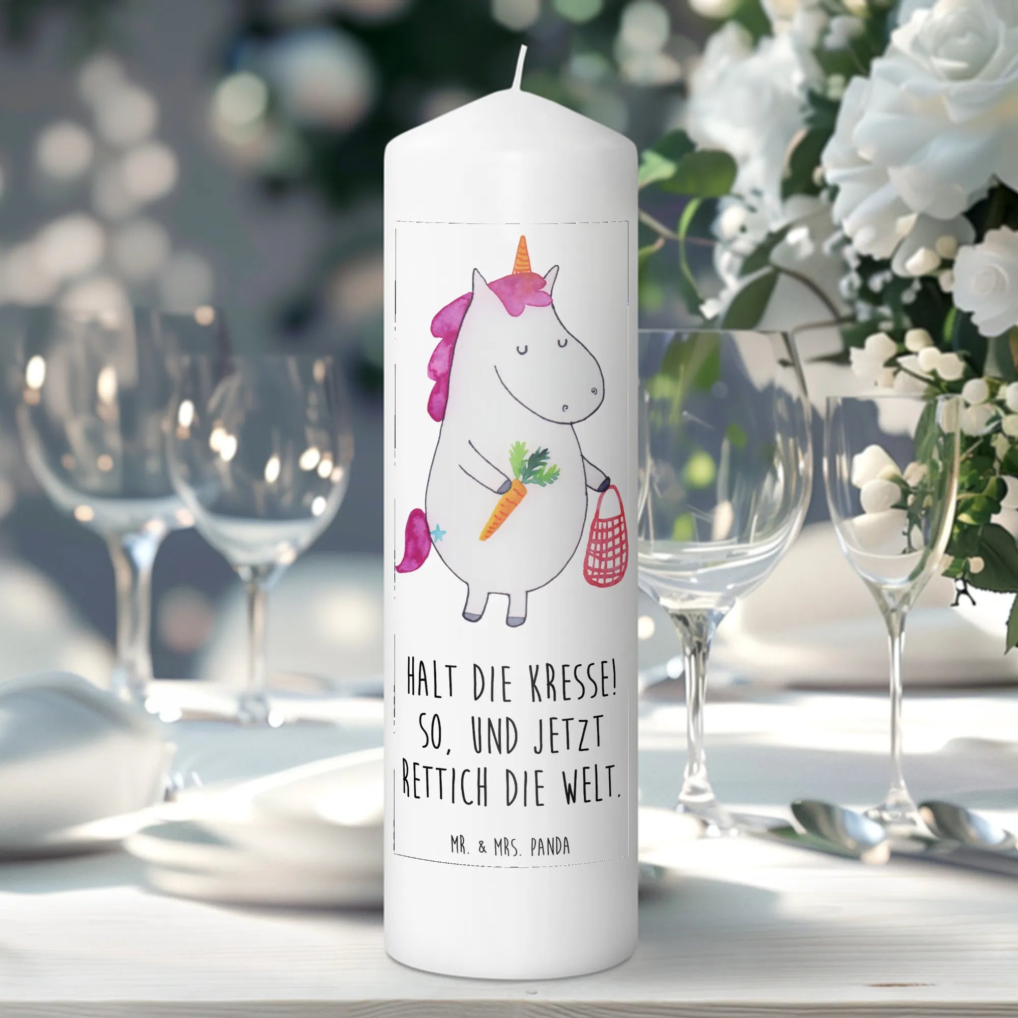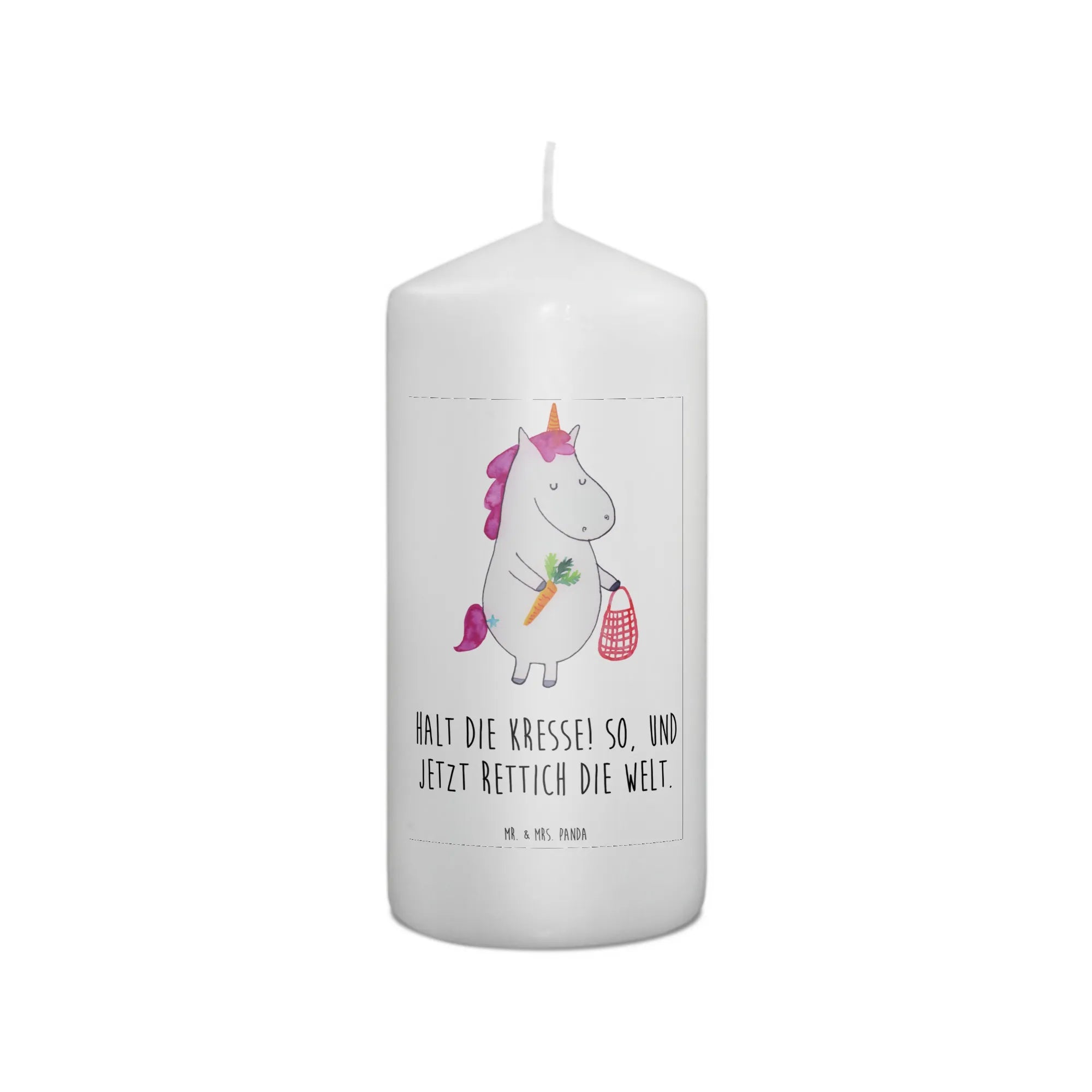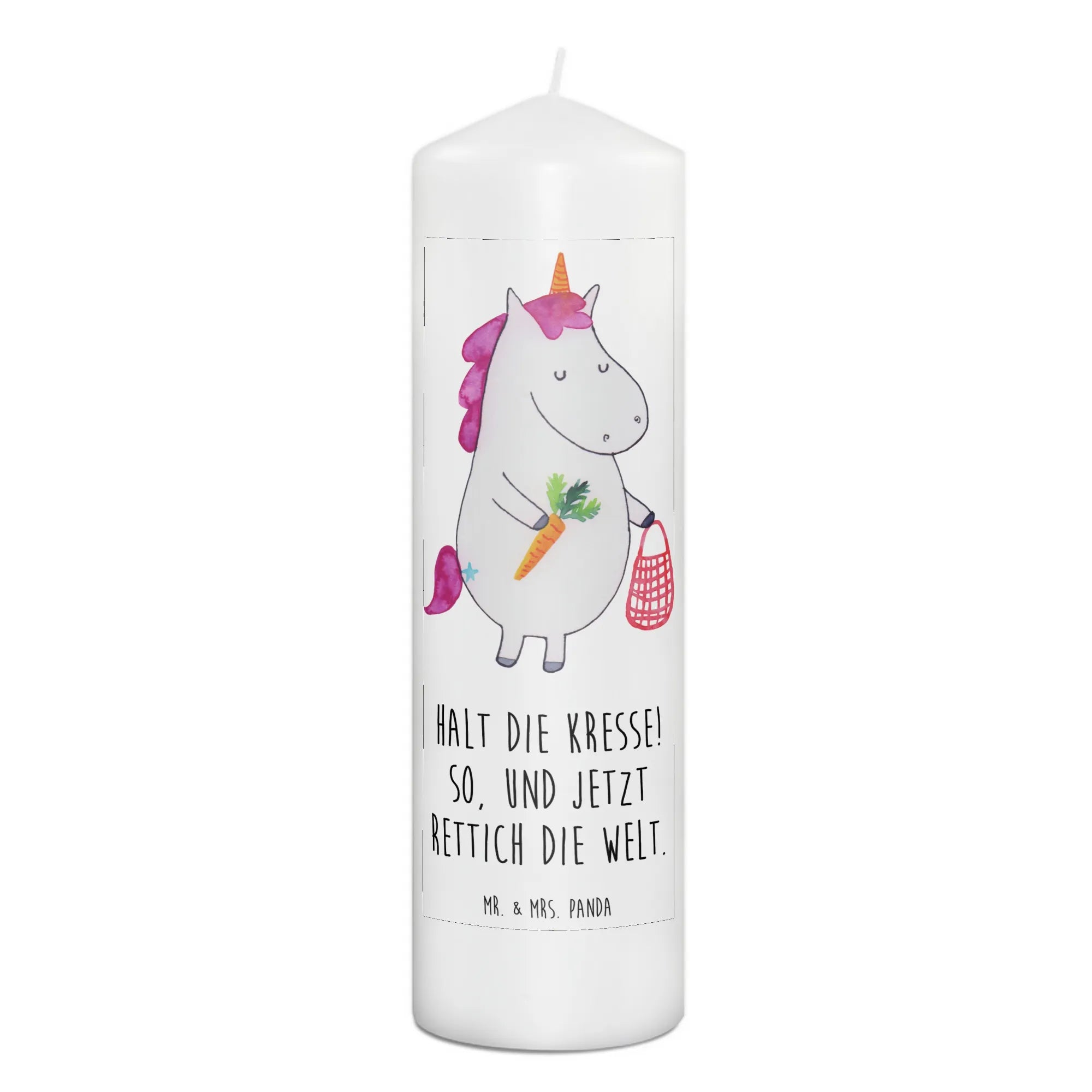 Entdecke die zauberhafte Taufkerze mit dem liebevollen Motiv "Einhorn Gemüse" von Mr. & Mrs. Panda.