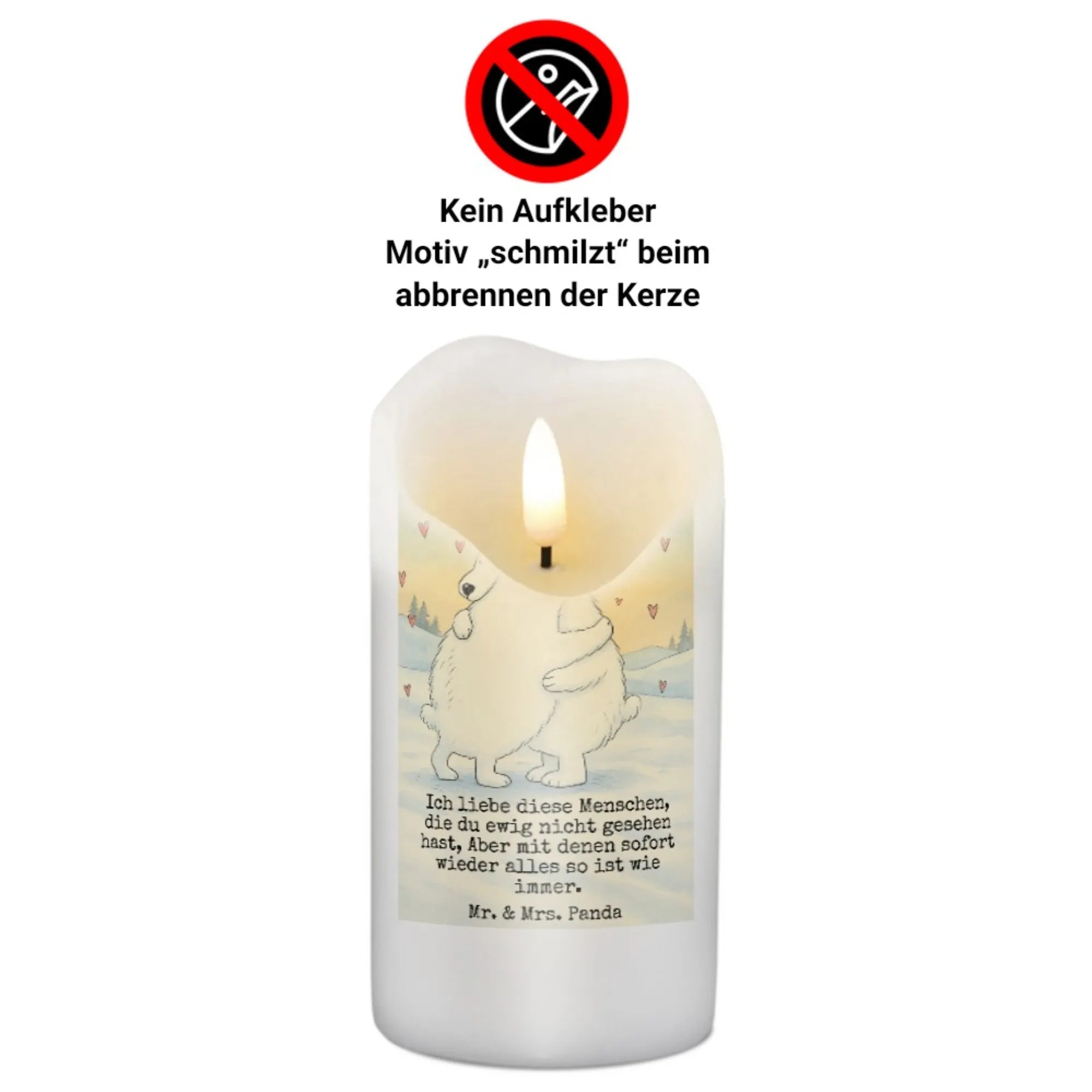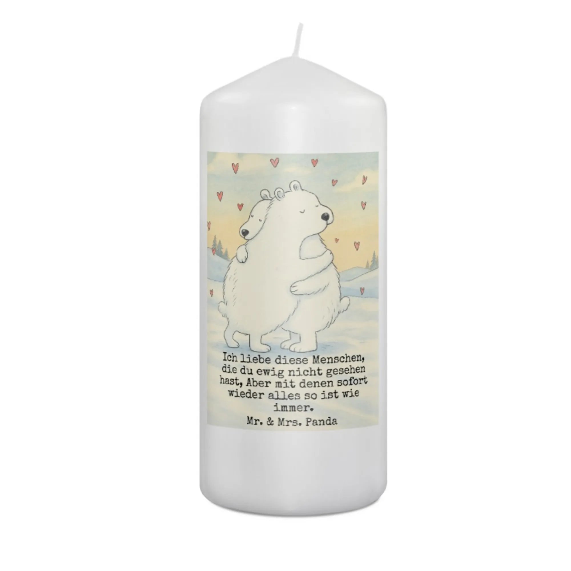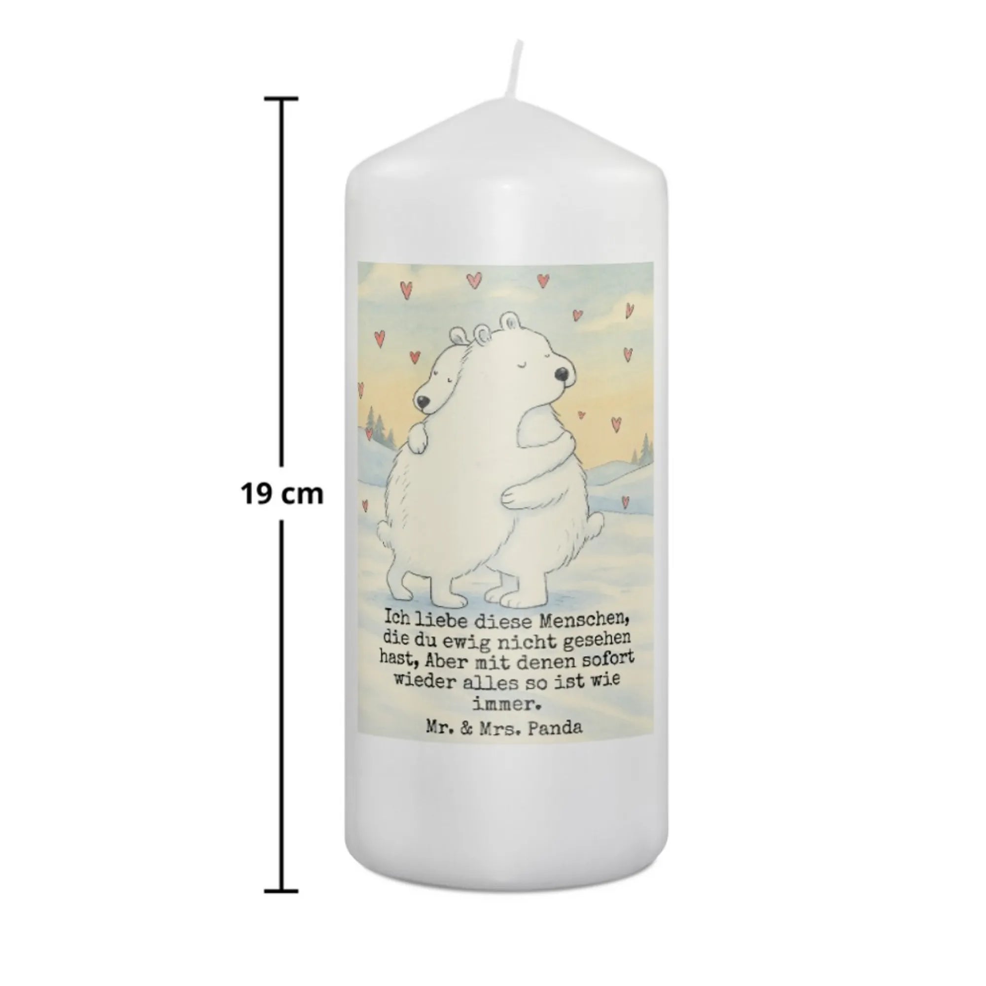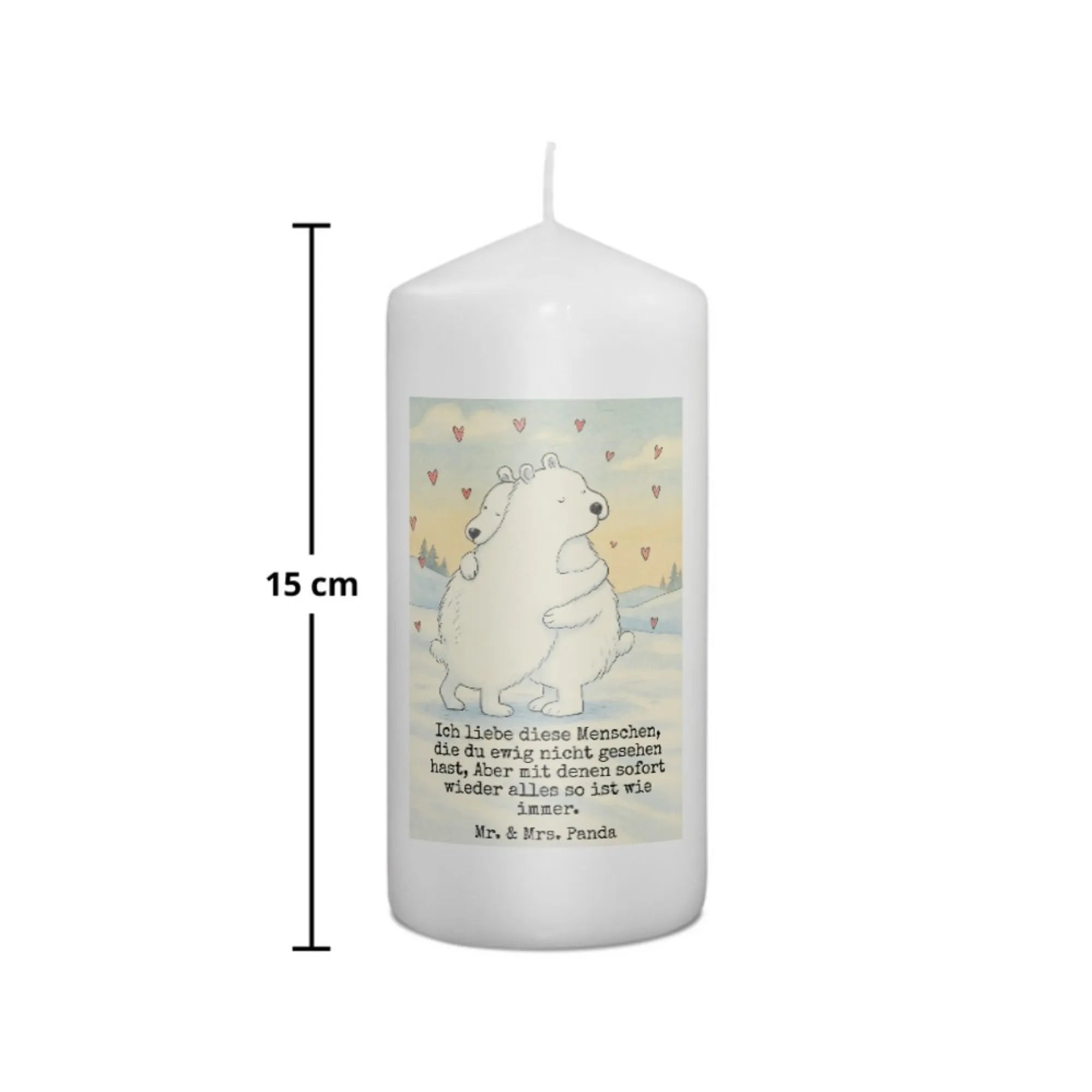 Kerze Eisbär Umarmen Design - 15 x 7 cm - mit Spruch