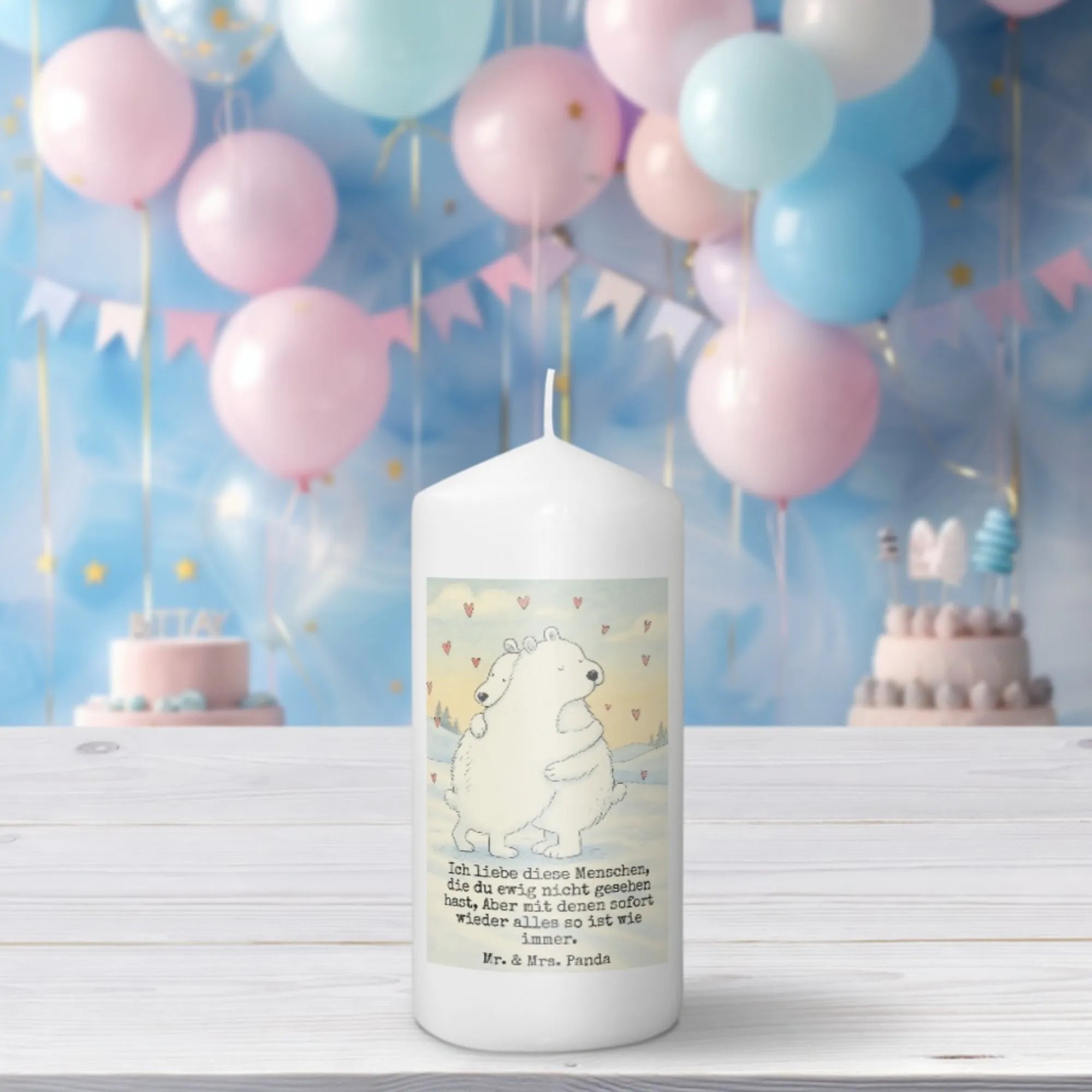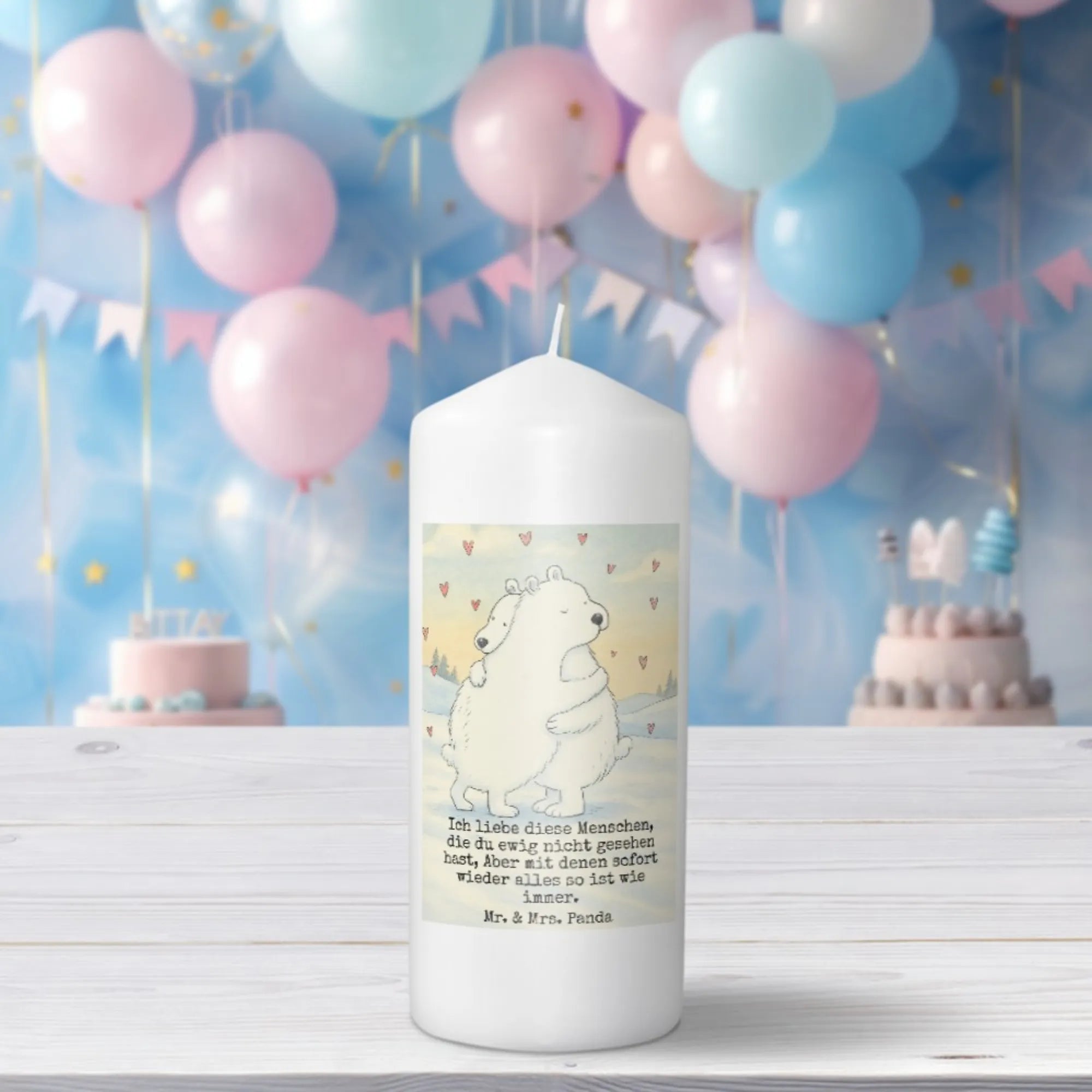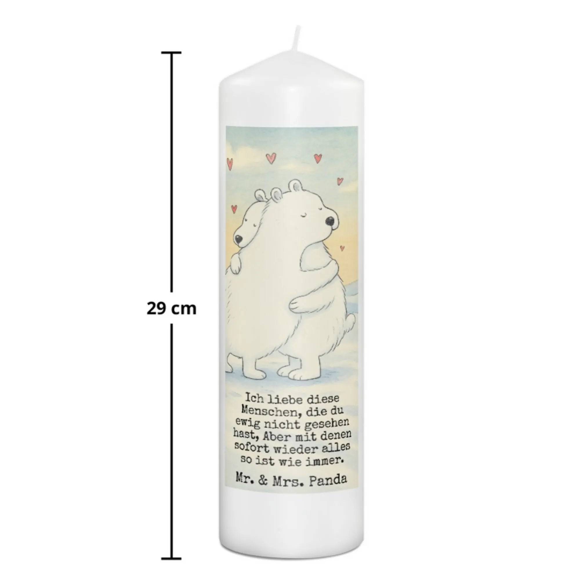 Kerze Eisbär Umarmen Design - 15 x 7 cm - mit Spruch