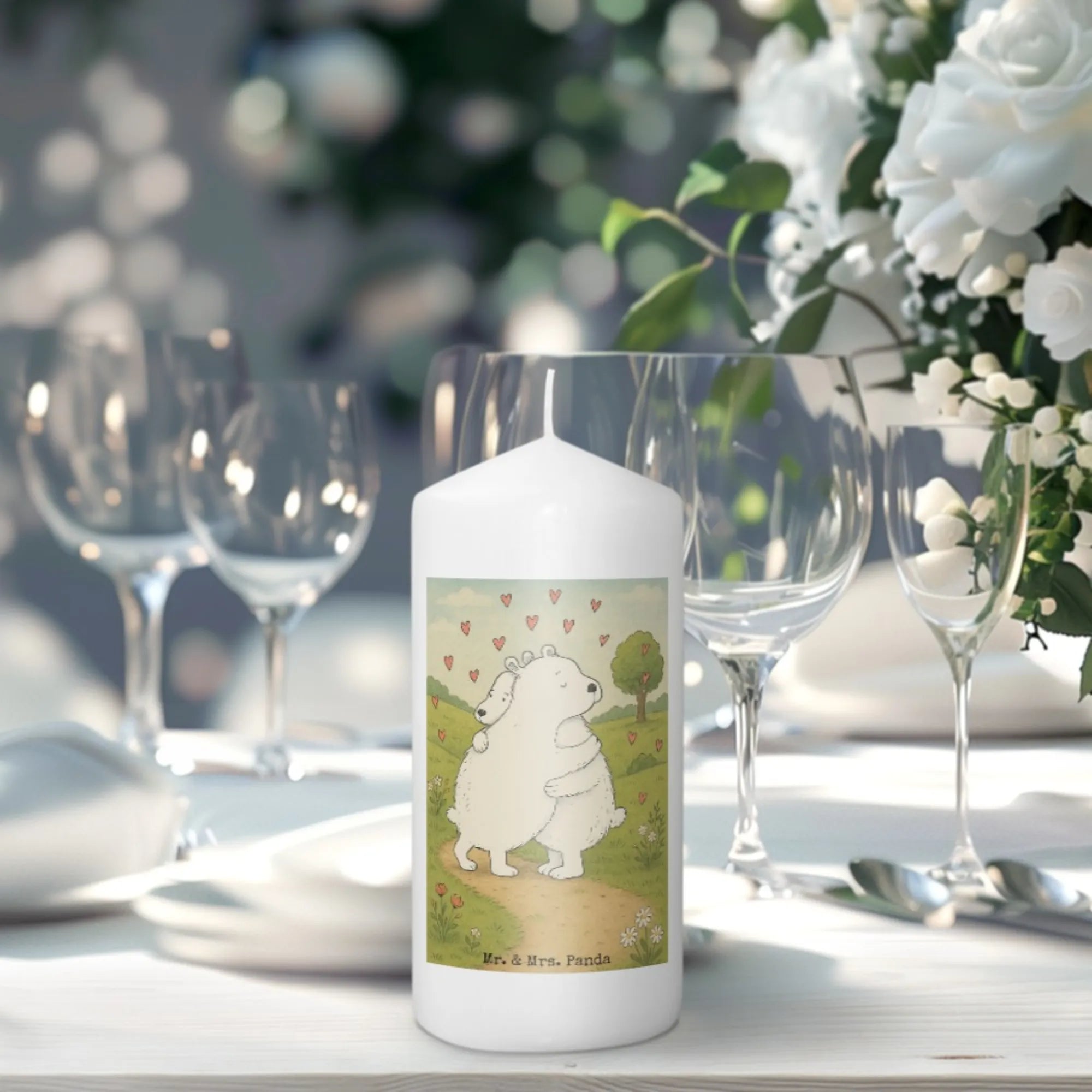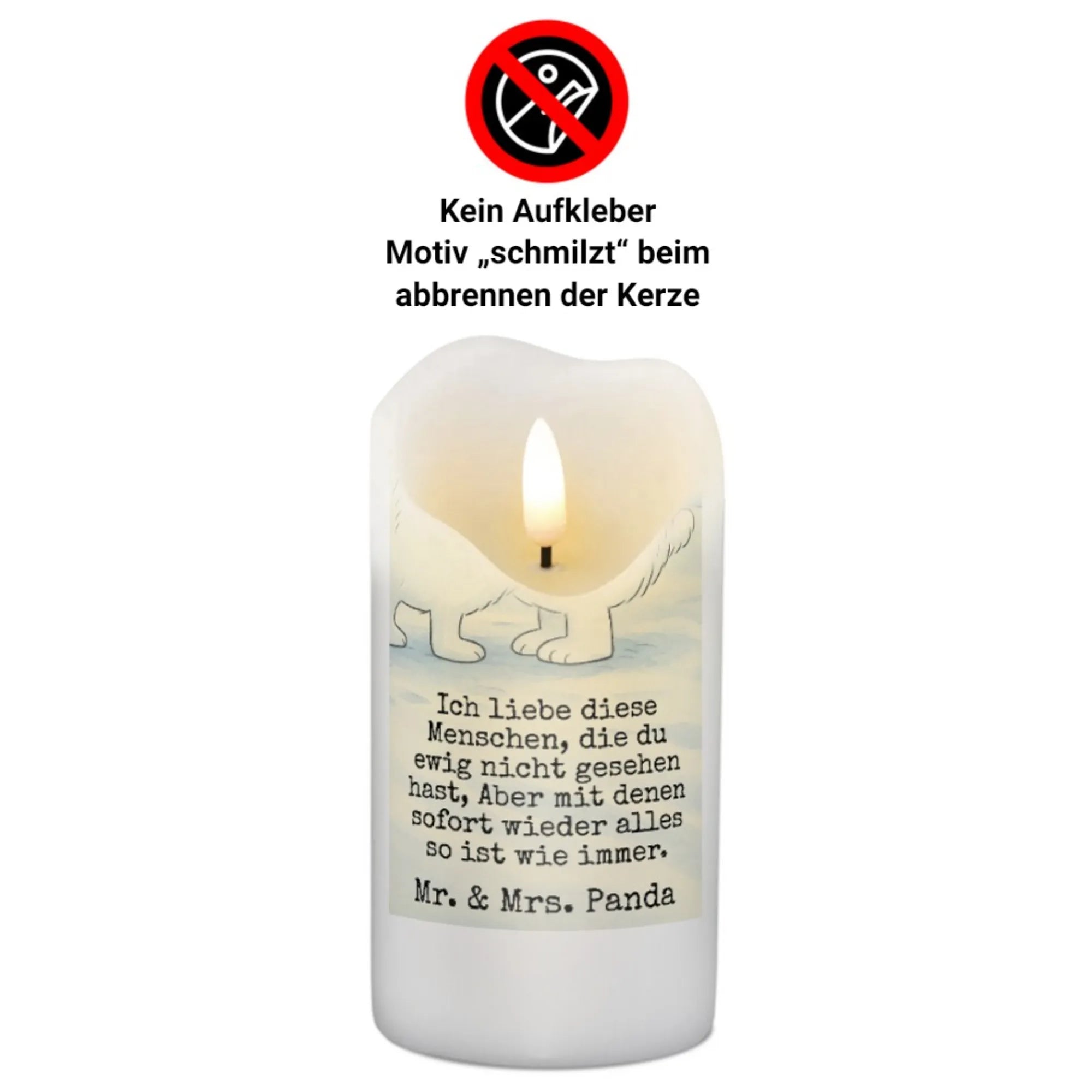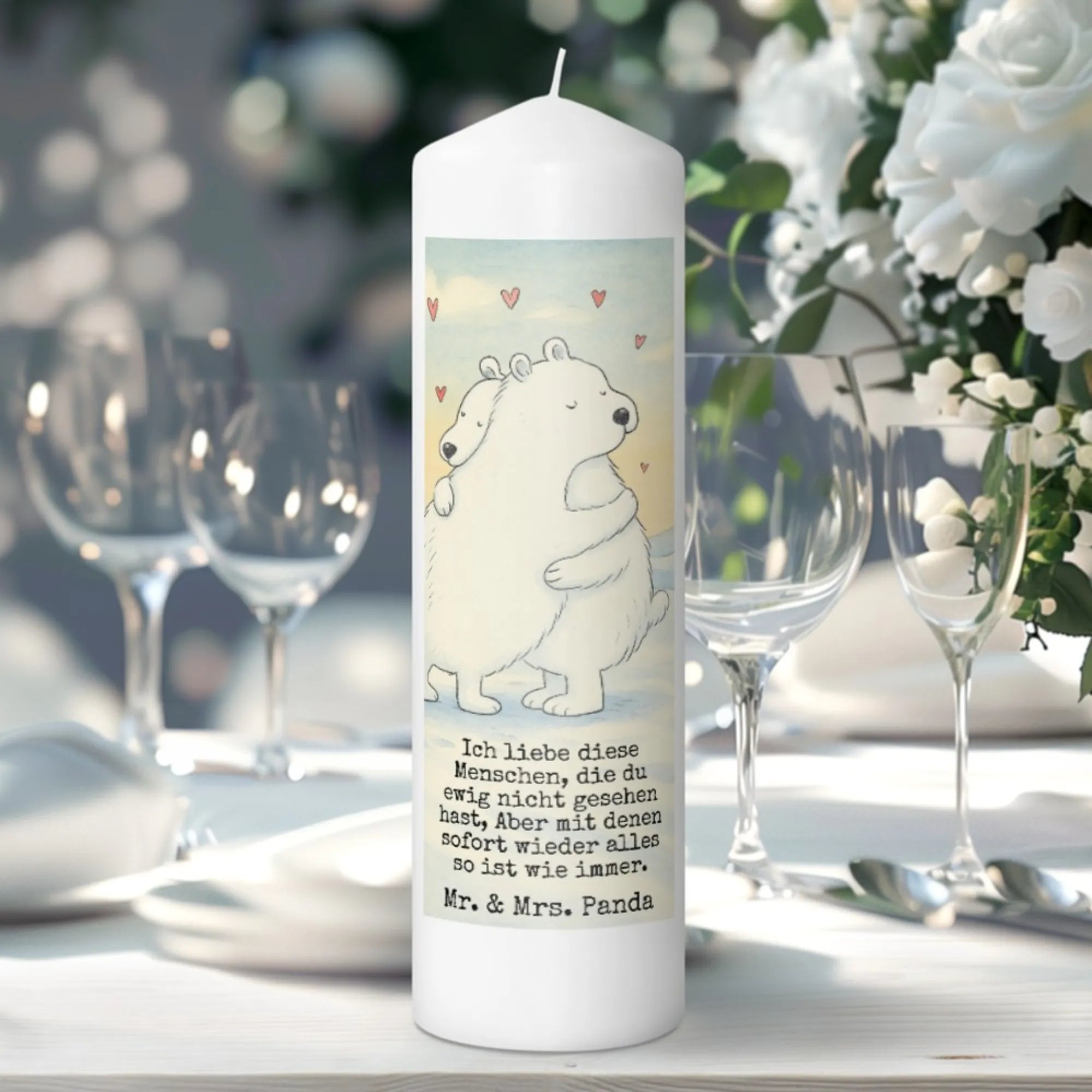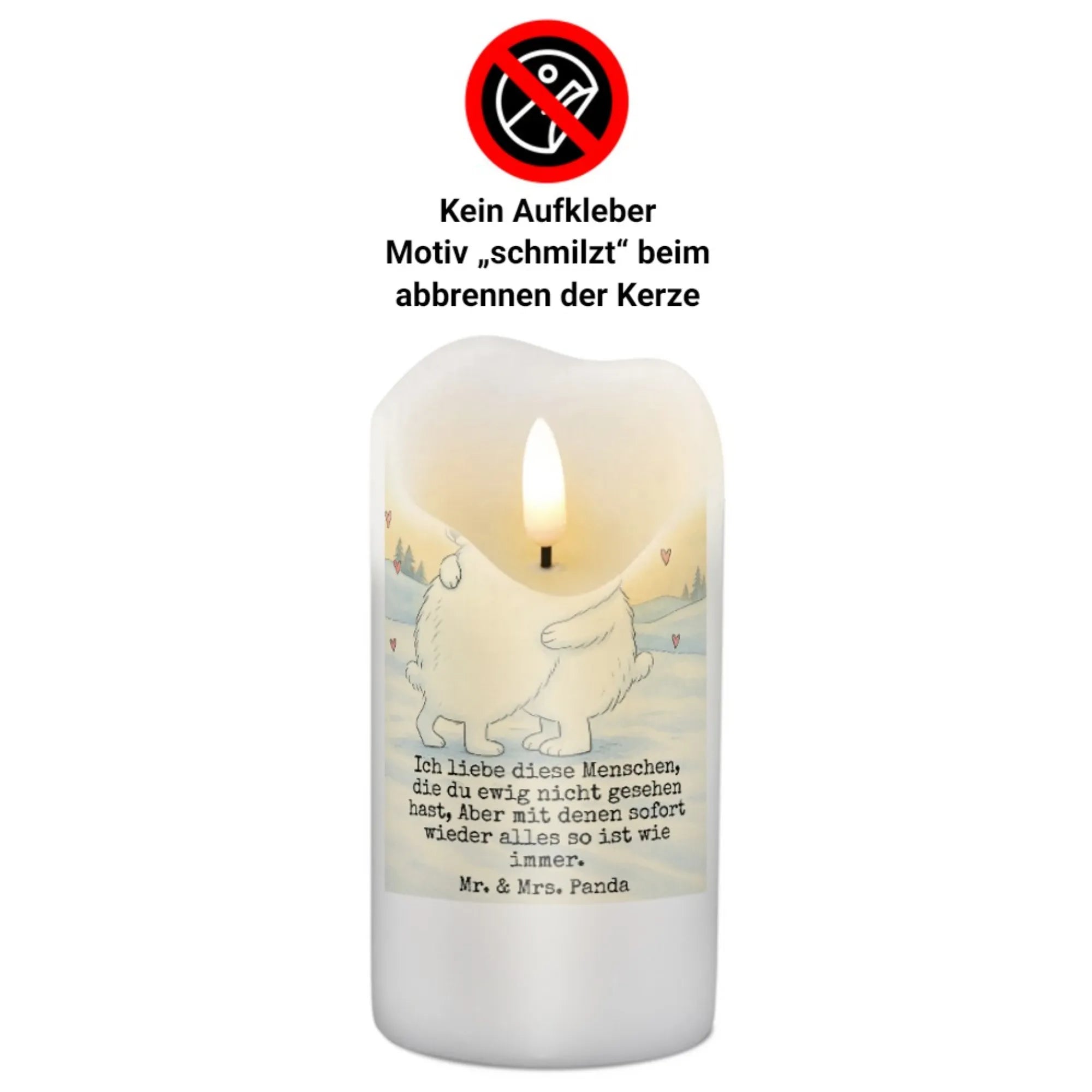 Kerze Eisbär Umarmen Design - 15 x 7 cm - mit Spruch