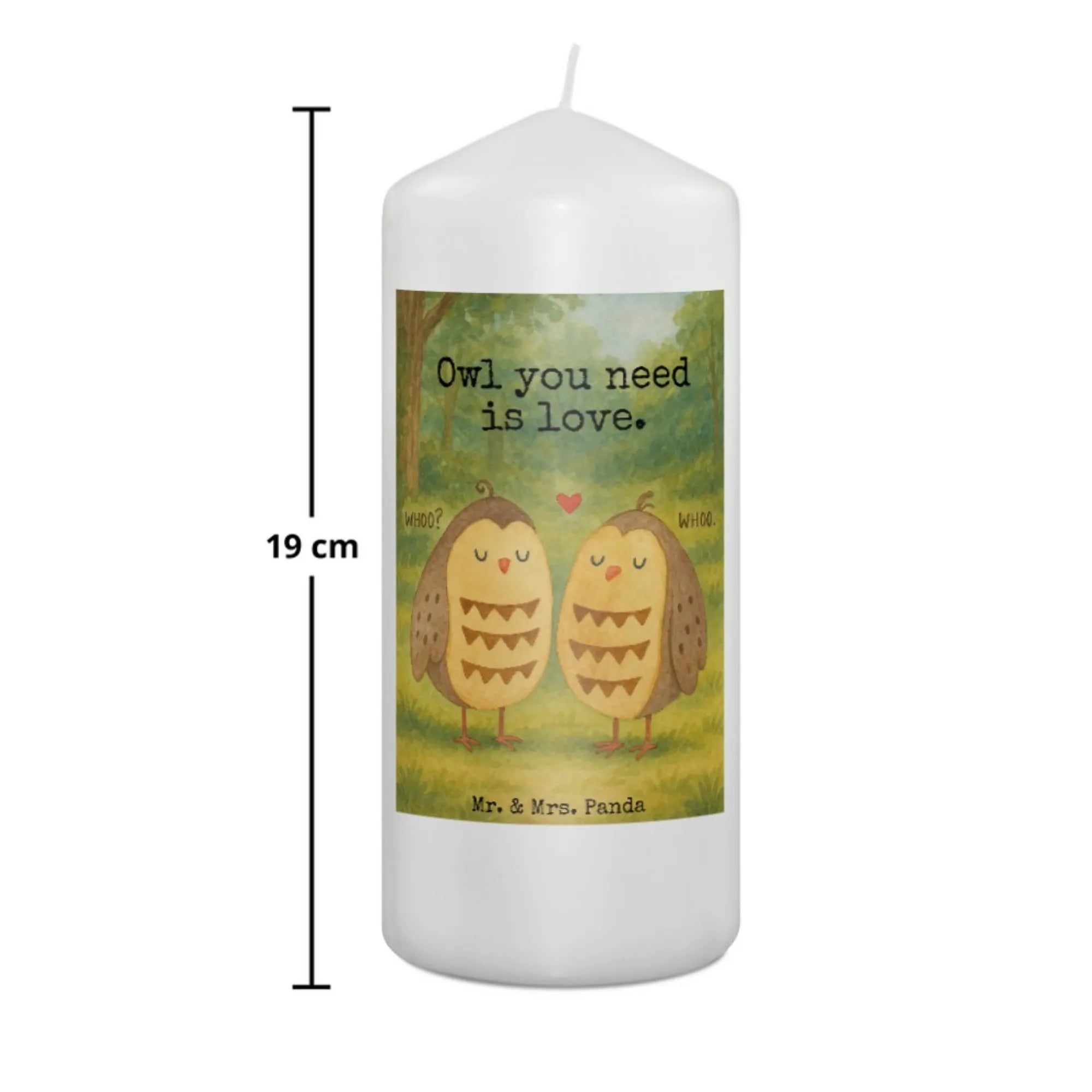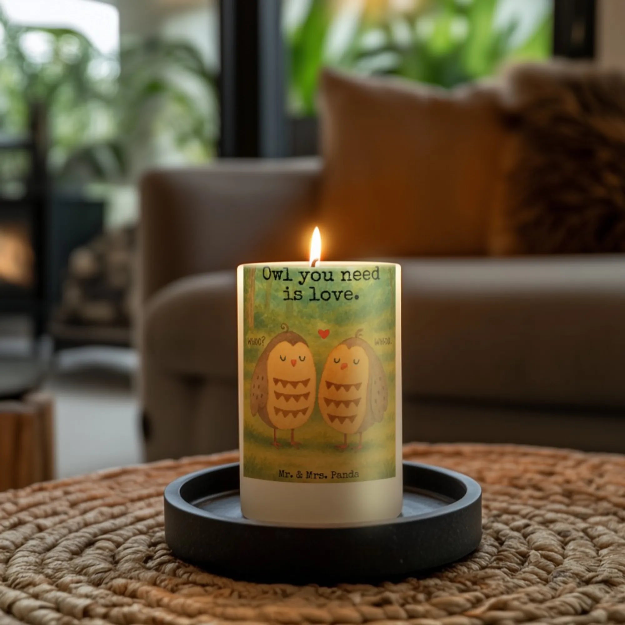 Kerze Eulen Liebe Design - 19 x 8 cm - mit Spruch