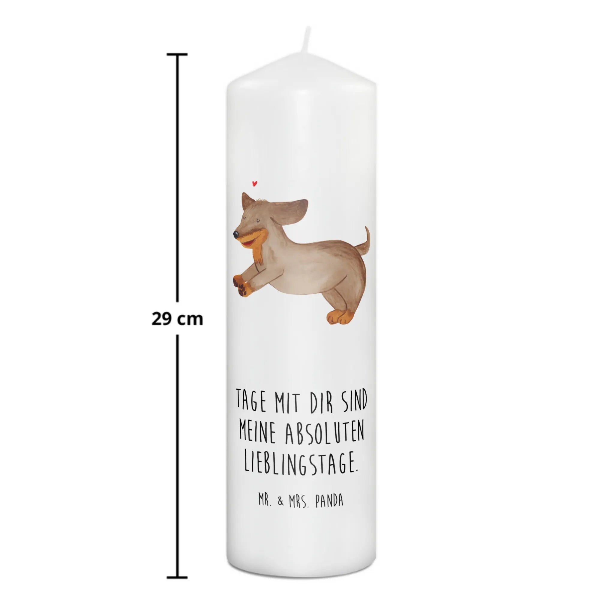 Kerze Hund Dackel fröhlich - 29 x 8 cm XL - mit Spruch