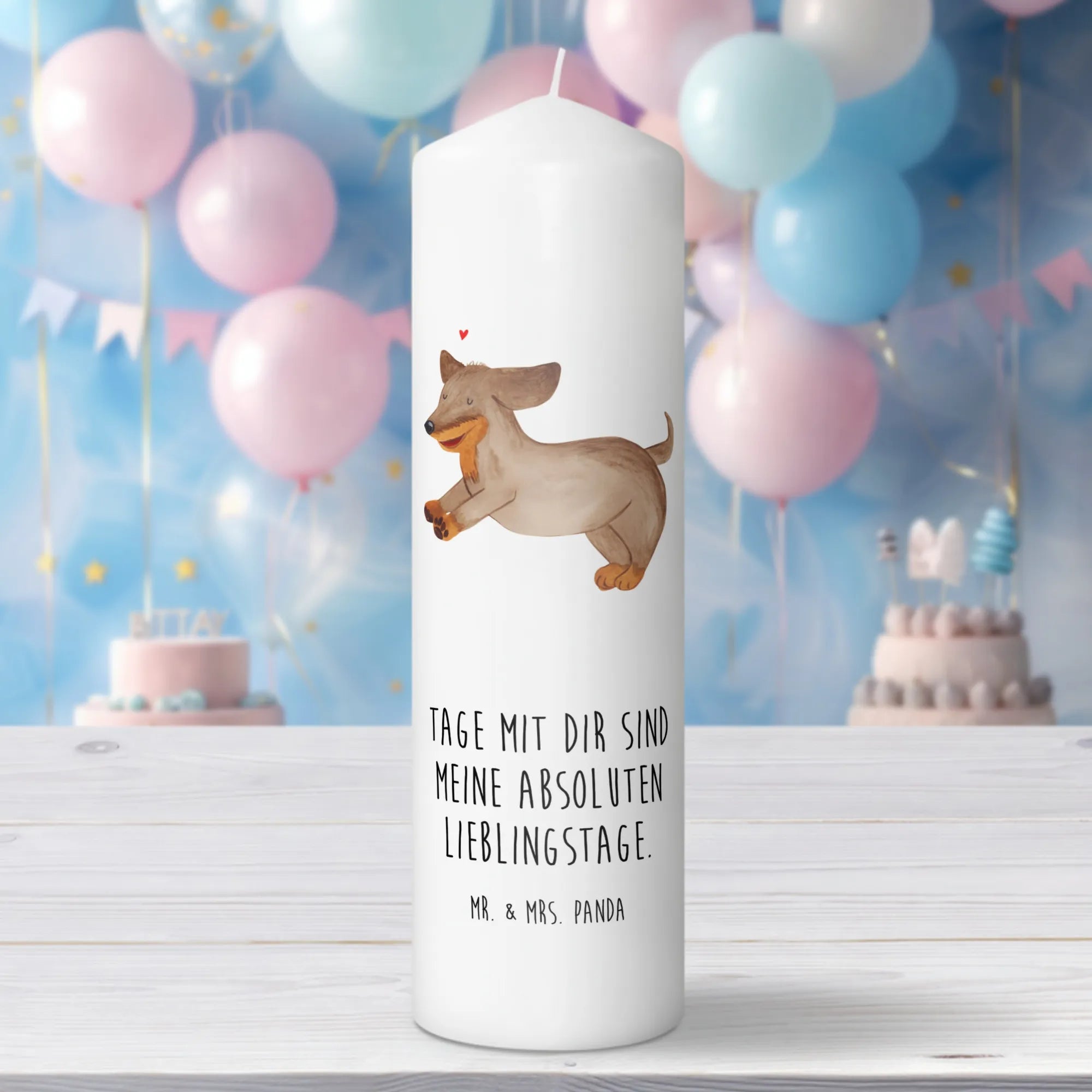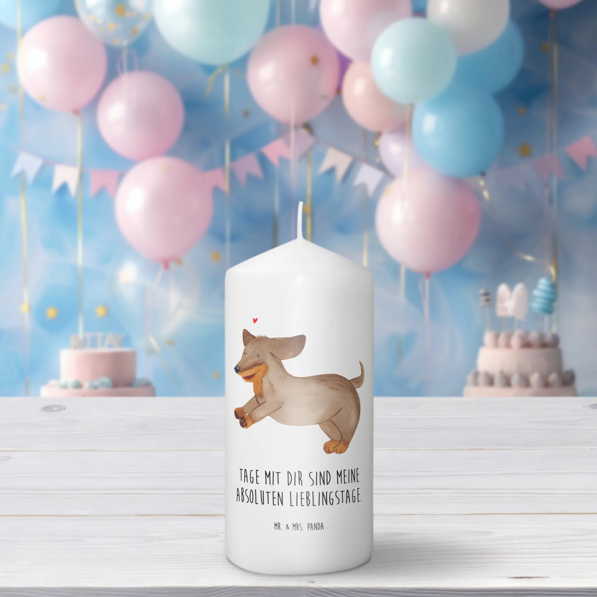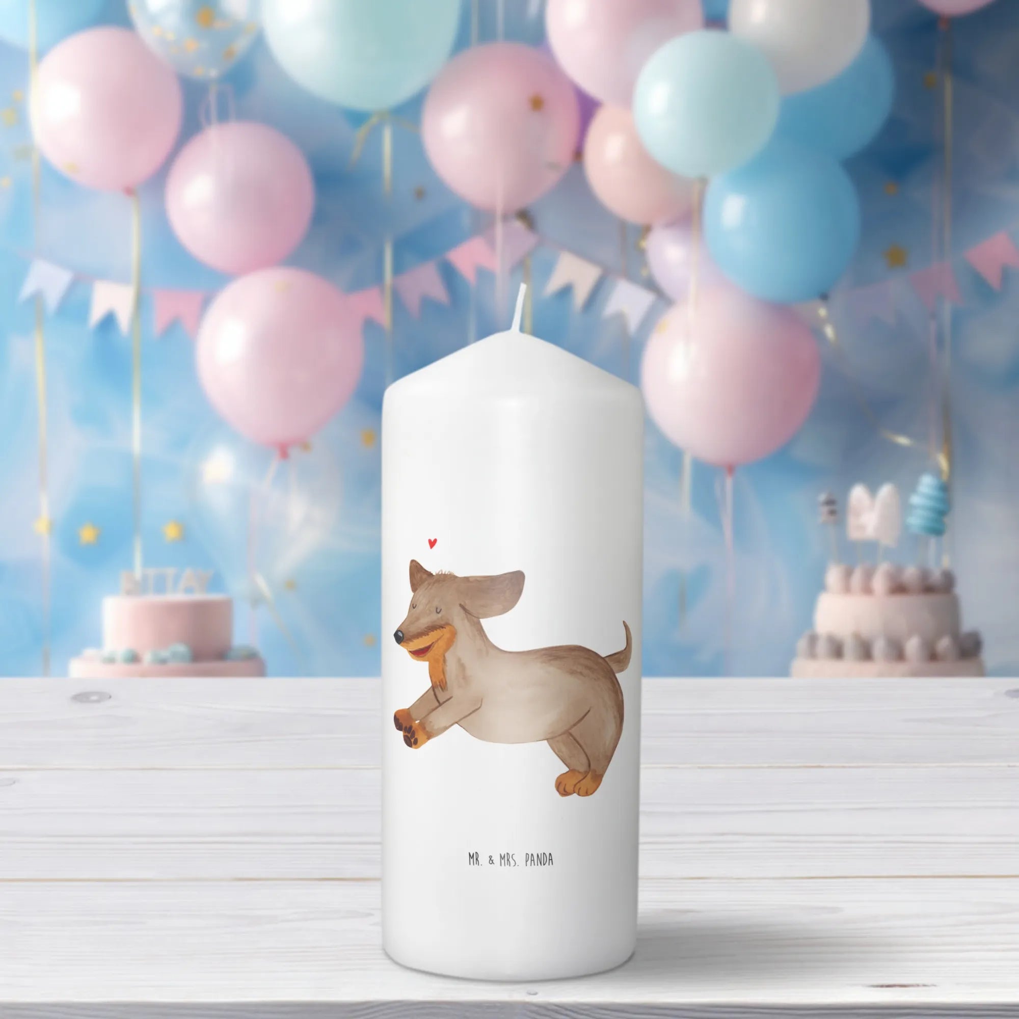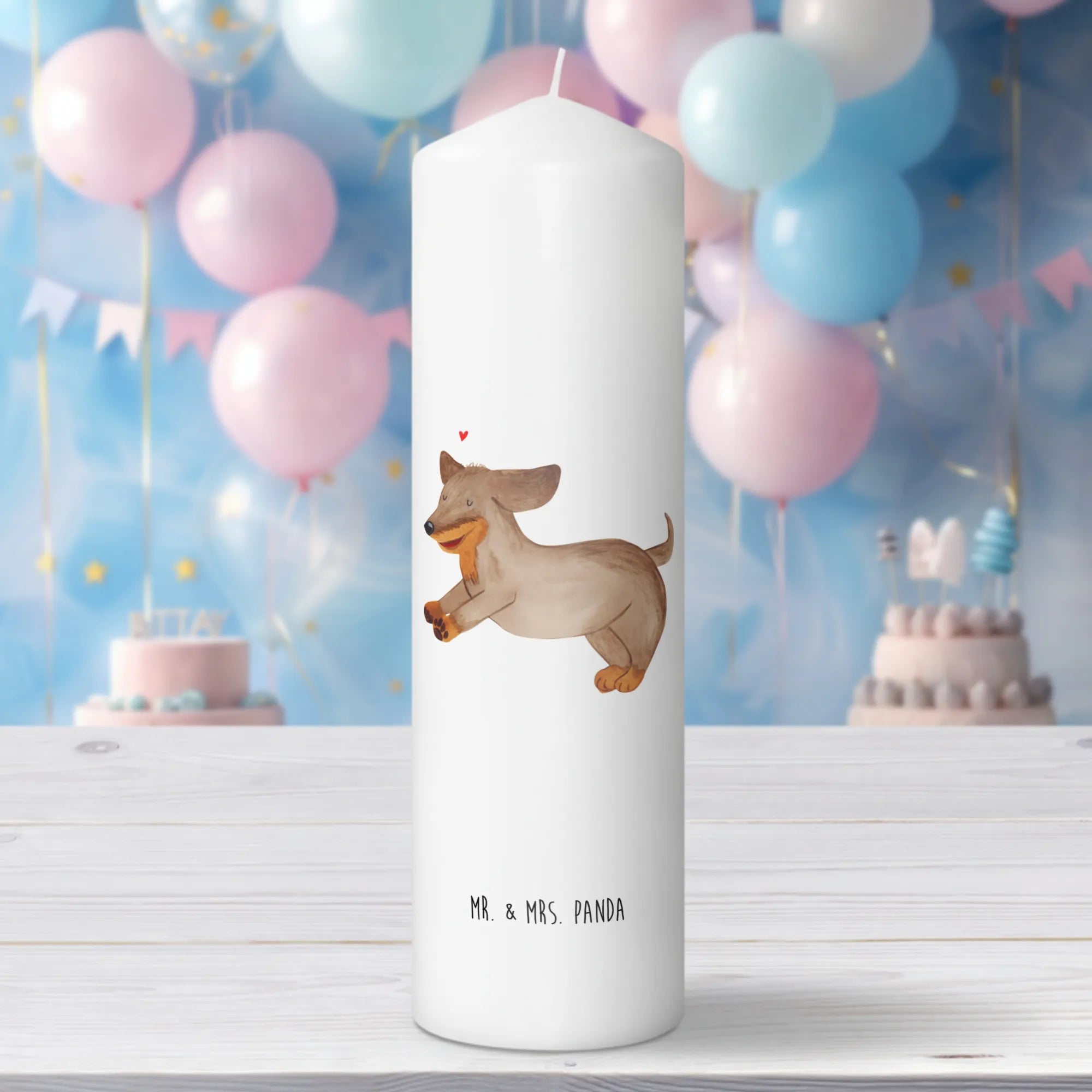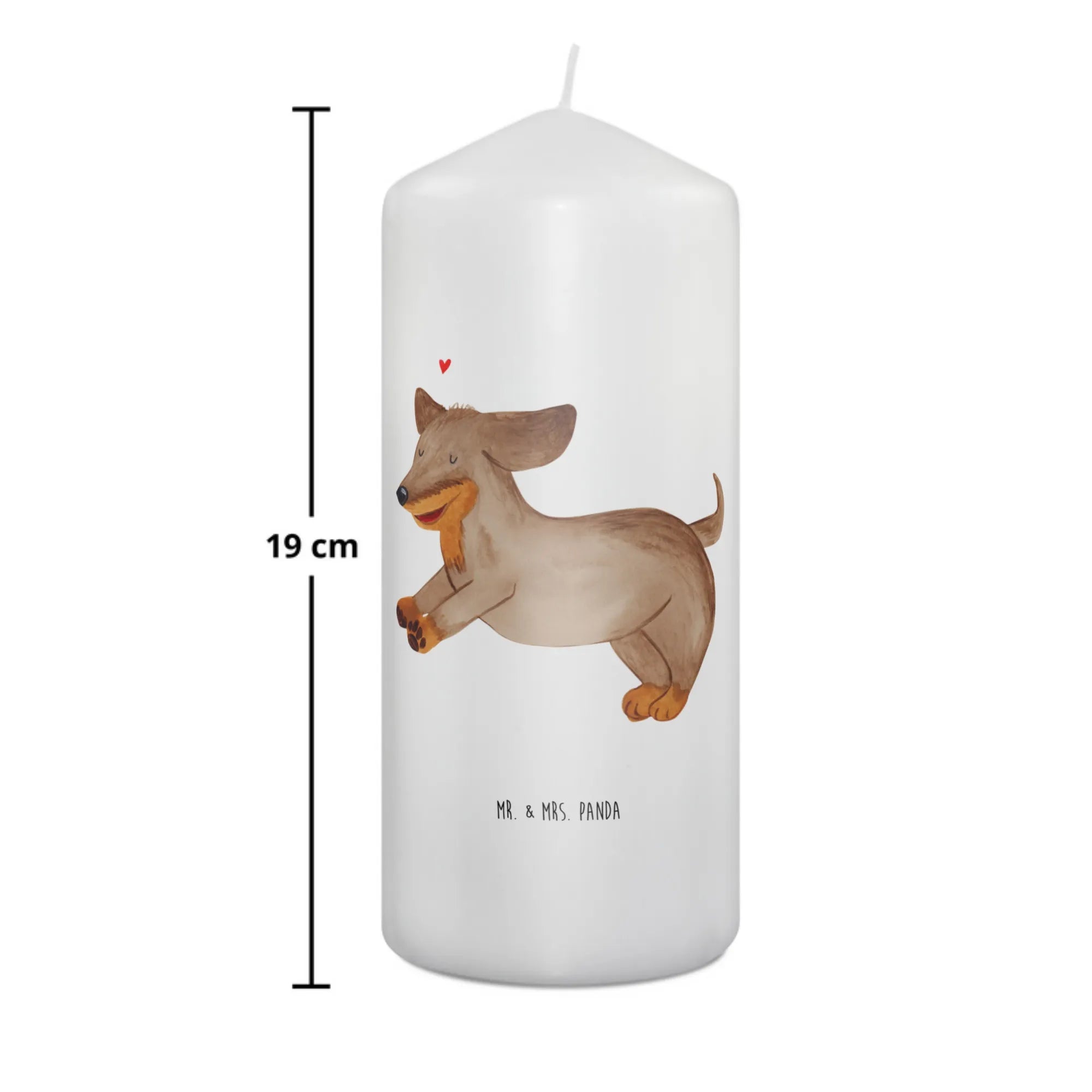 Die fröhliche Dackel-Kerze aus der Hunde Kollektion von Mr. & Mrs. Panda ist das perfekte Geschenk für alle Hundeliebhaber! Ob zu Geburtstagen, zur Taufe oder zur Kommunion, diese Kerze bringt ein Stückchen Freude in jeden Raum. Sie zeigt einen süßen Dackel, der begeistert durch die Gegend springt und sorgt für eine fröhliche Atmosphäre.