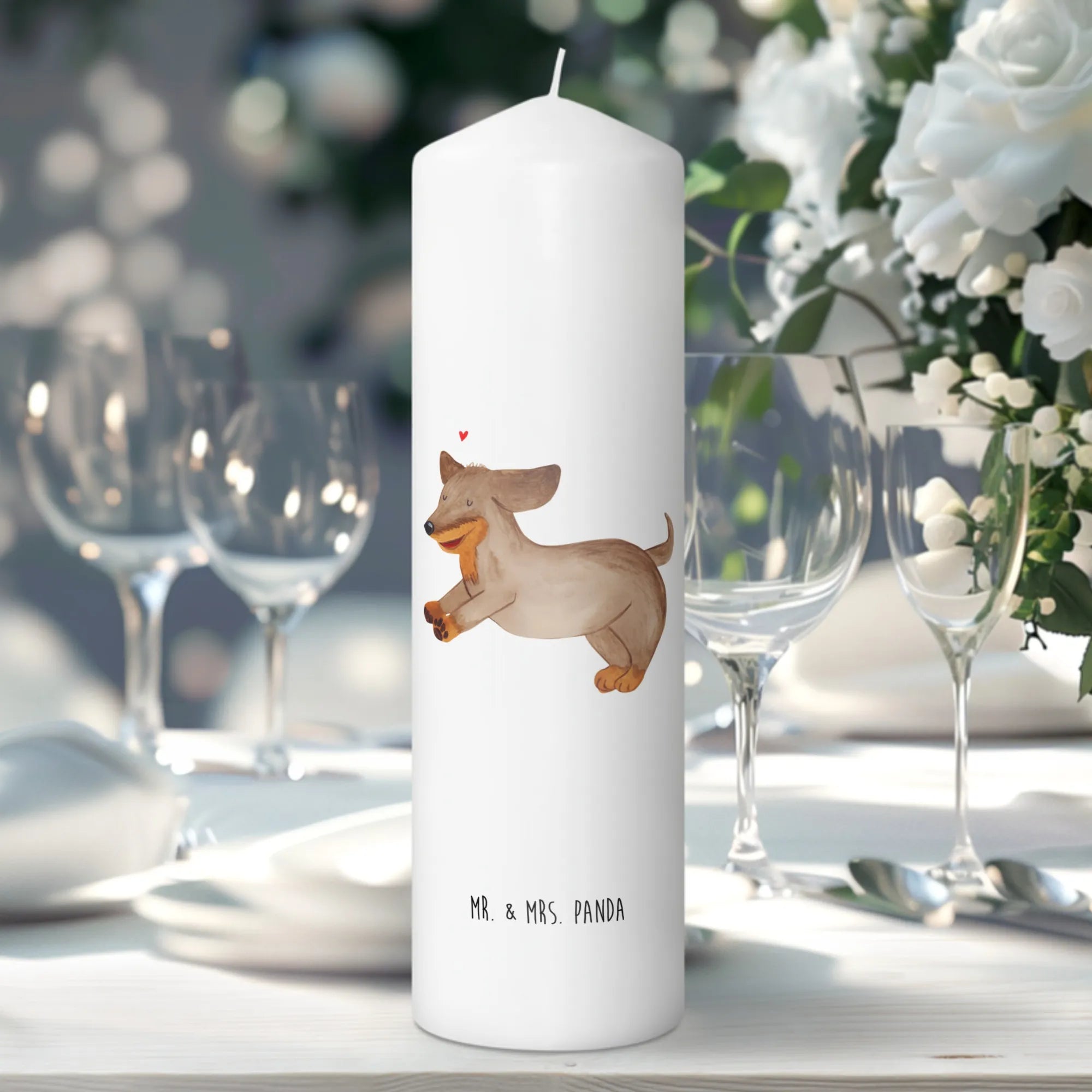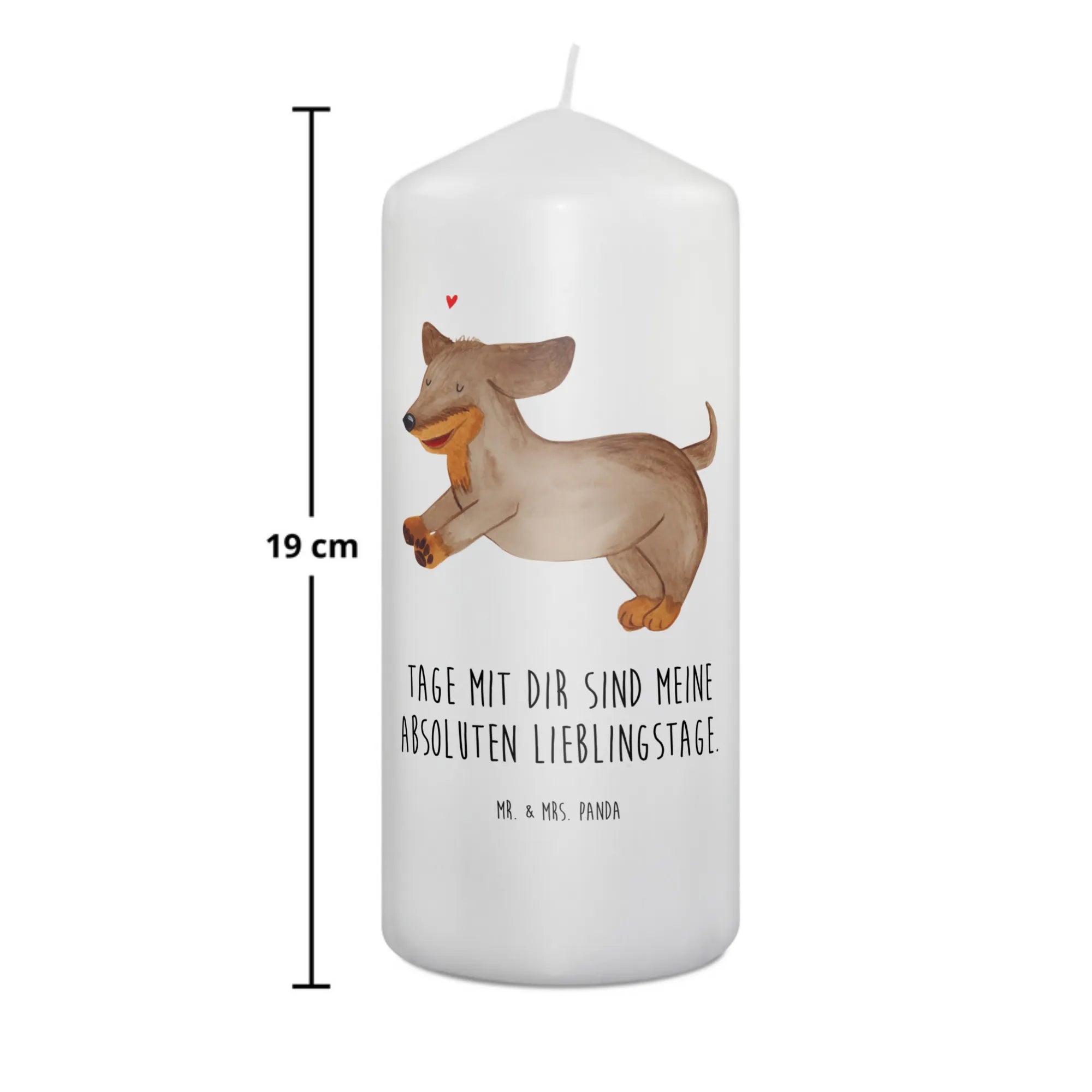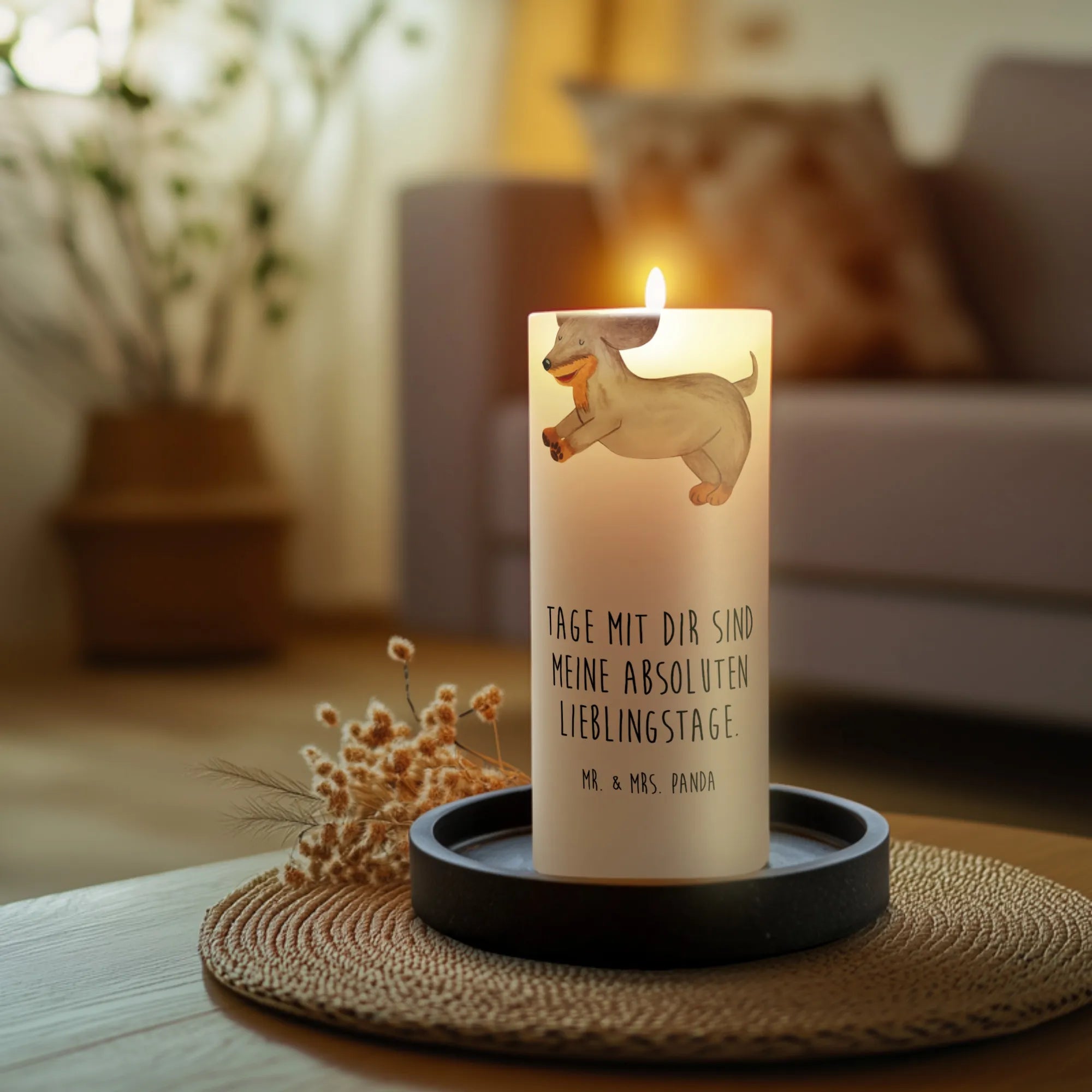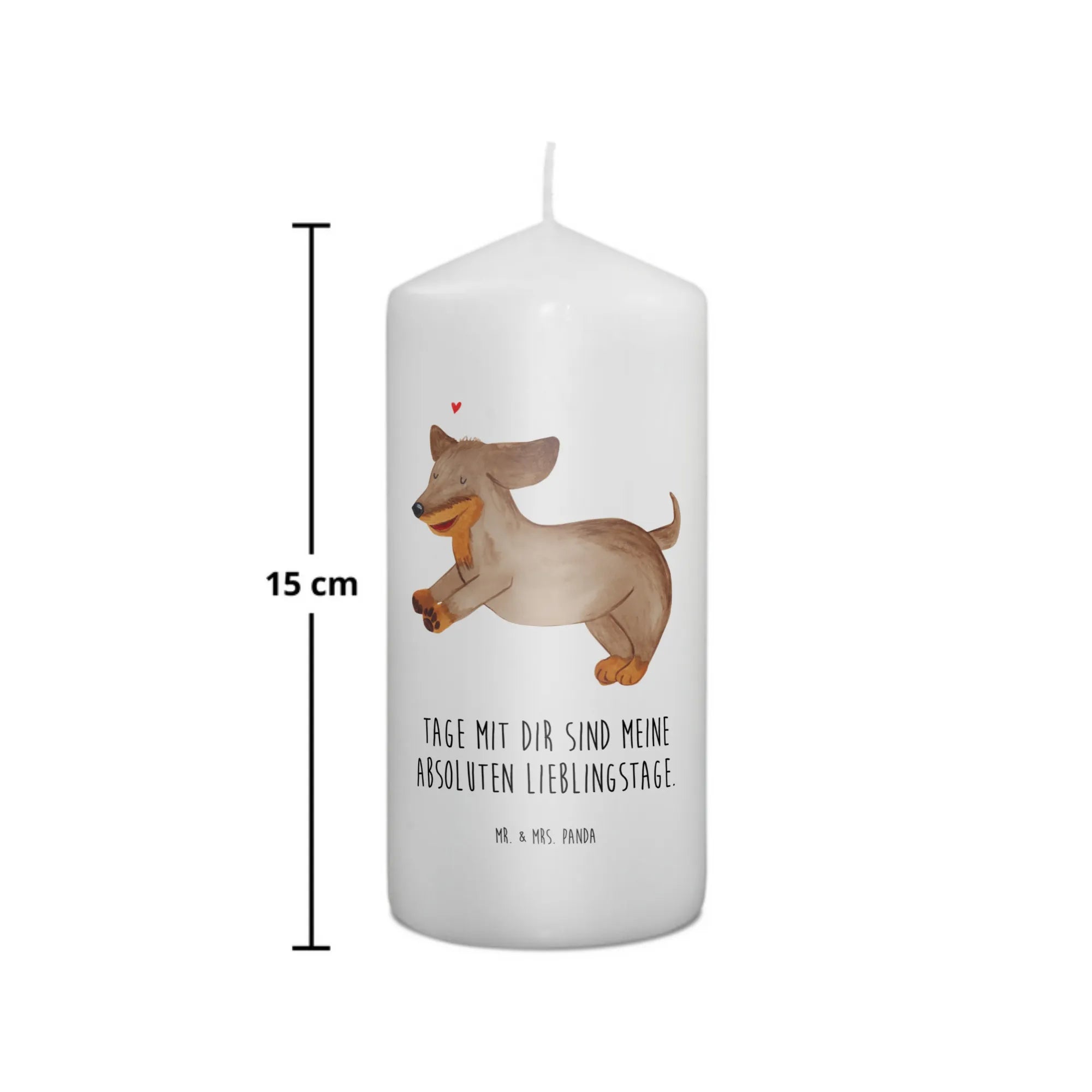 Die fröhliche Dackel-Kerze aus der Hunde Kollektion von Mr. & Mrs. Panda ist das perfekte Geschenk für alle Hundeliebhaber! Ob zu Geburtstagen, zur Taufe oder zur Kommunion, diese Kerze bringt ein Stückchen Freude in jeden Raum. Sie zeigt einen süßen Dackel, der begeistert durch die Gegend springt und sorgt für eine fröhliche Atmosphäre.