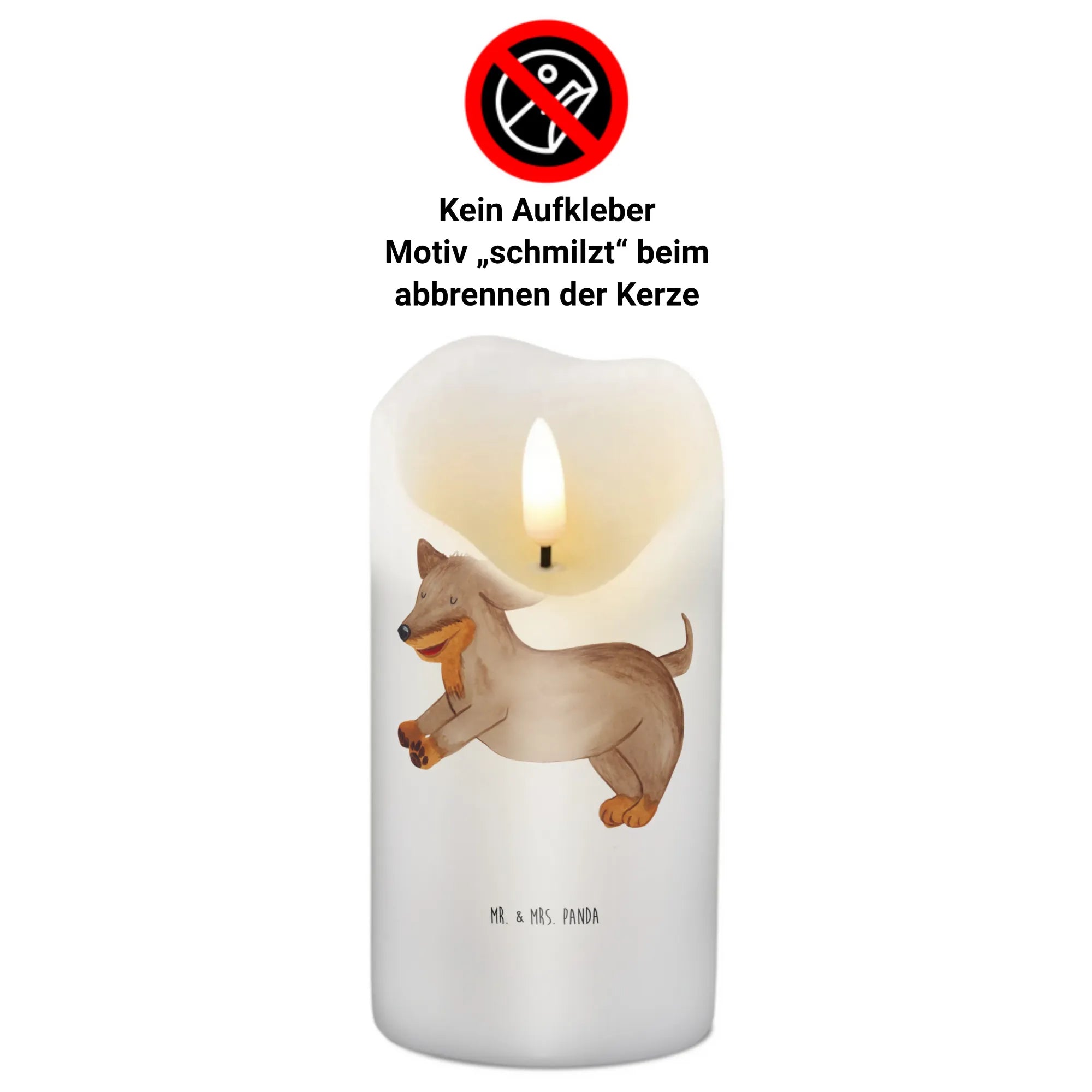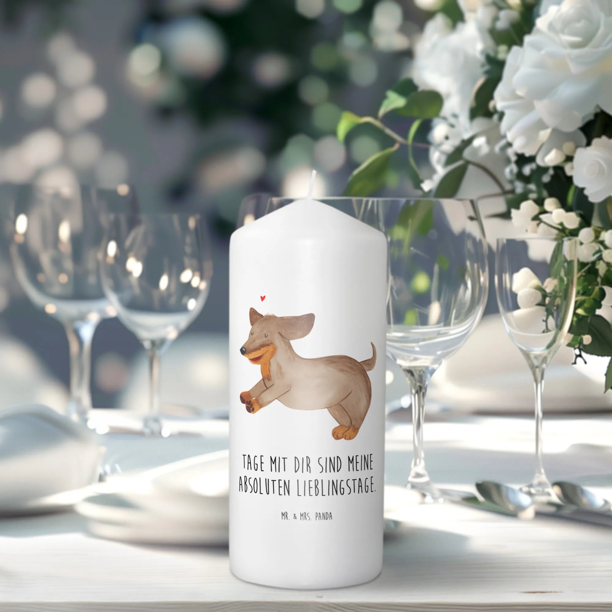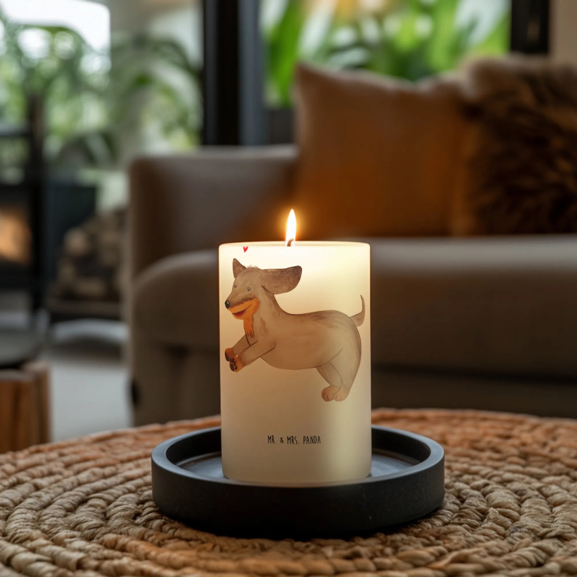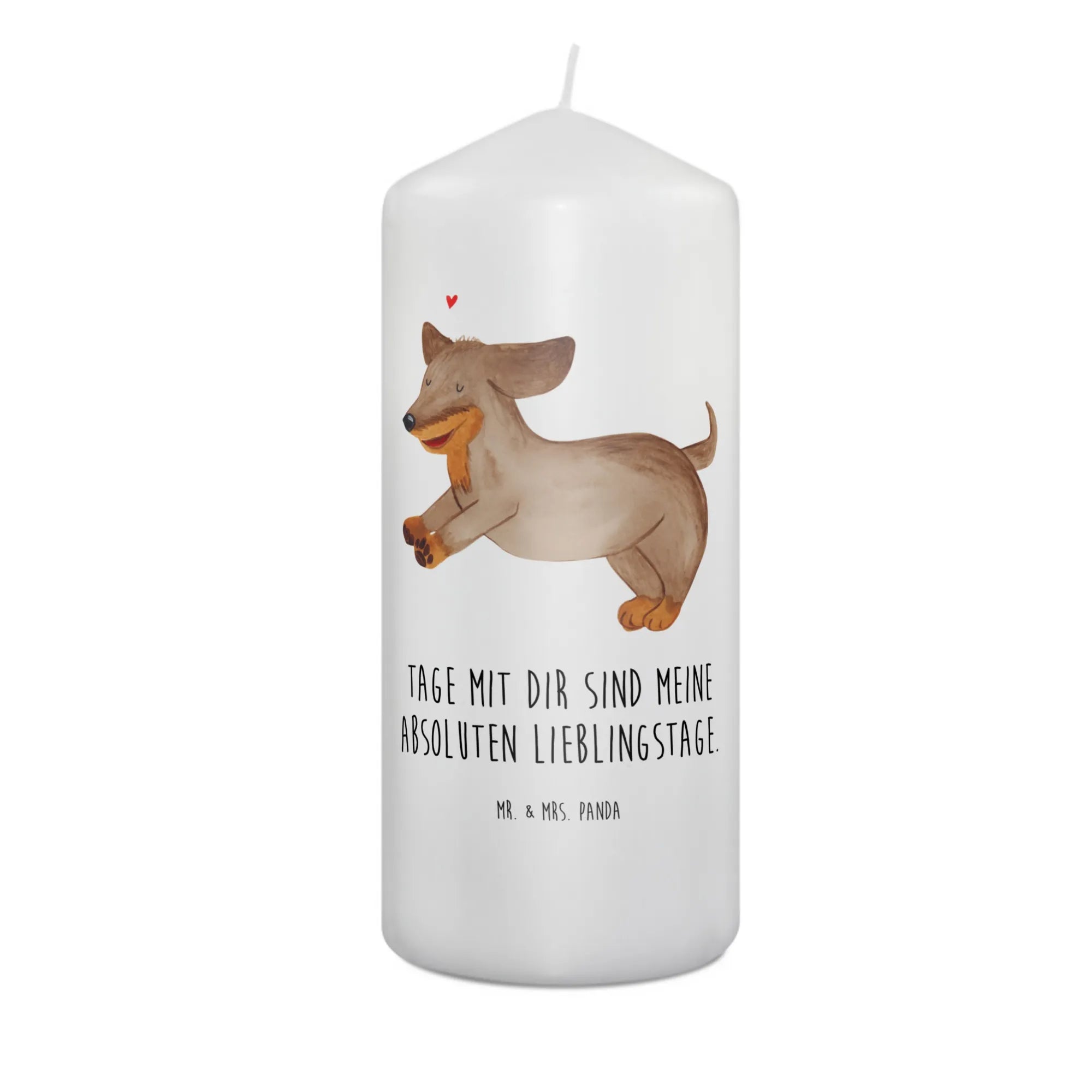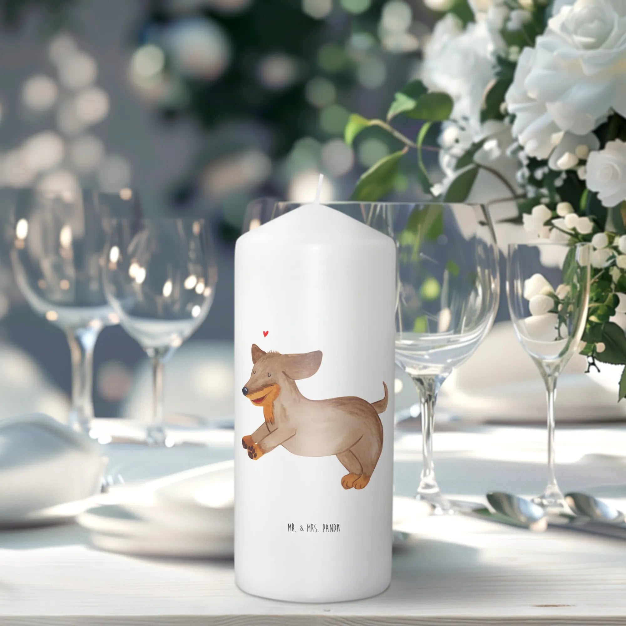 Die fröhliche Dackel-Kerze aus der Hunde Kollektion von Mr. & Mrs. Panda ist das perfekte Geschenk für alle Hundeliebhaber! Ob zu Geburtstagen, zur Taufe oder zur Kommunion, diese Kerze bringt ein Stückchen Freude in jeden Raum. Sie zeigt einen süßen Dackel, der begeistert durch die Gegend springt und sorgt für eine fröhliche Atmosphäre.