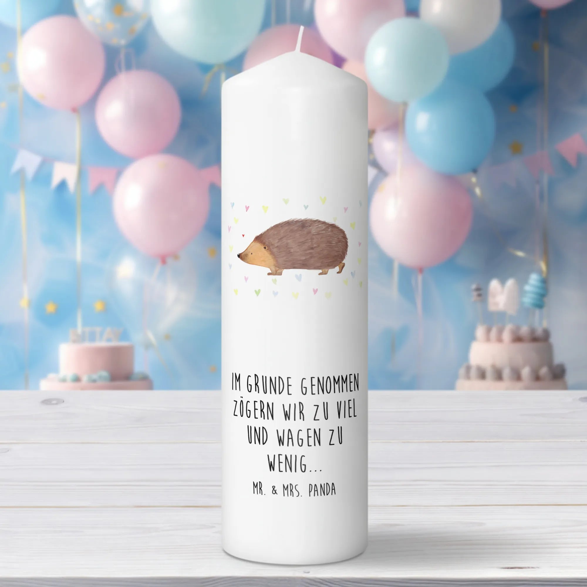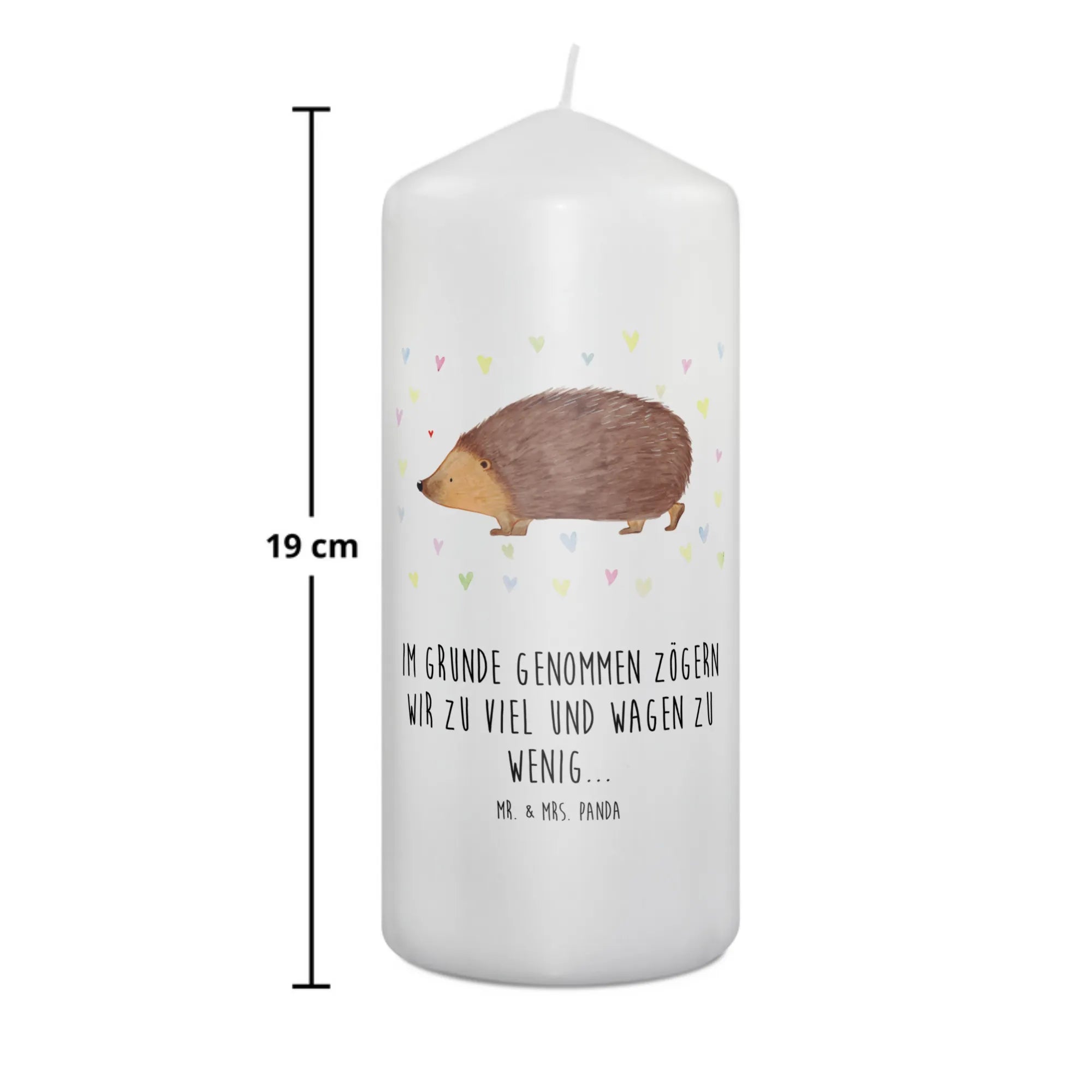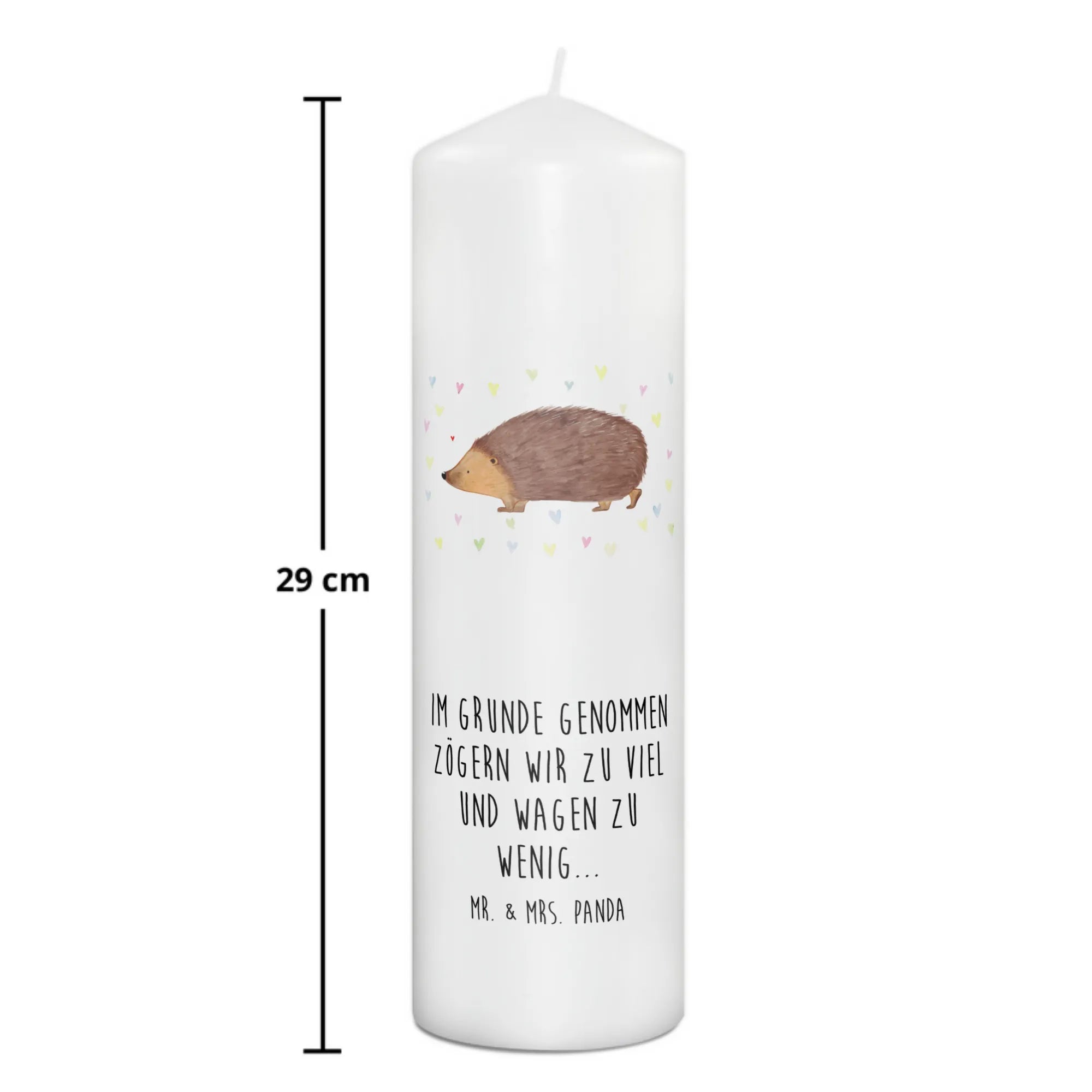 Kerze Igel Herzen - 19 x 8 cm - mit Spruch