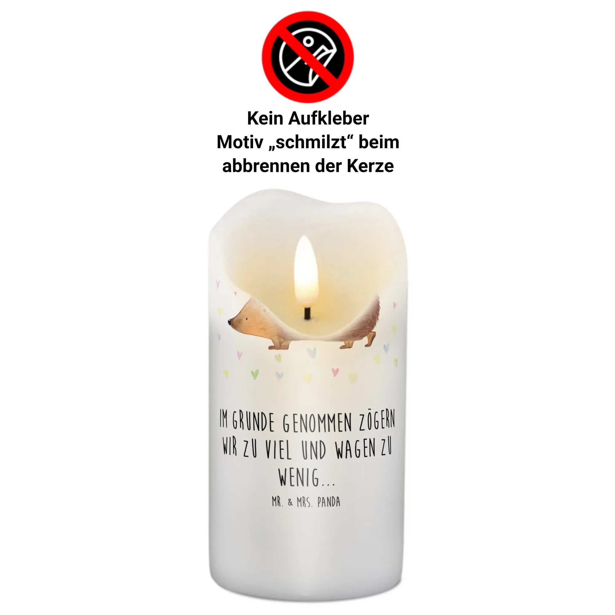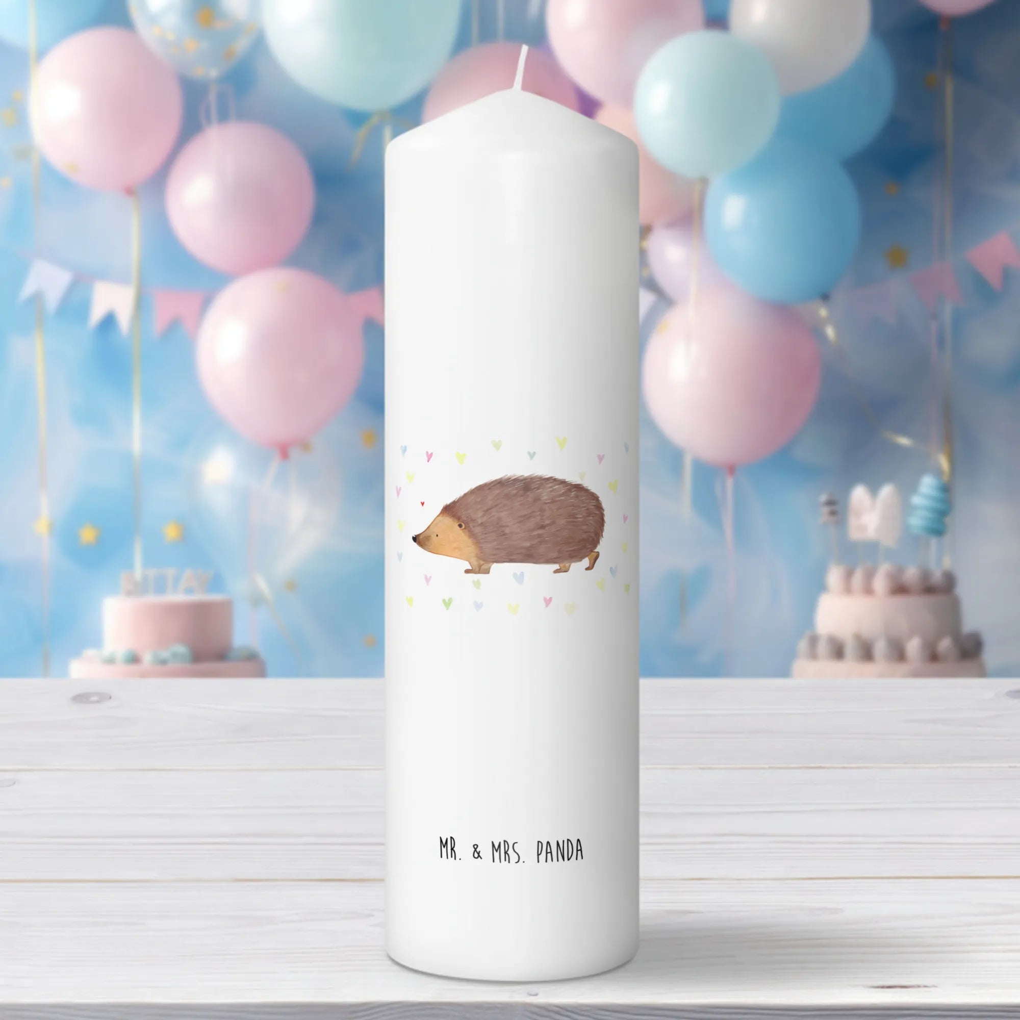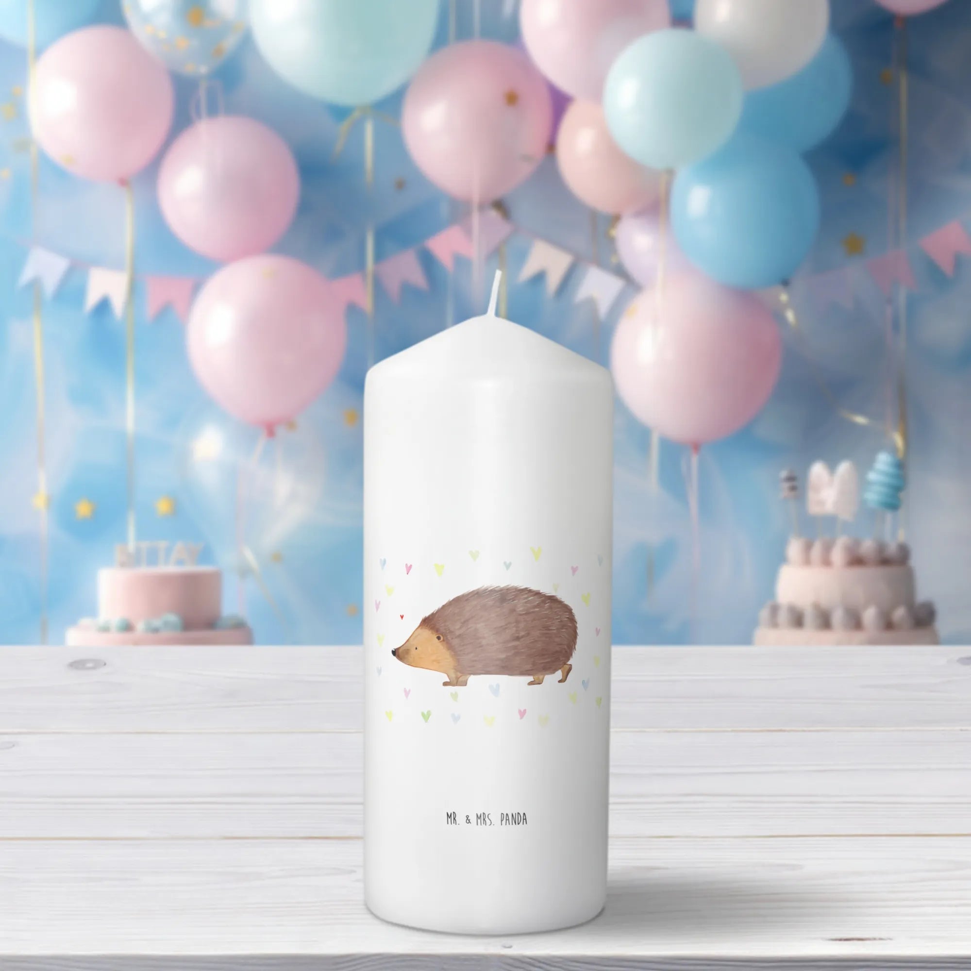 Kerze Igel Herzen - 19 x 8 cm - mit Spruch