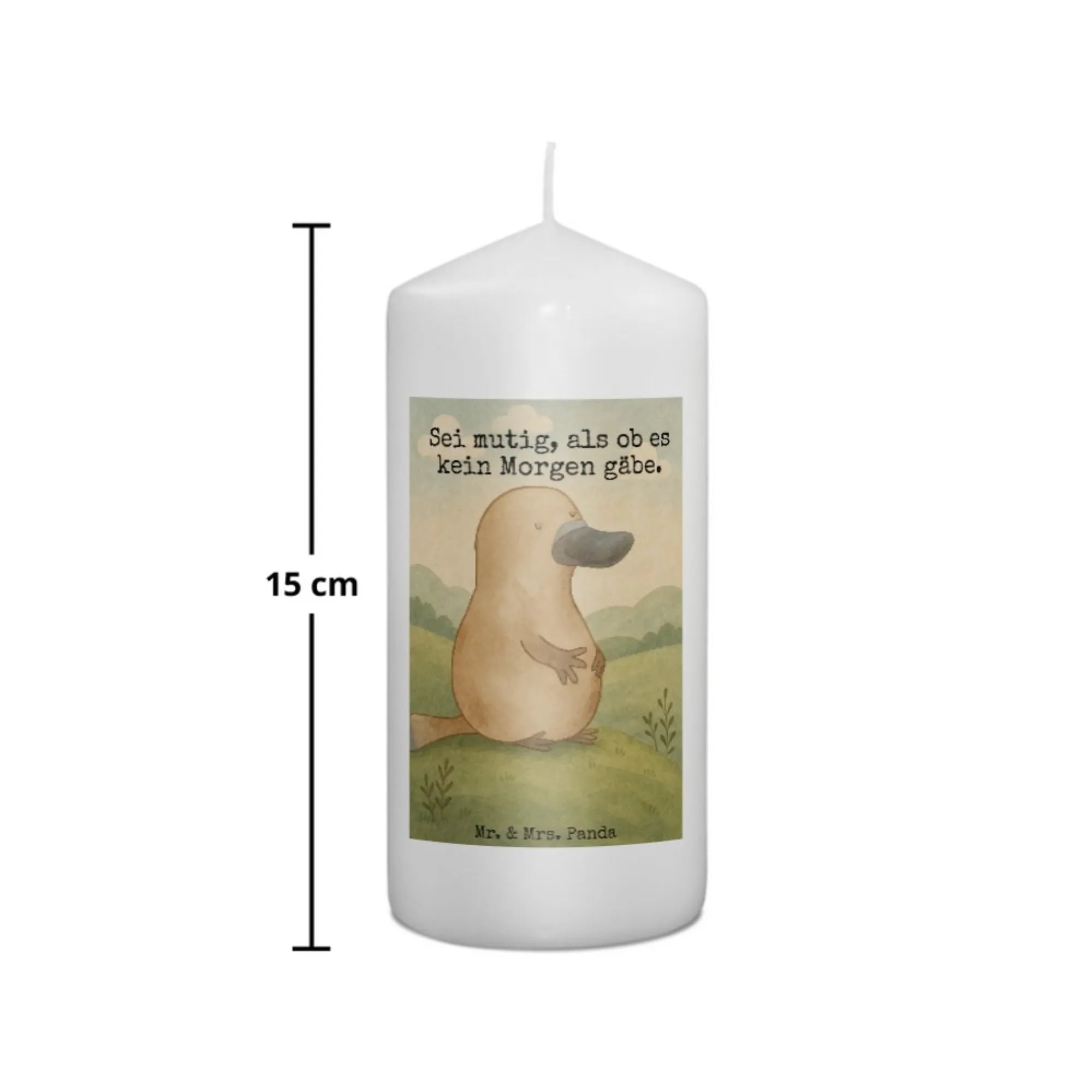 Kerze Schnabeltier Mut Design - 15 x 7 cm - mit Spruch