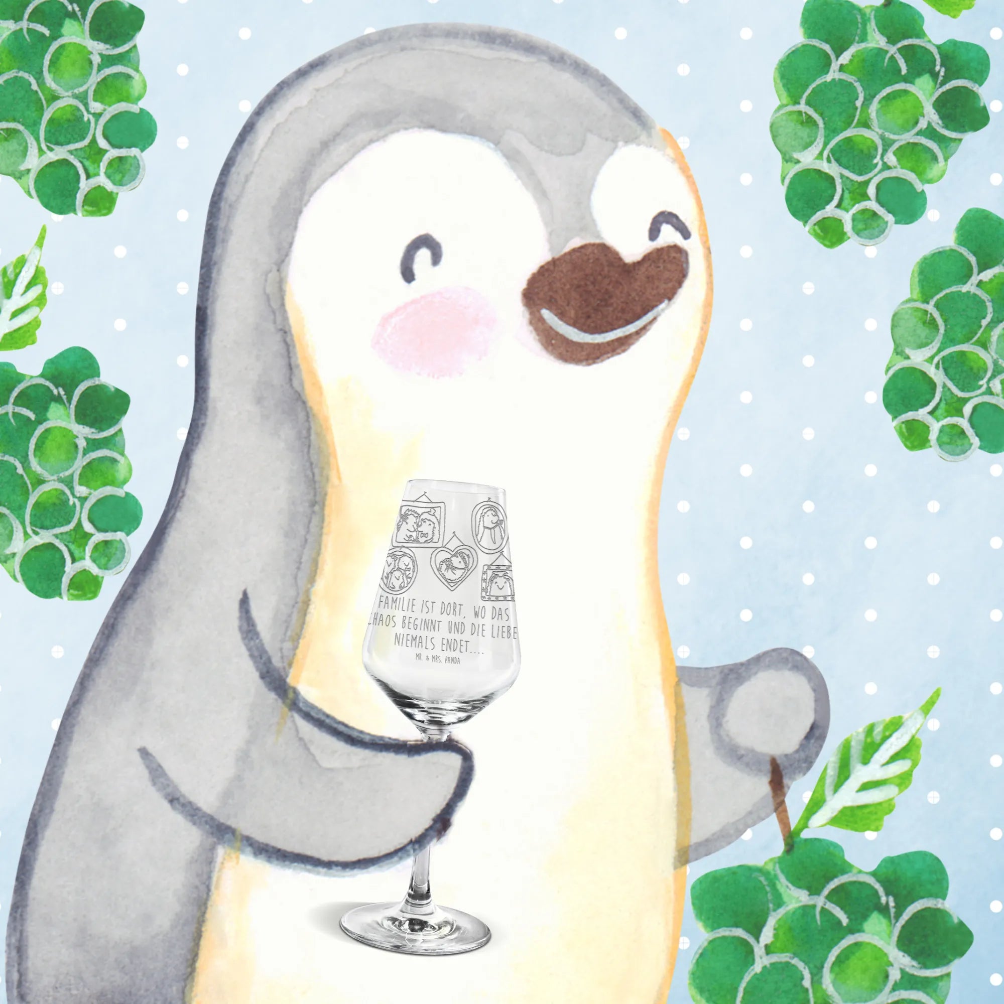 Kieliszek do białego wina Rodzina jeży - z napisem