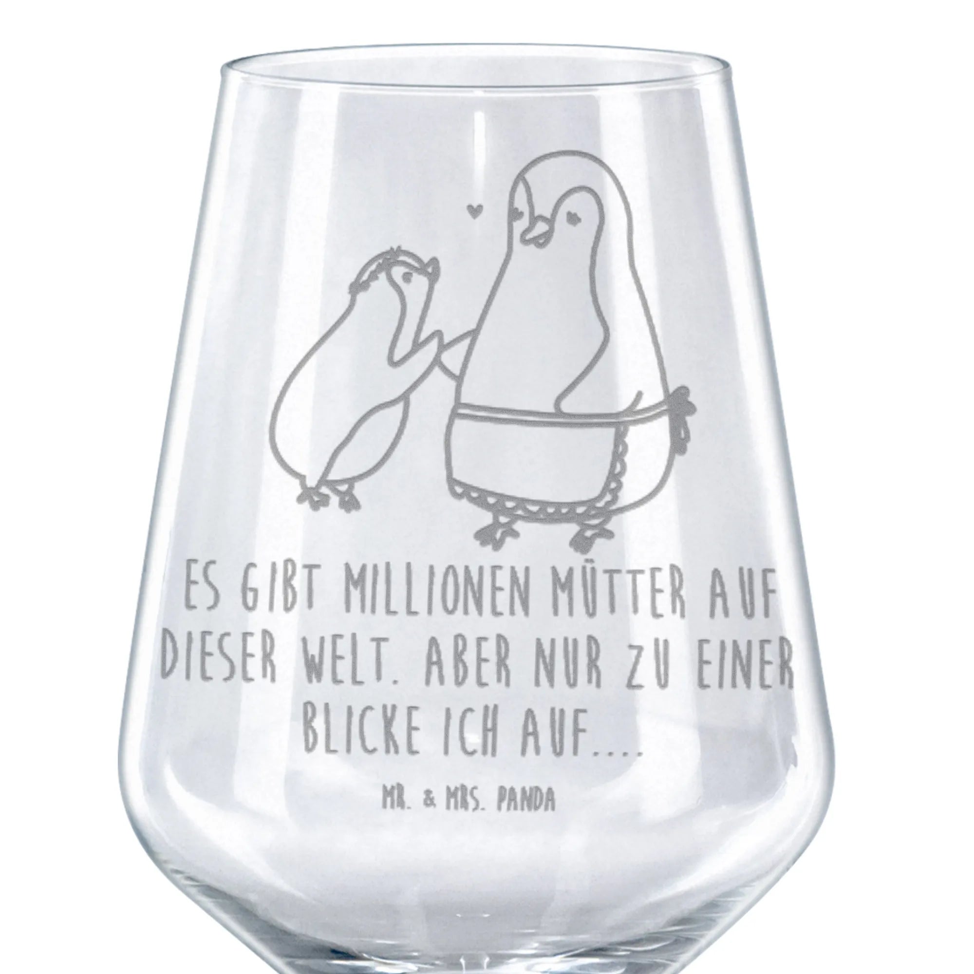 In unserer Familienkollektion geht es um die schönen Momente, die wir miteinander teilen. Ob für Mama, Papa, Oma oder Opa – hier findest du Geschenke, die das Herz berühren. Jede Familie hat ihre eigenen besonderen Erinnerungen, und mit diesem Glas kannst du neue schaffen und gleichzeitig die alten feiern. Das Pinguin-Motiv mit dem herzlichen Spruch "Es gibt Millionen Mütter auf dieser Welt. Aber nur zu einer blicke ich auf...." macht es noch persönlicher.