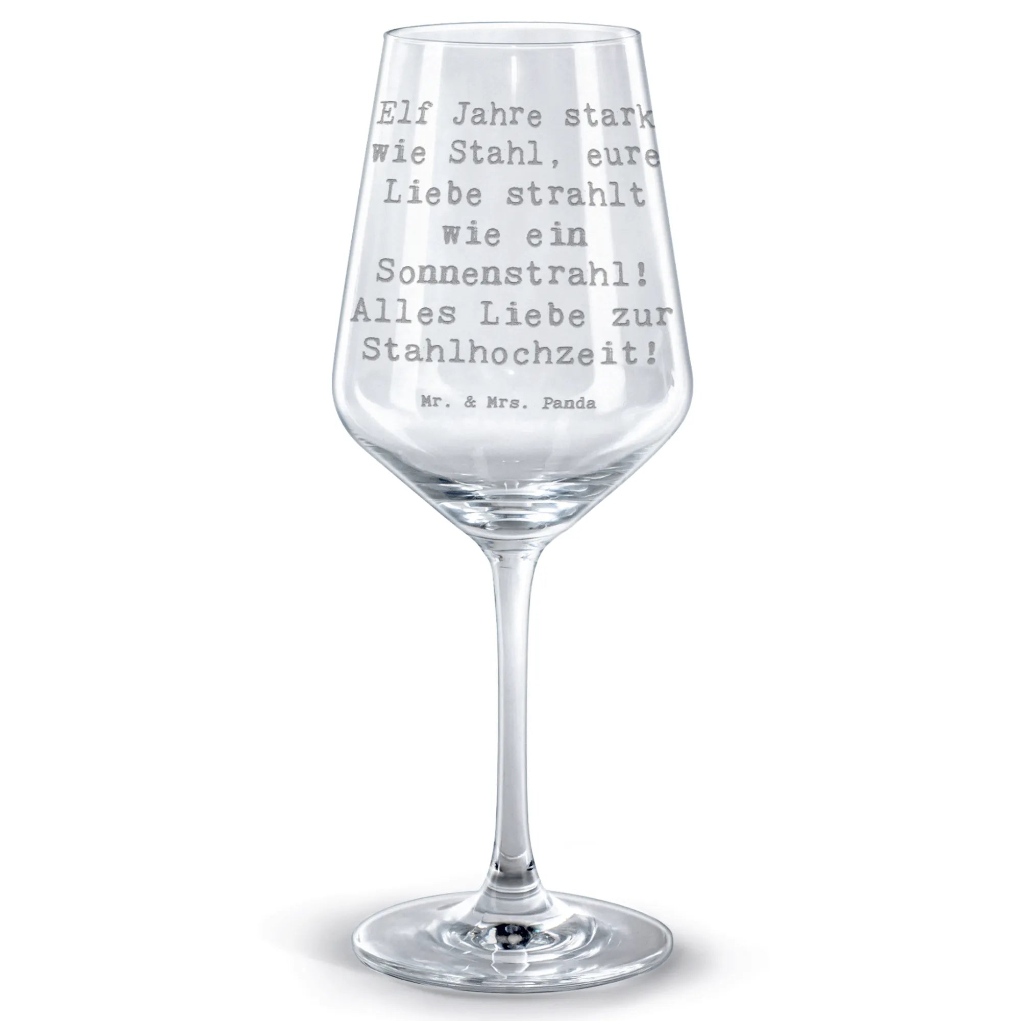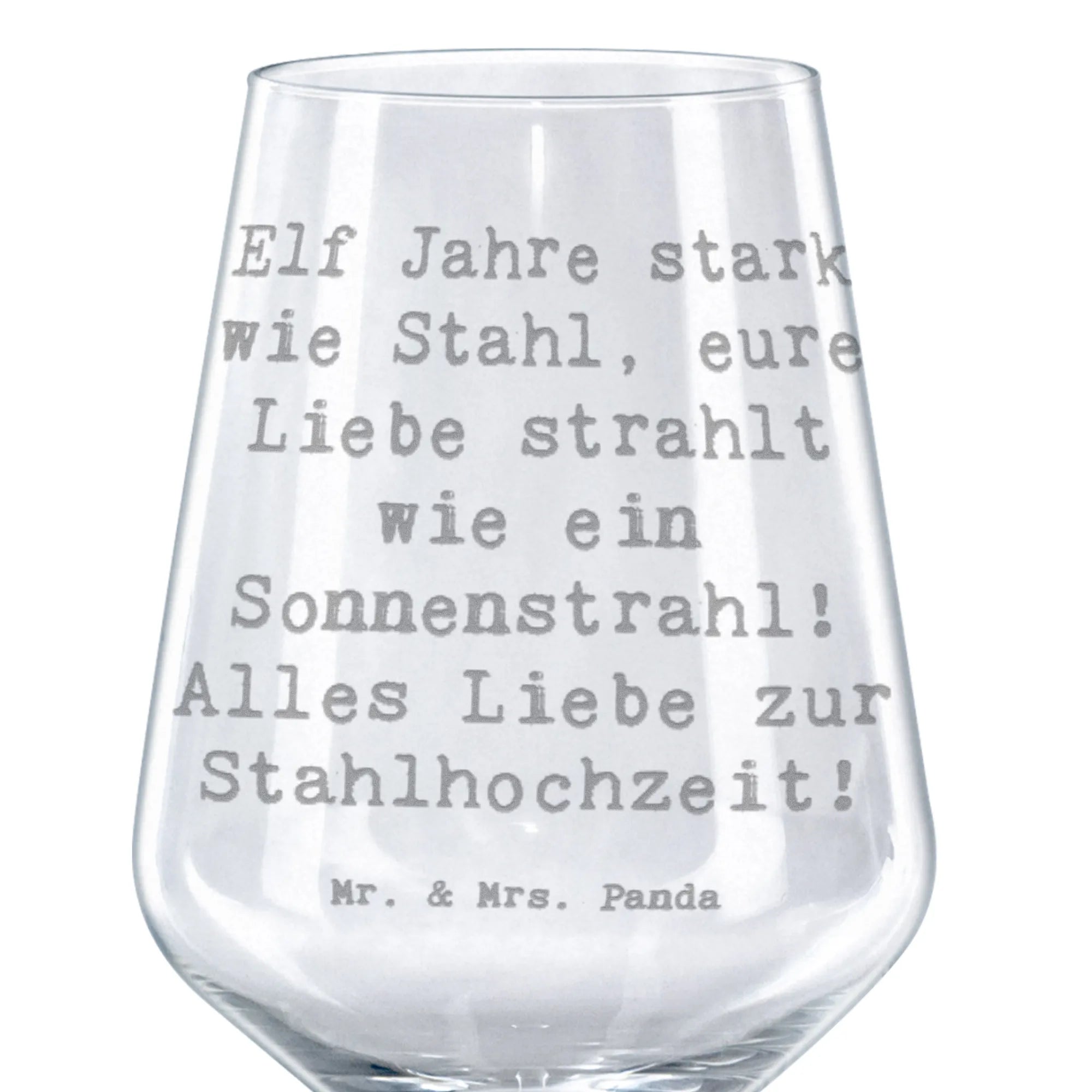 Kieliszek do czerwonego wina Przysłowie Elf Jahre stark wie Stahl, eure Liebe strahlt wie ein Sonnenstrahl! Alles Liebe zur Stahlhochzeit!