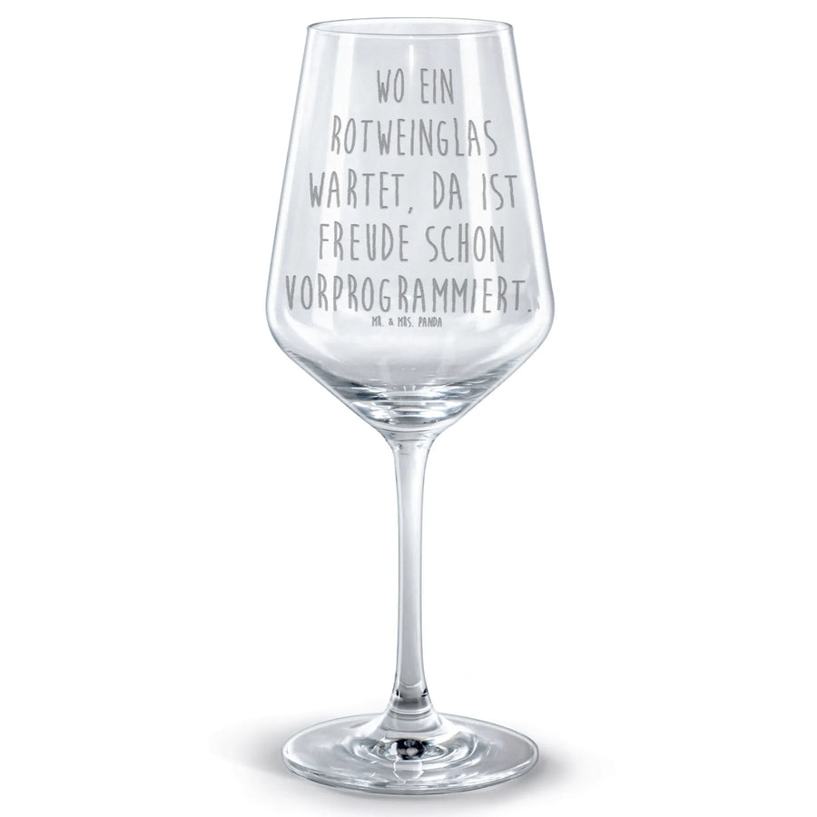 Kieliszek do czerwonego wina Przysłowie Wo ein Rotweinglas wartet, da ist Freude schon vorprogrammiert.