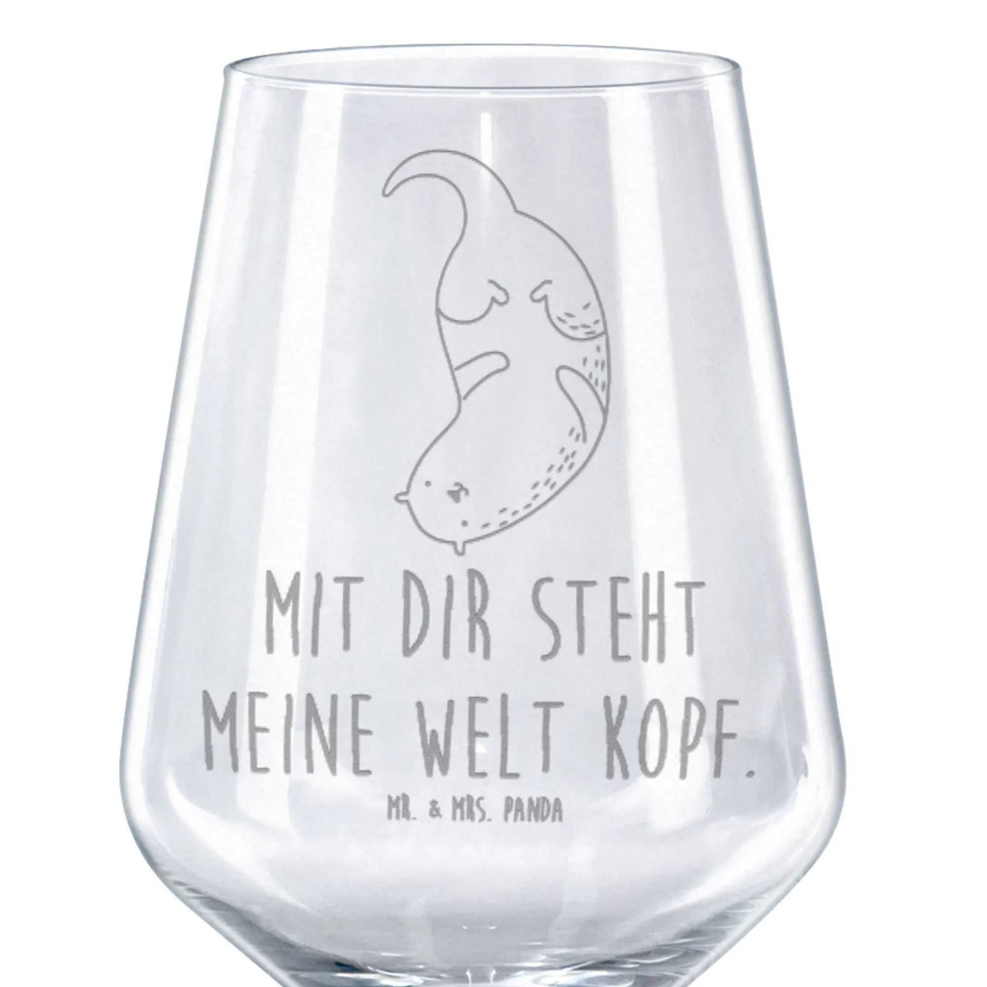 Kieliszek do czerwonego wina wydra Do góry nogami - z napisem