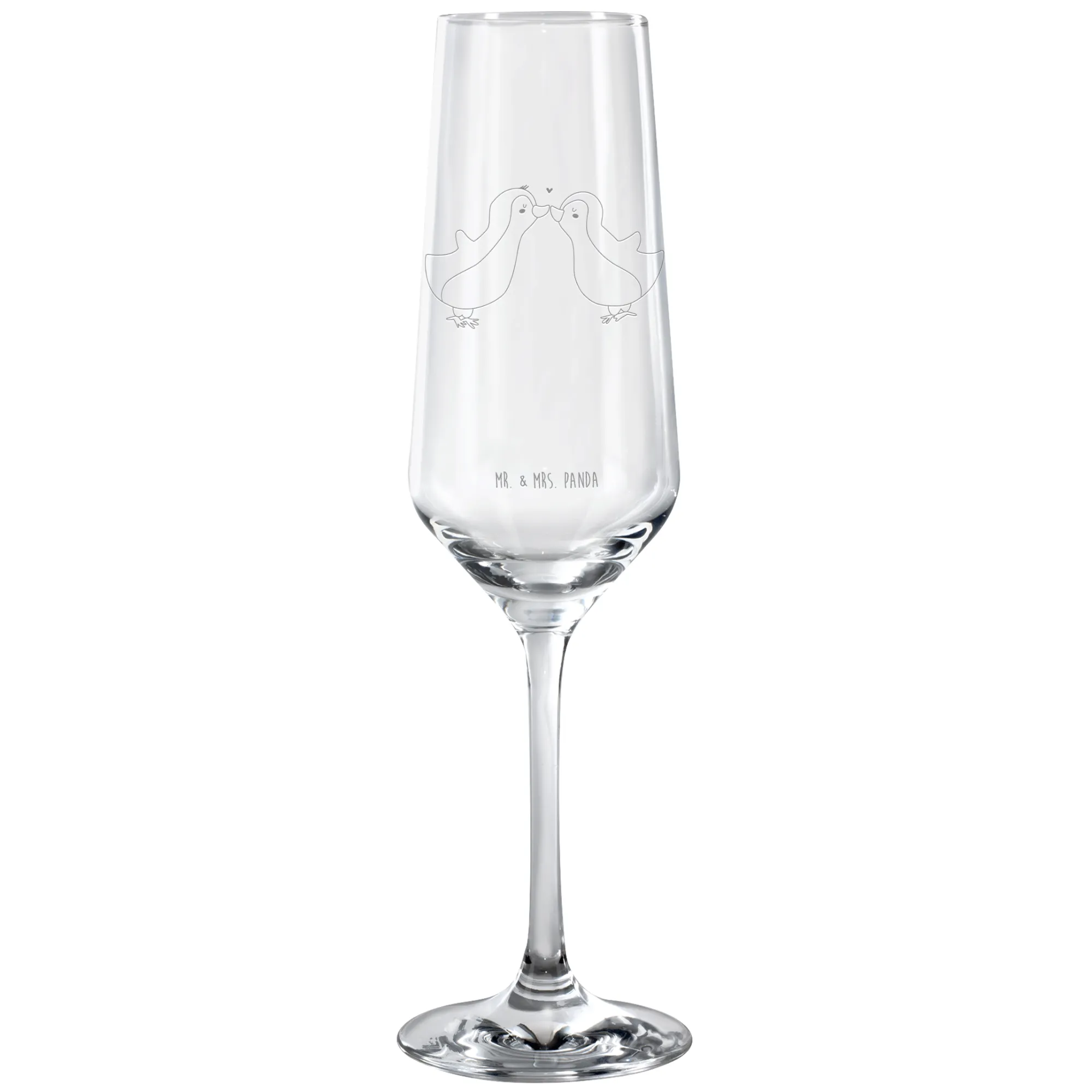 kieliszek do sektu Pingwiny Pocałunek - z napisem