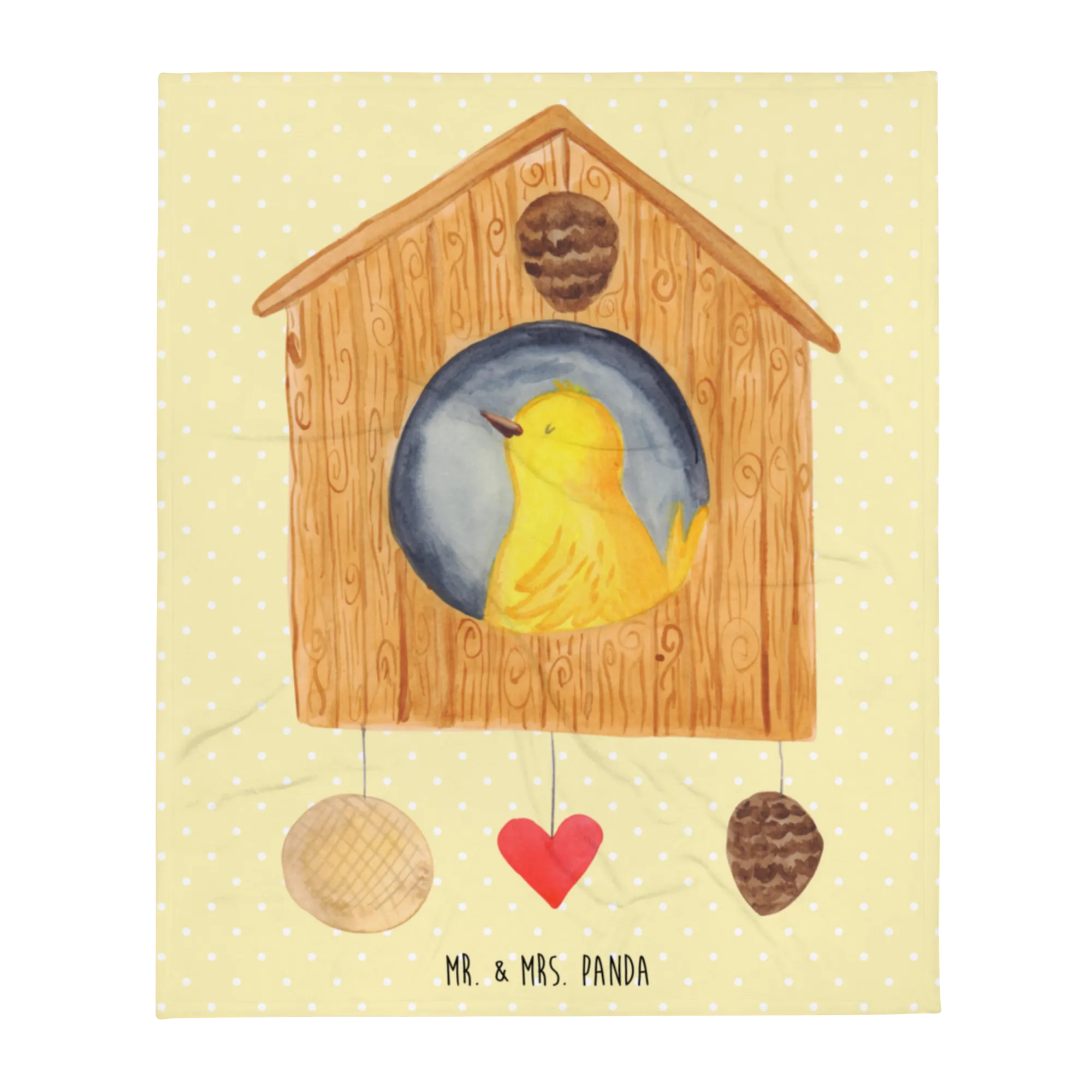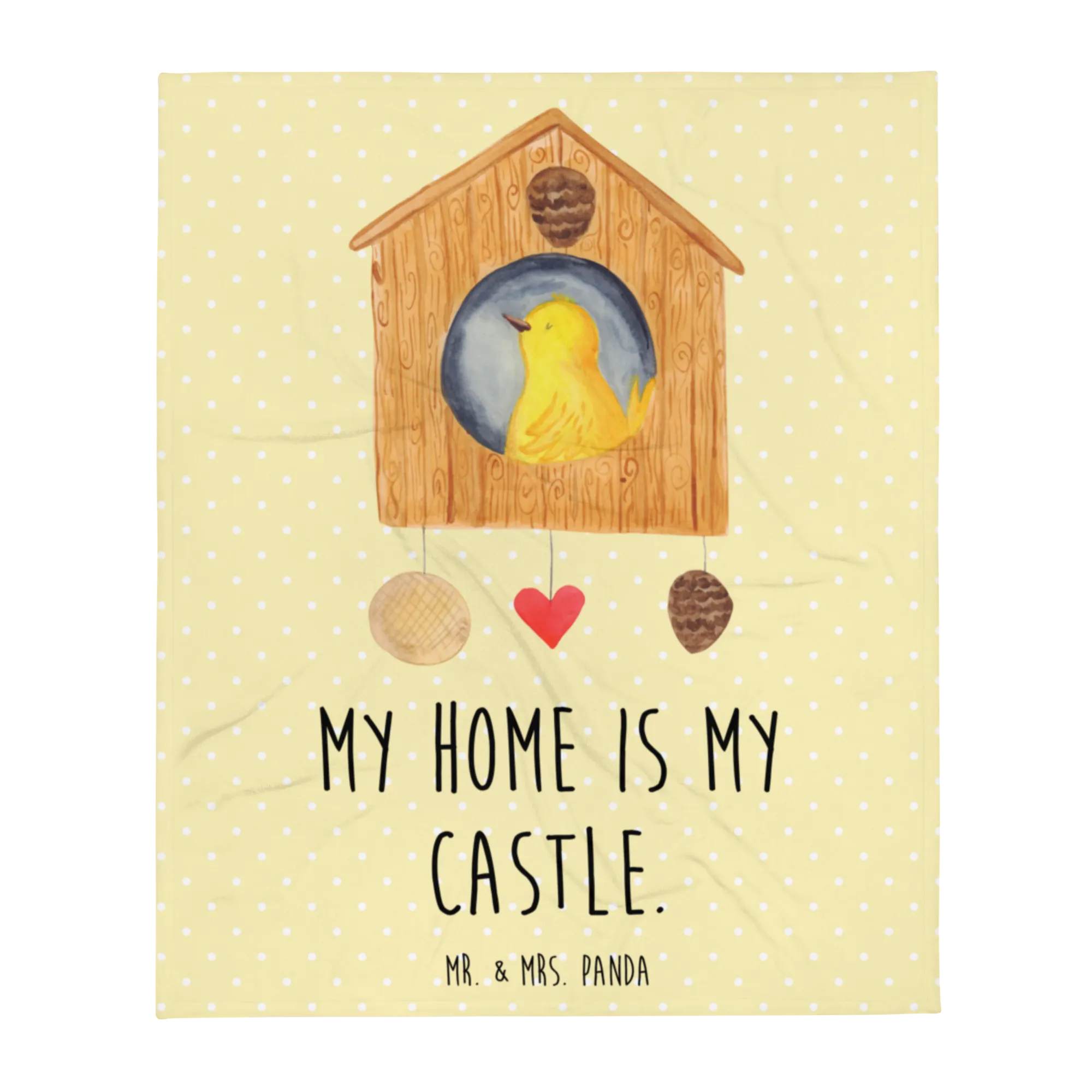 Koc ptak Dom - z napisem - Pastelowy żółty