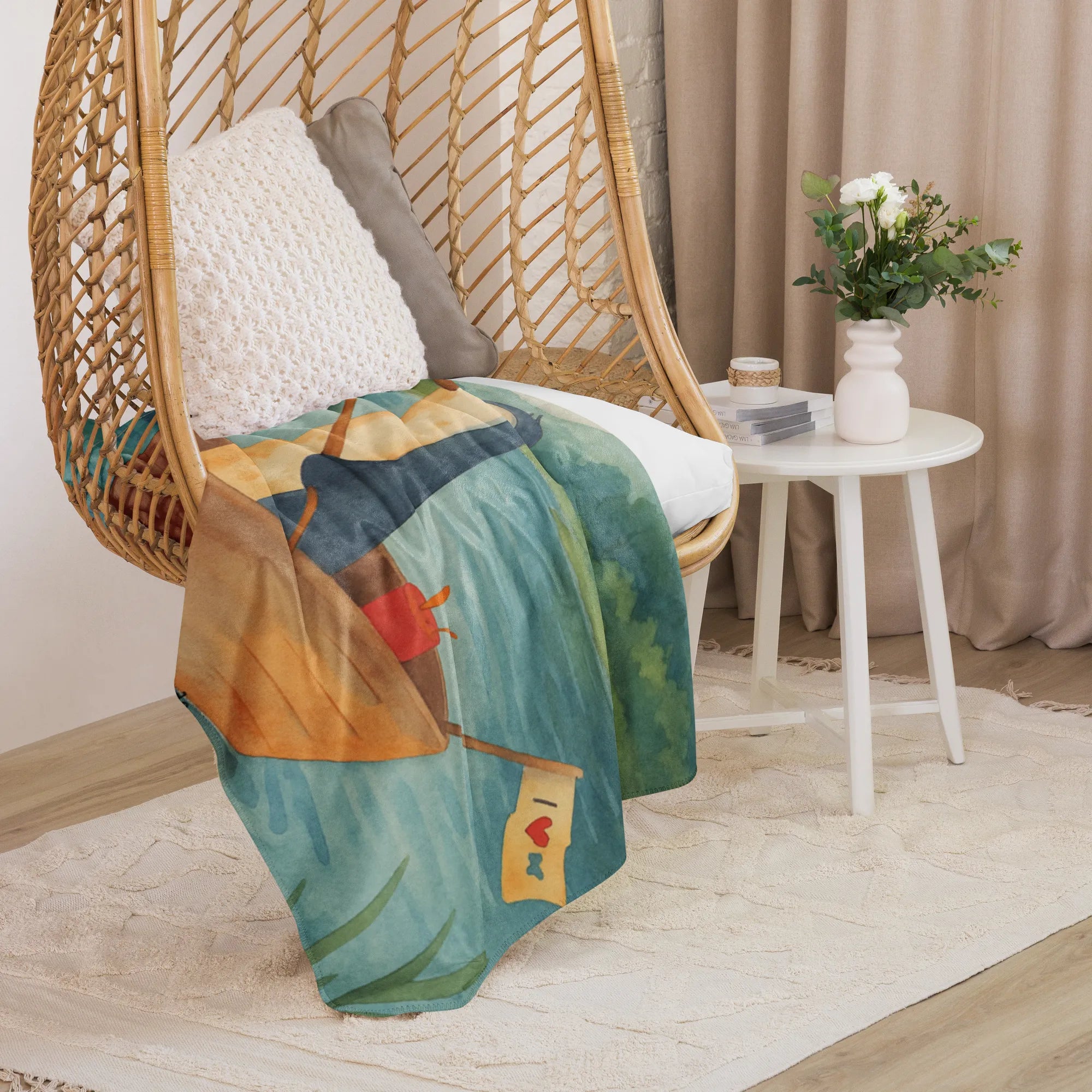 Koc Sherpa pingwin łódka wędkarska Design - 100 x 150 cm - z napisem
