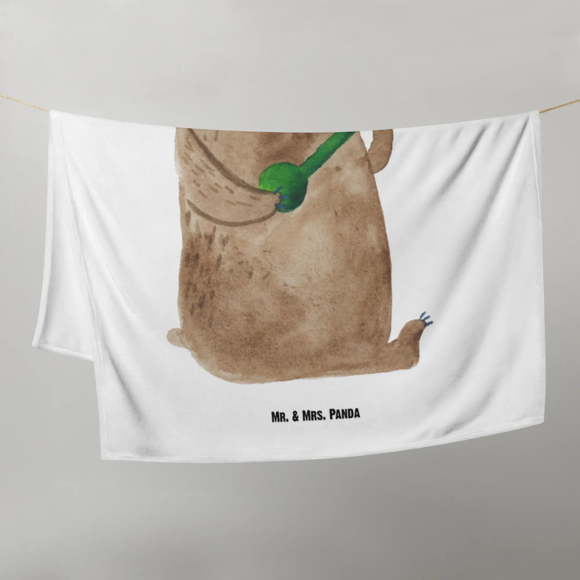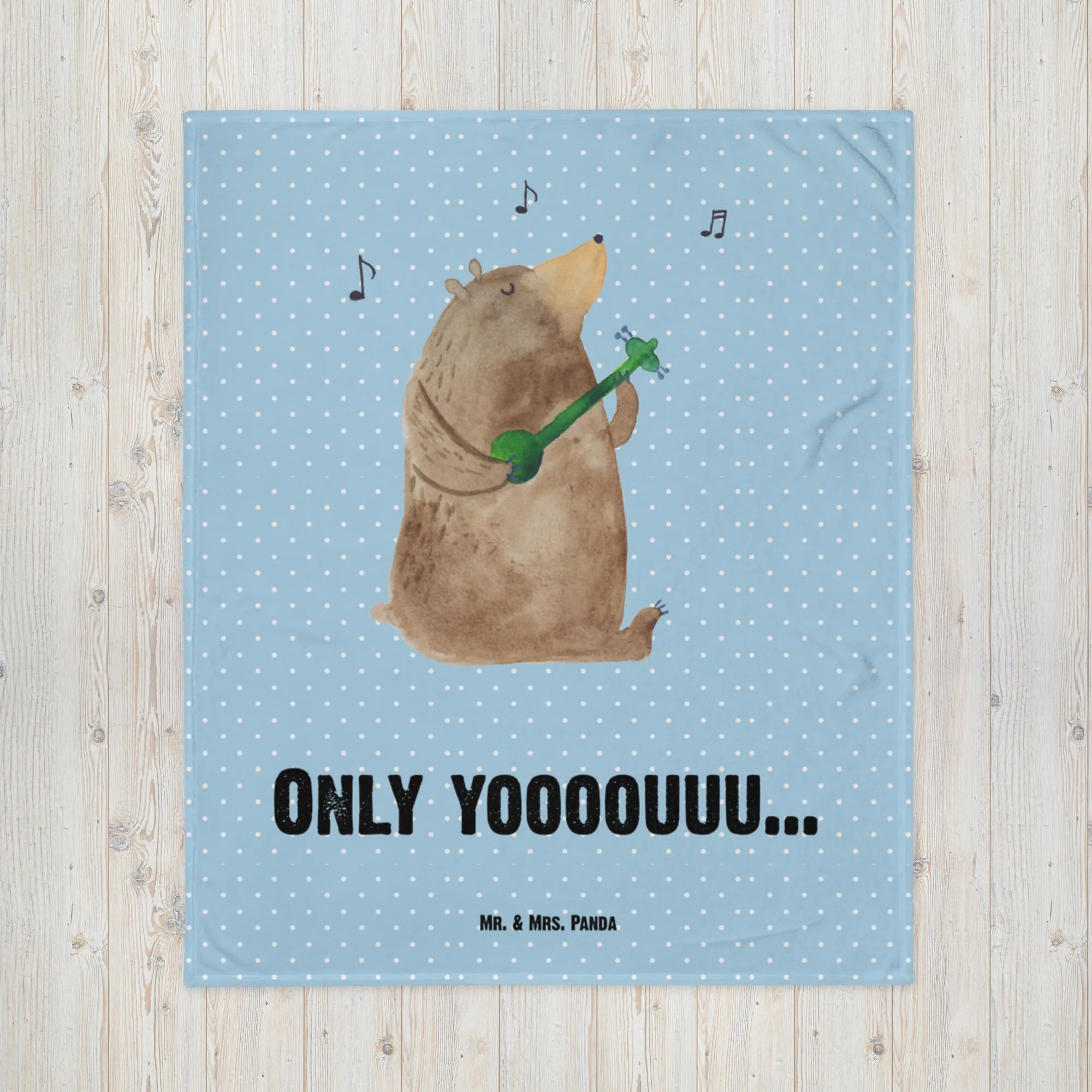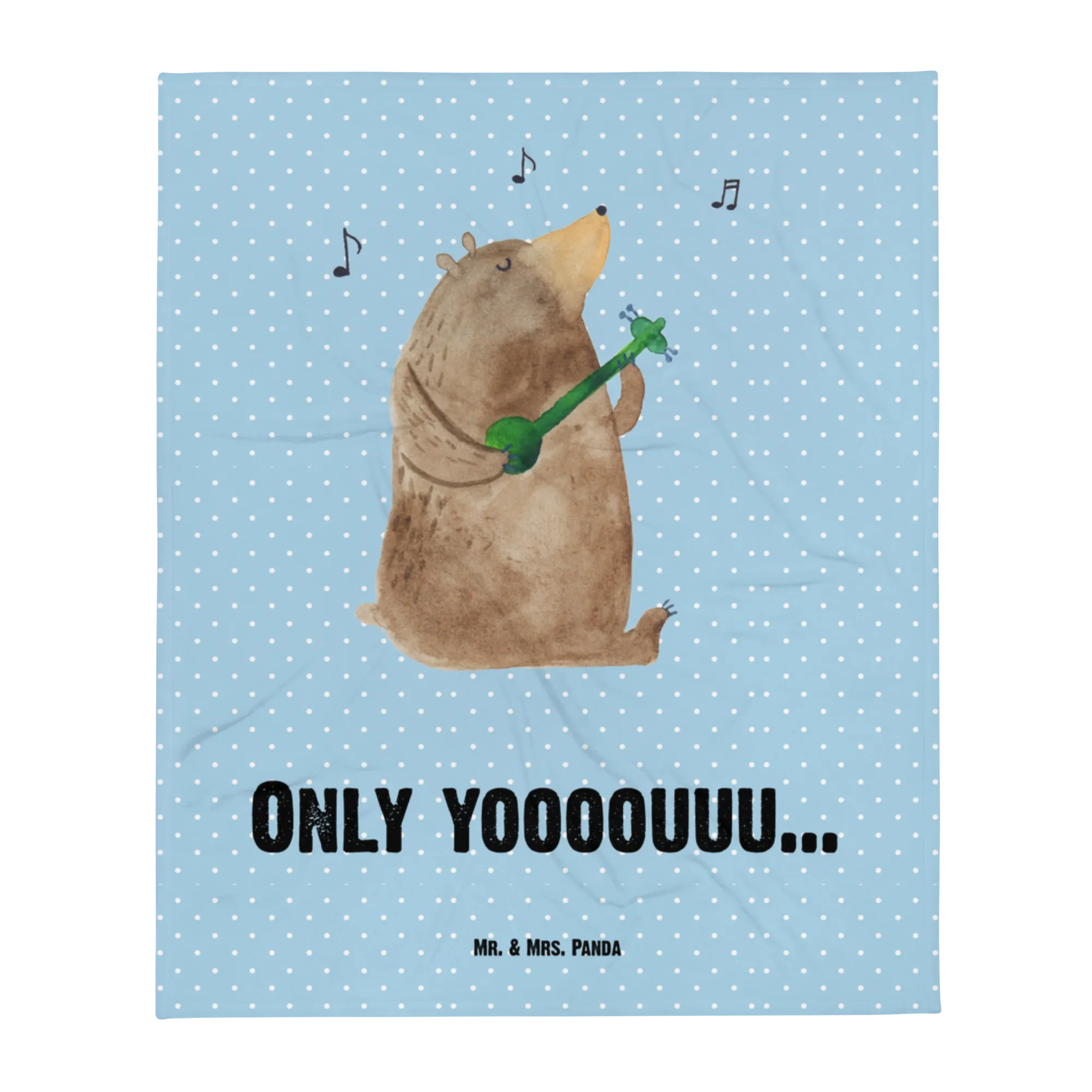 Kocyk dla niemowląt niedźwiedź Gitara - z napisem - Blau Pastell