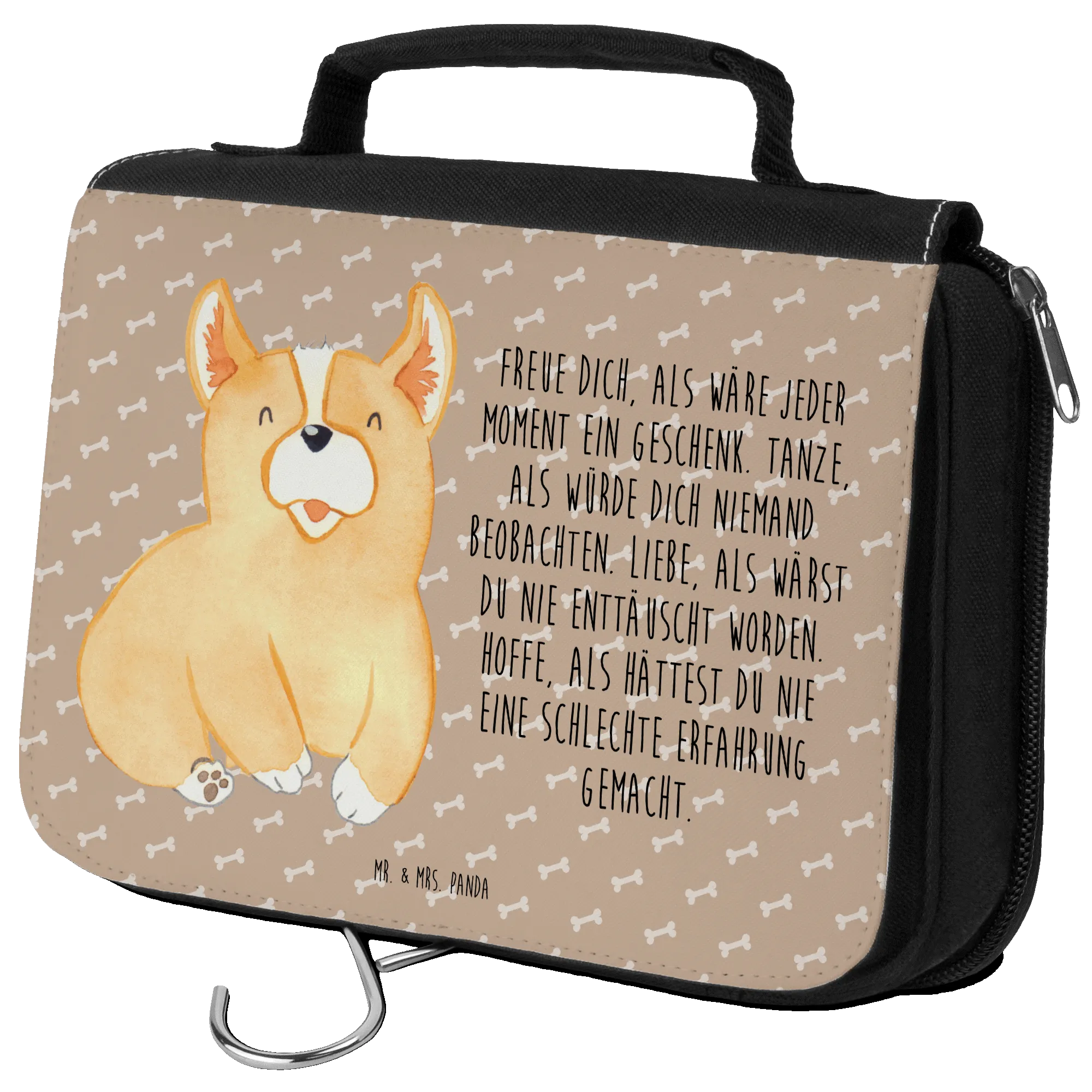 Kosmetyczka Corgi Kulturbeutel, hygienetasche, Kulturbeutel Waschbar, Schminktasche, Waschtasche, Toilettentasche, Waschbeutel, Schminkbeutel, Kosmetiktasche, Kulturtasche, badtasche, hygienebeutel, Necessaire, beautycase, Reisebeutel, Sprüche, Hund, Hunderasse, Hundebesitzer, Hundemotiv, Haustier, Tierliebhaber, Lebensfreude, Hundespruch, Spruch, Corgie, Britisch, Motivation, Welsh Corgie Pembroke
