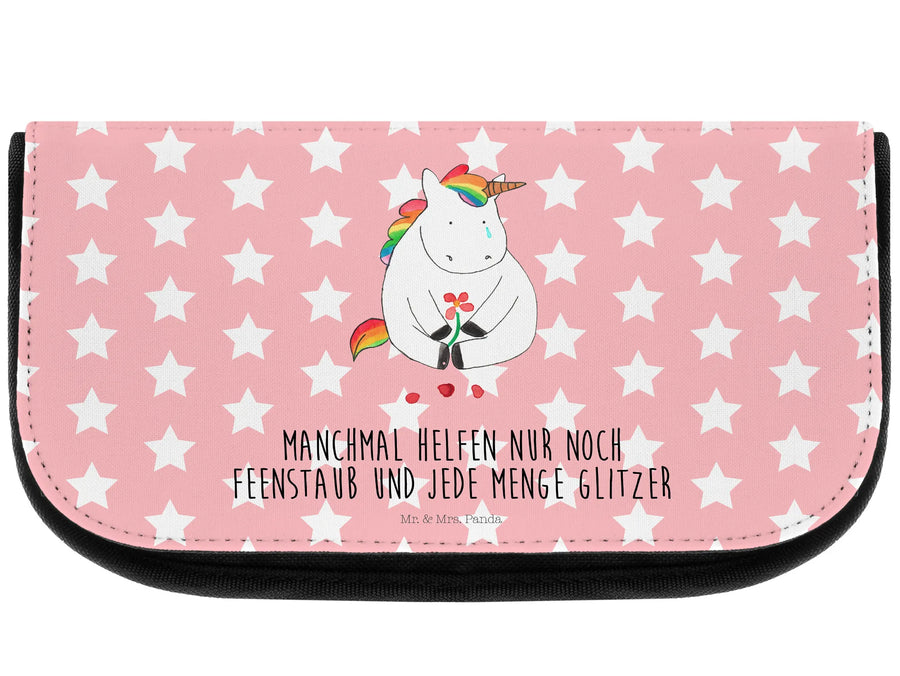 Kosmetyczka Jednorożec Smutny - z napisem - Pastelowy czerwony