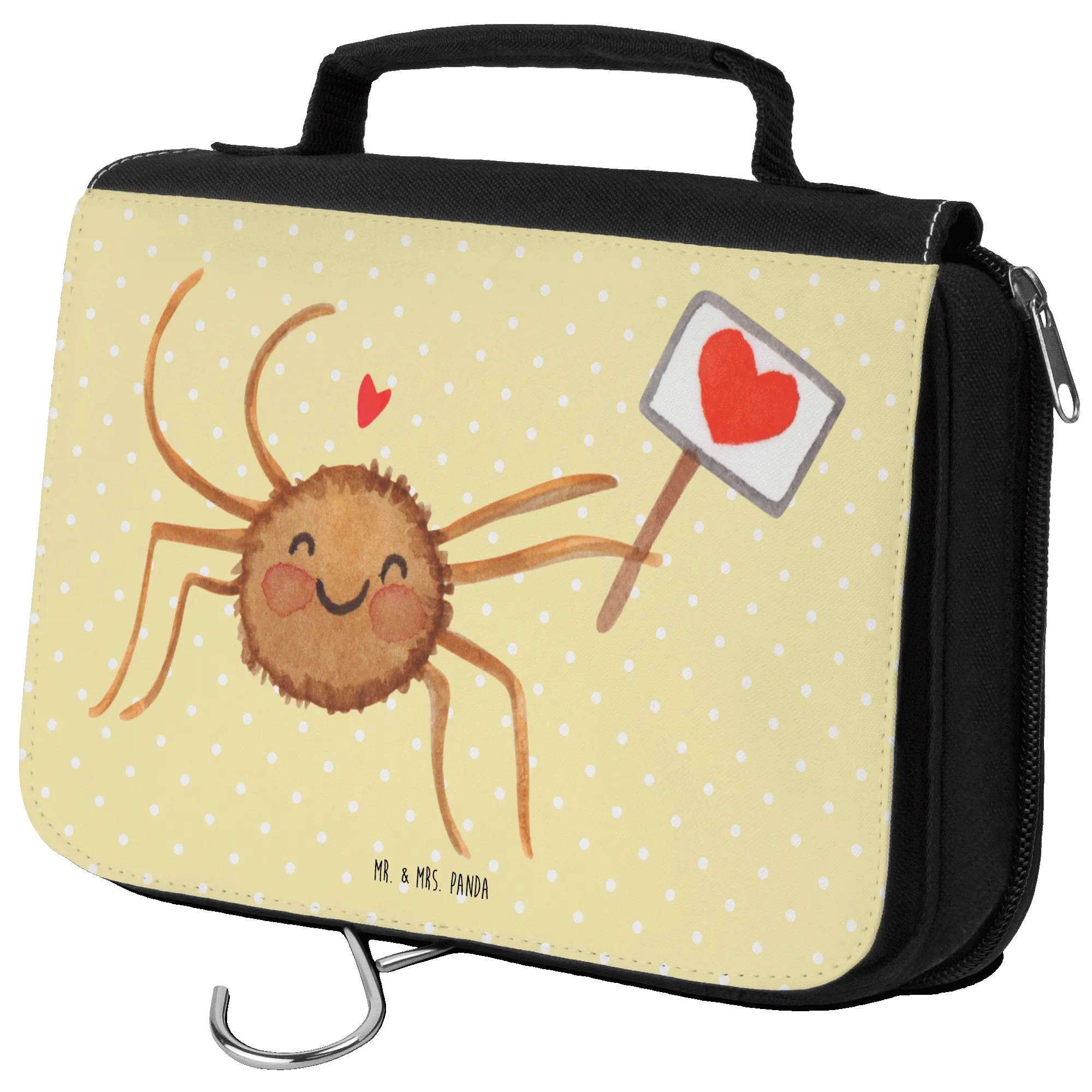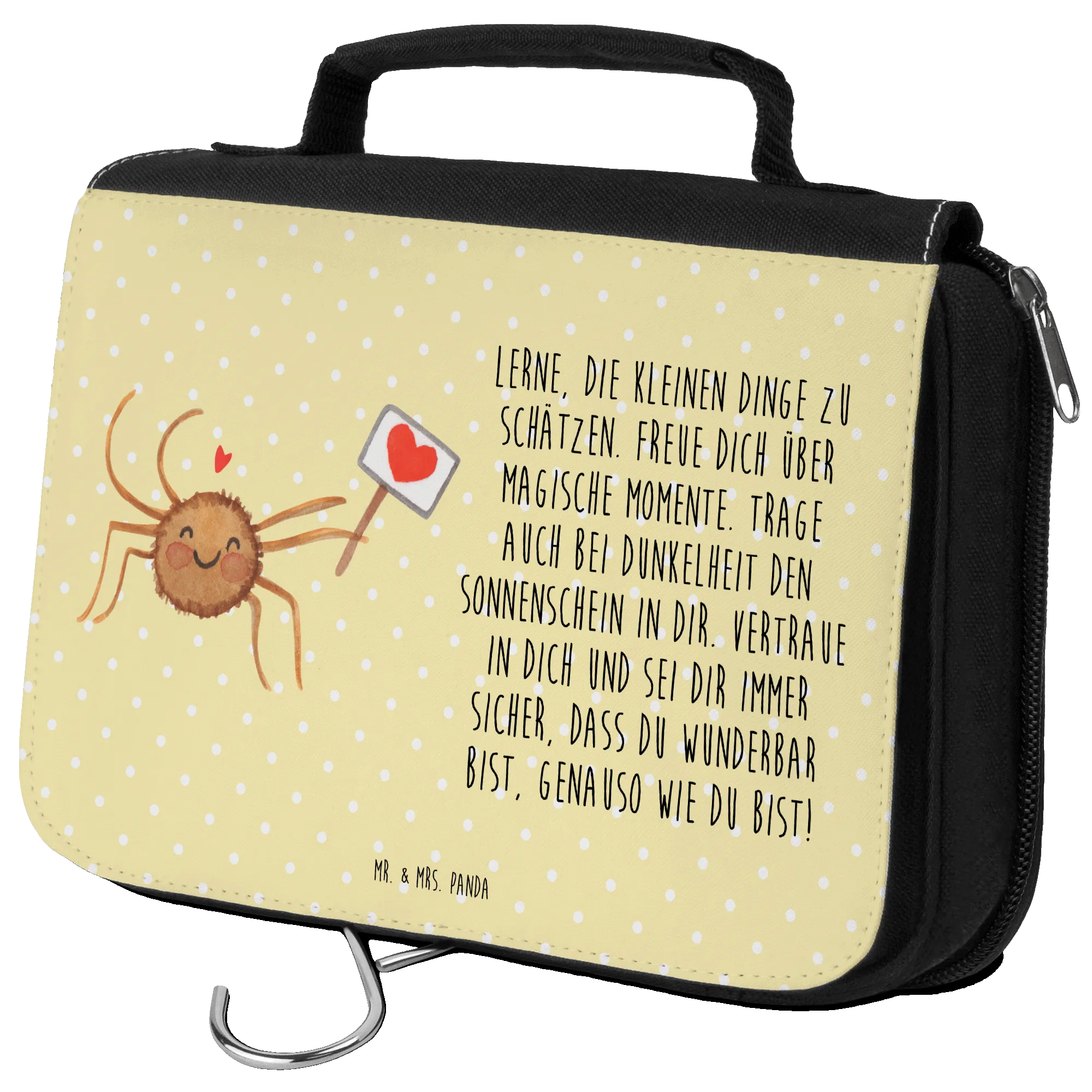 Der wunderschöne Kulturbeutel mit dem künstlerischen Motiv der Spinne Agathe aus der Kollektion von Mr. & Mrs. Panda ist das ideale Accessoire für alle, die nicht nur unterwegs ihre Hygiene- und Kosmetikprodukte stylisch verstauen möchten, sondern auch eine Portion Motivation und Glück in ihrem Leben suchen.