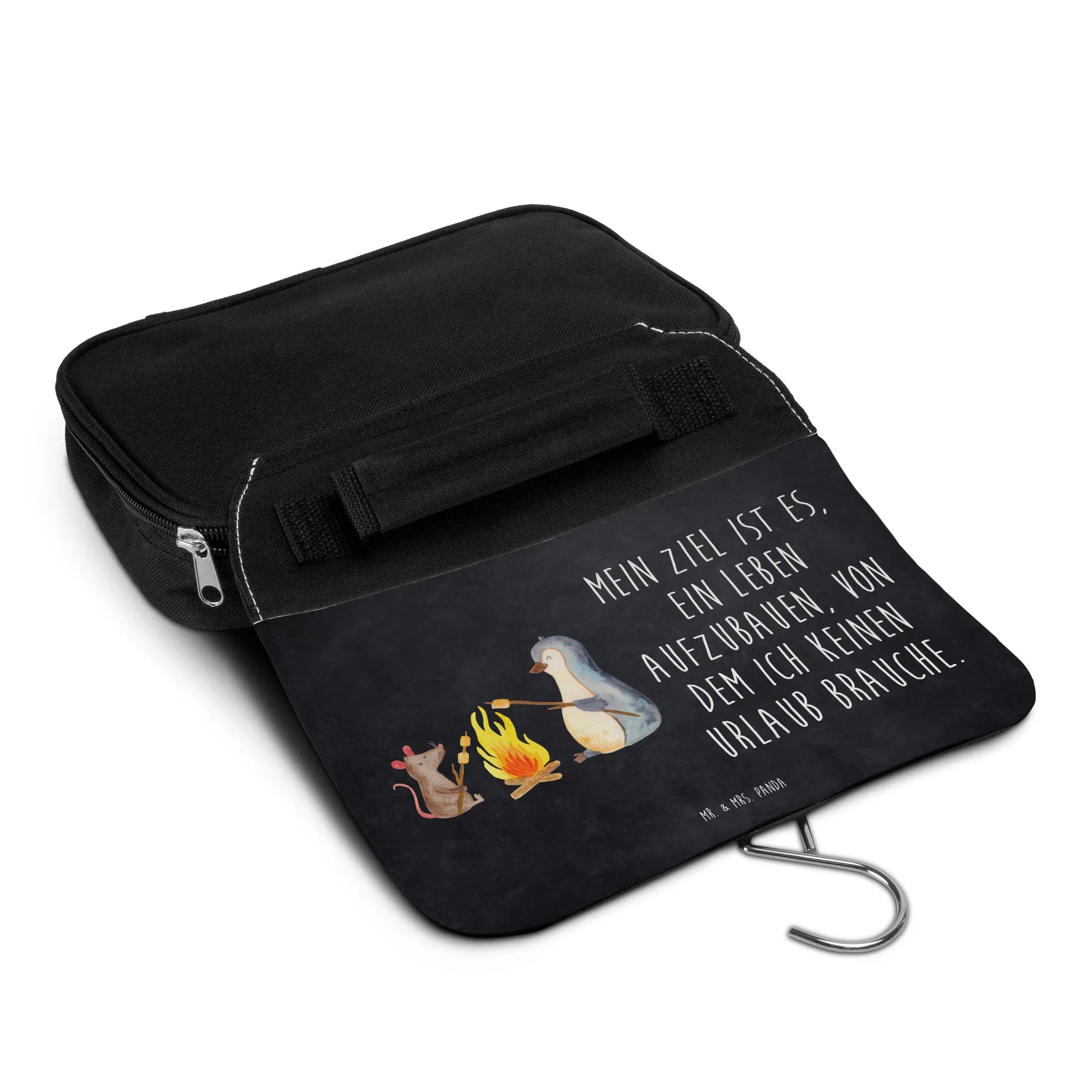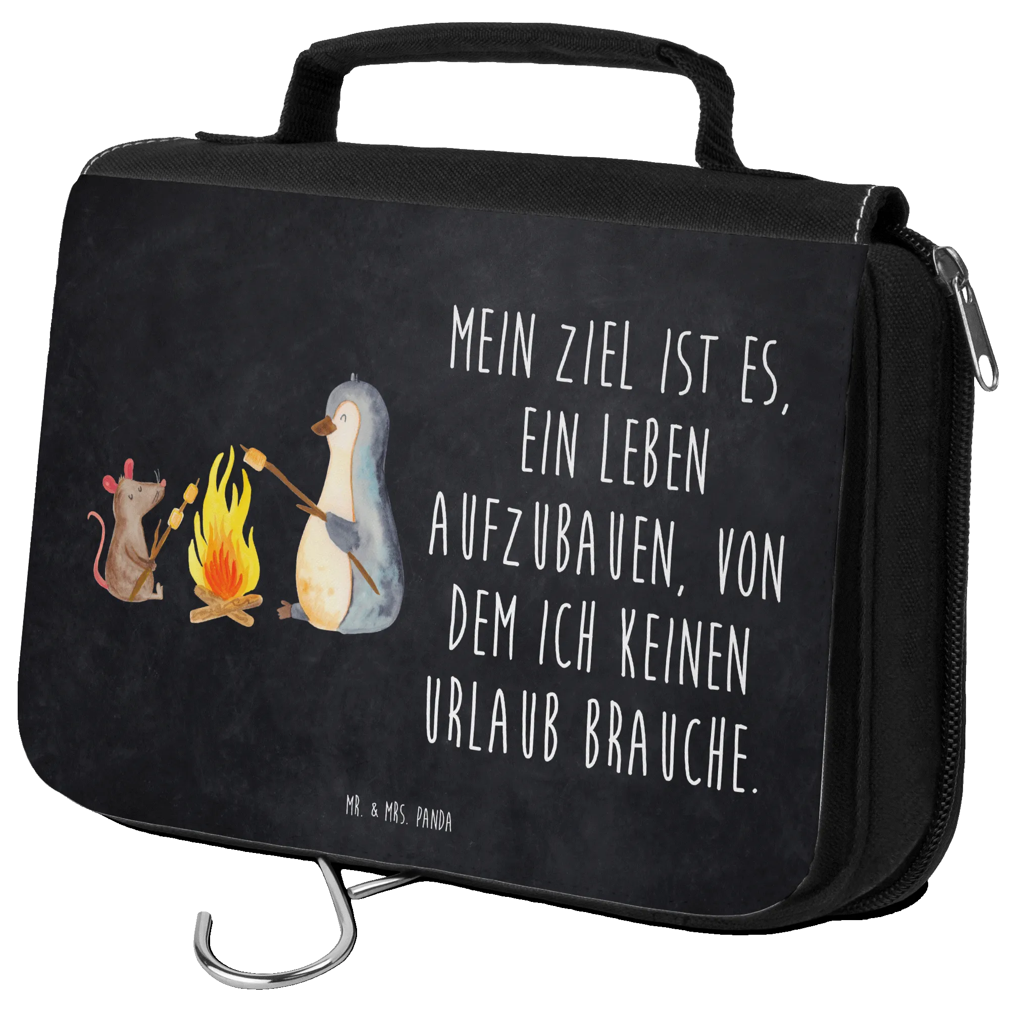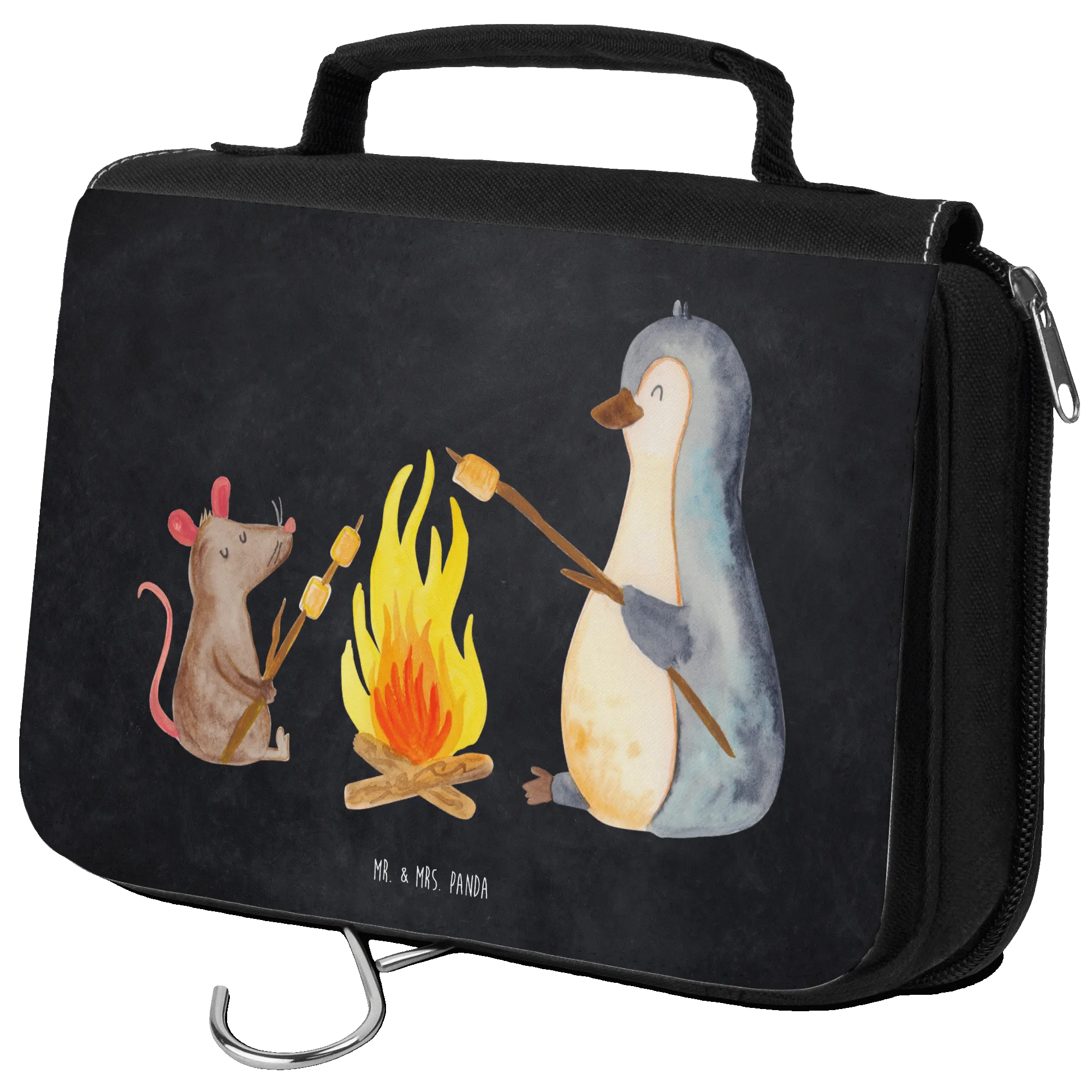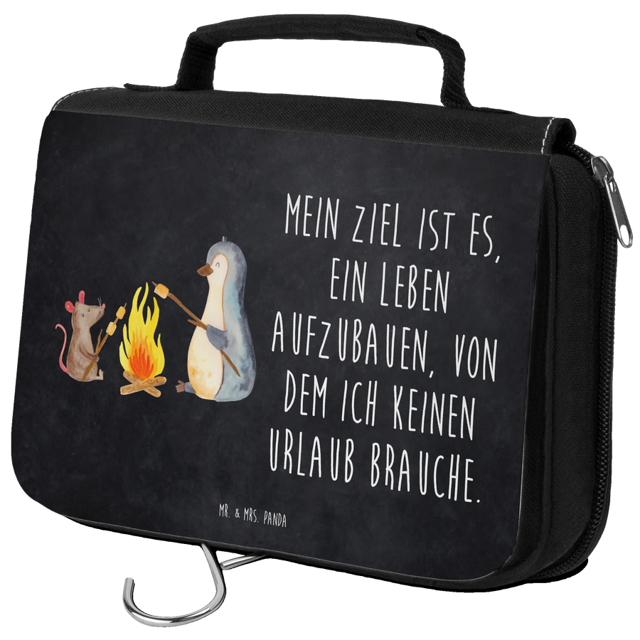 Kosmetyczka pingwin ognisko - z napisem - Tablica kredowa