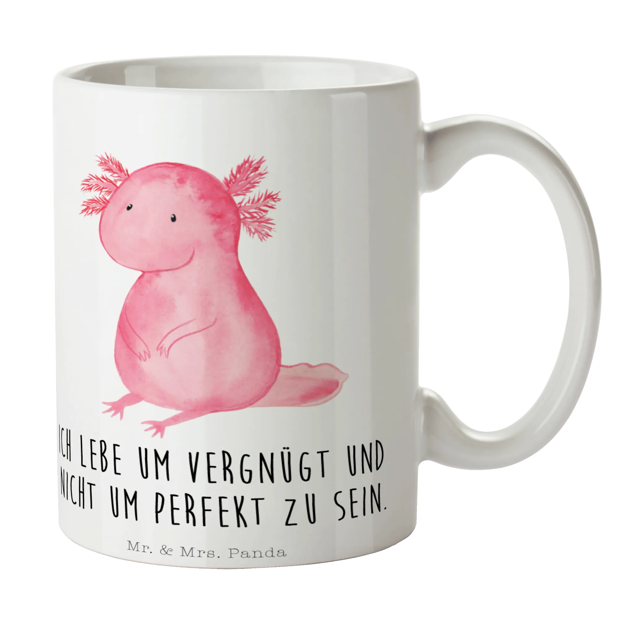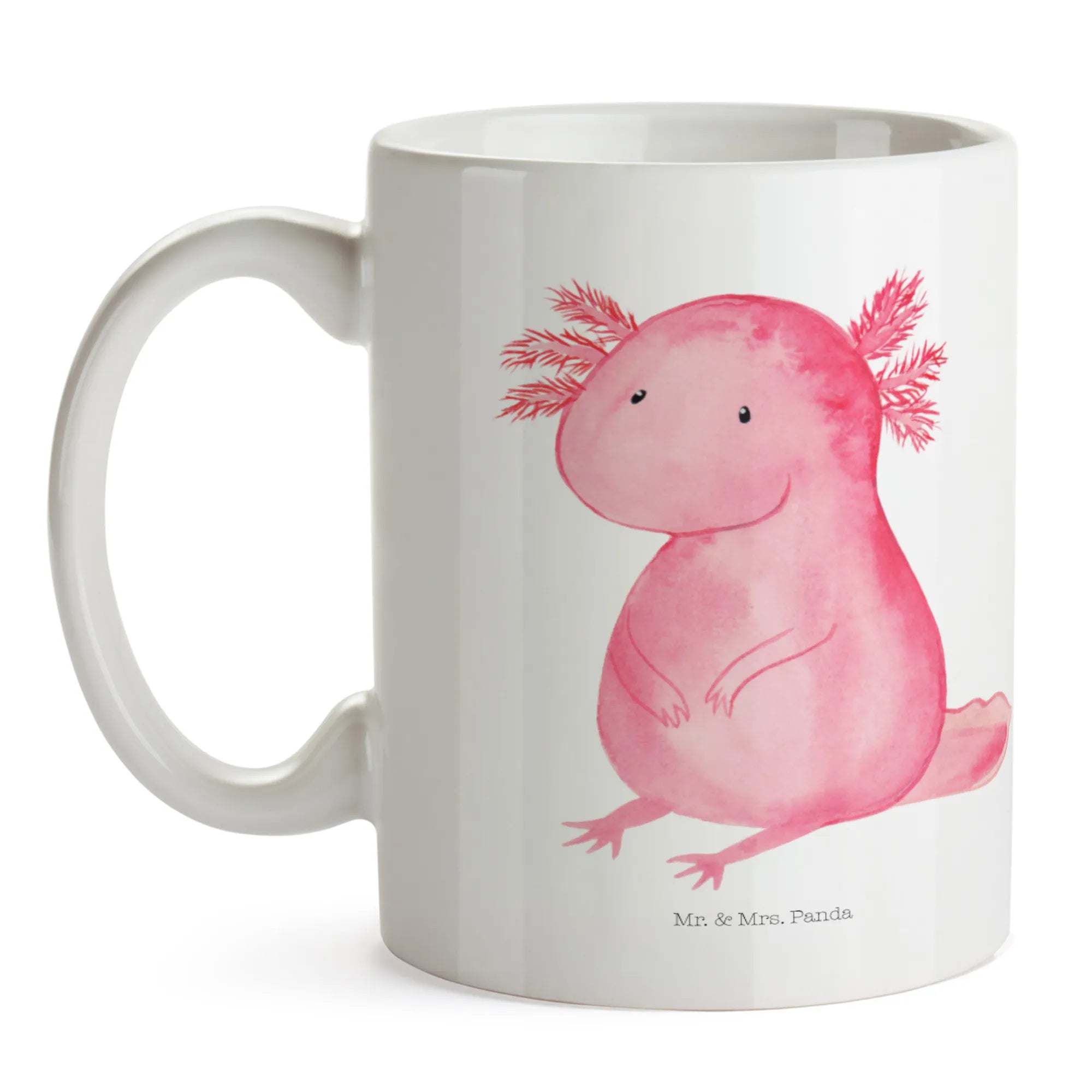 Kubek aksolotl null - z napisem - Ceramika - biały