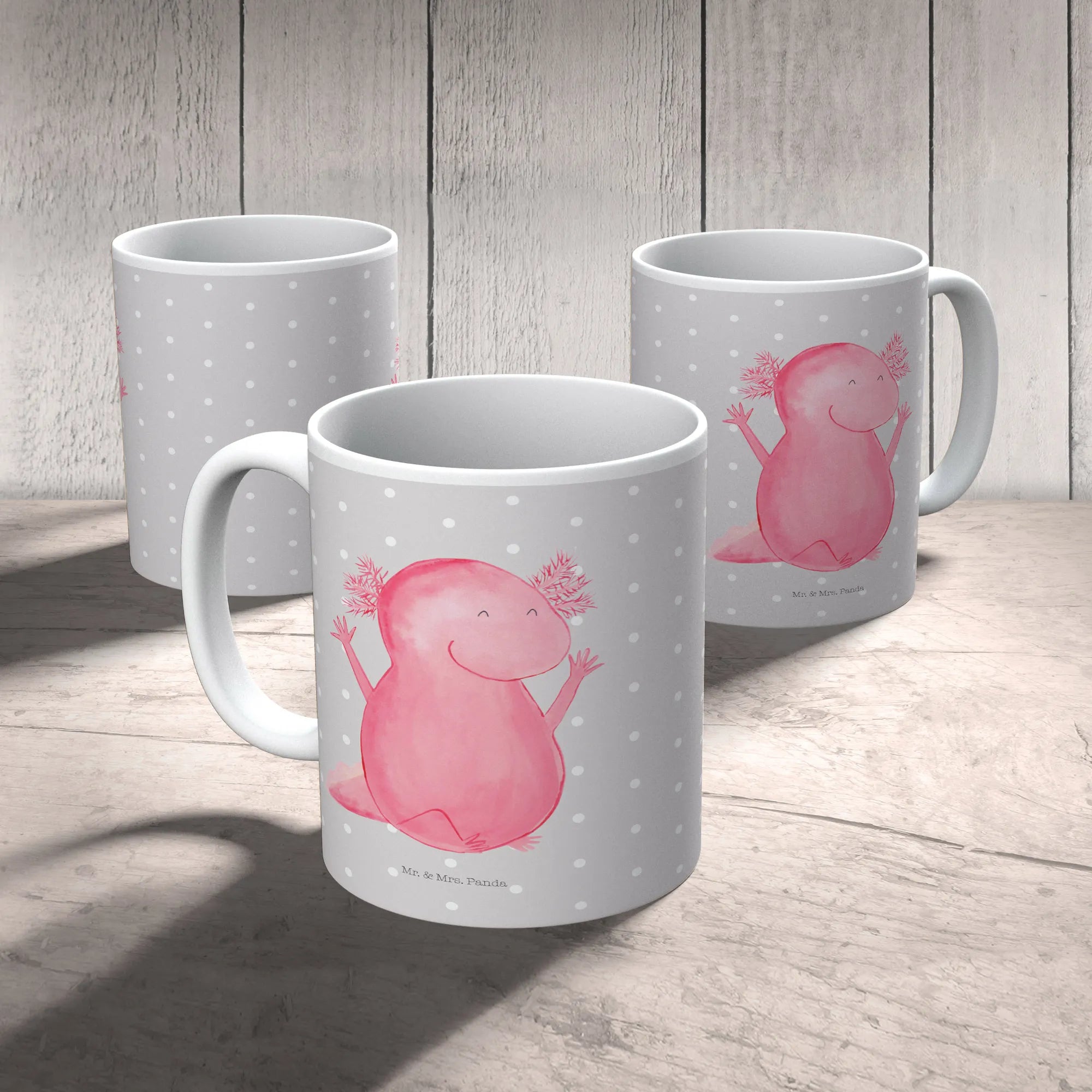 Kubek Axolotl Hurra Kaffeetasse, Tasse, Porzellantasse, Bürotasse, Tasse mit Zitaten, Geschenktasse, Tasse mit Motiven, Teetasse, Keramiktasse, Axolotl, Molch, Lurche, Axolot, Motivation, fröhlich, Spaß, Freude, Zufriedenheit, Schwanzlurch, Lurch