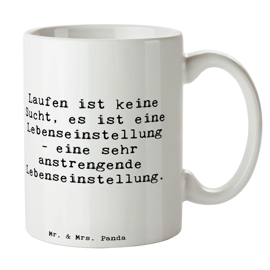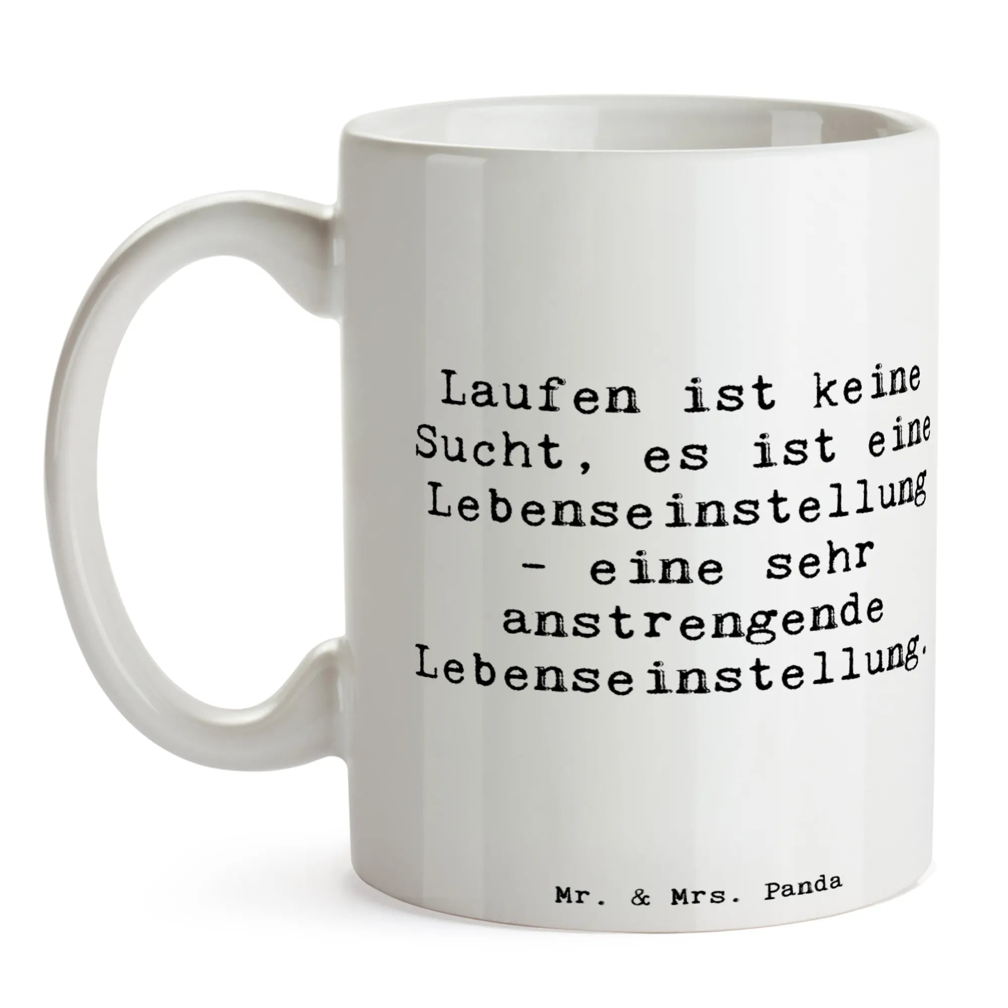 Kubek Cytat Laufen ist keine Sucht, es ist eine Lebenseinstellung - eine sehr anstrengende Lebenseinstellung. - biały