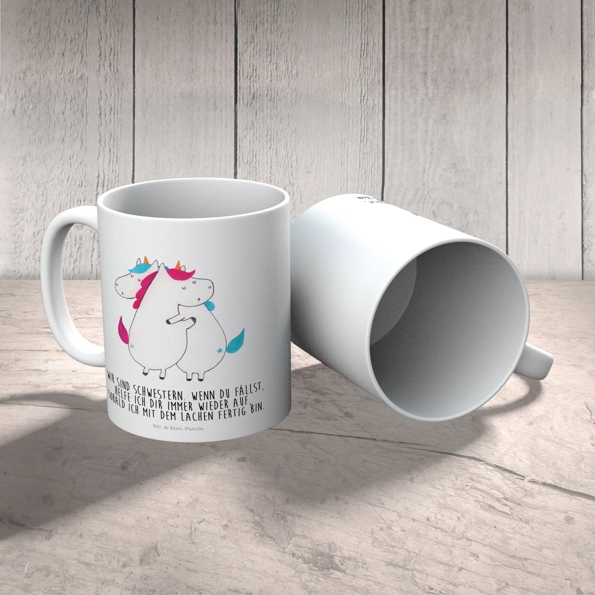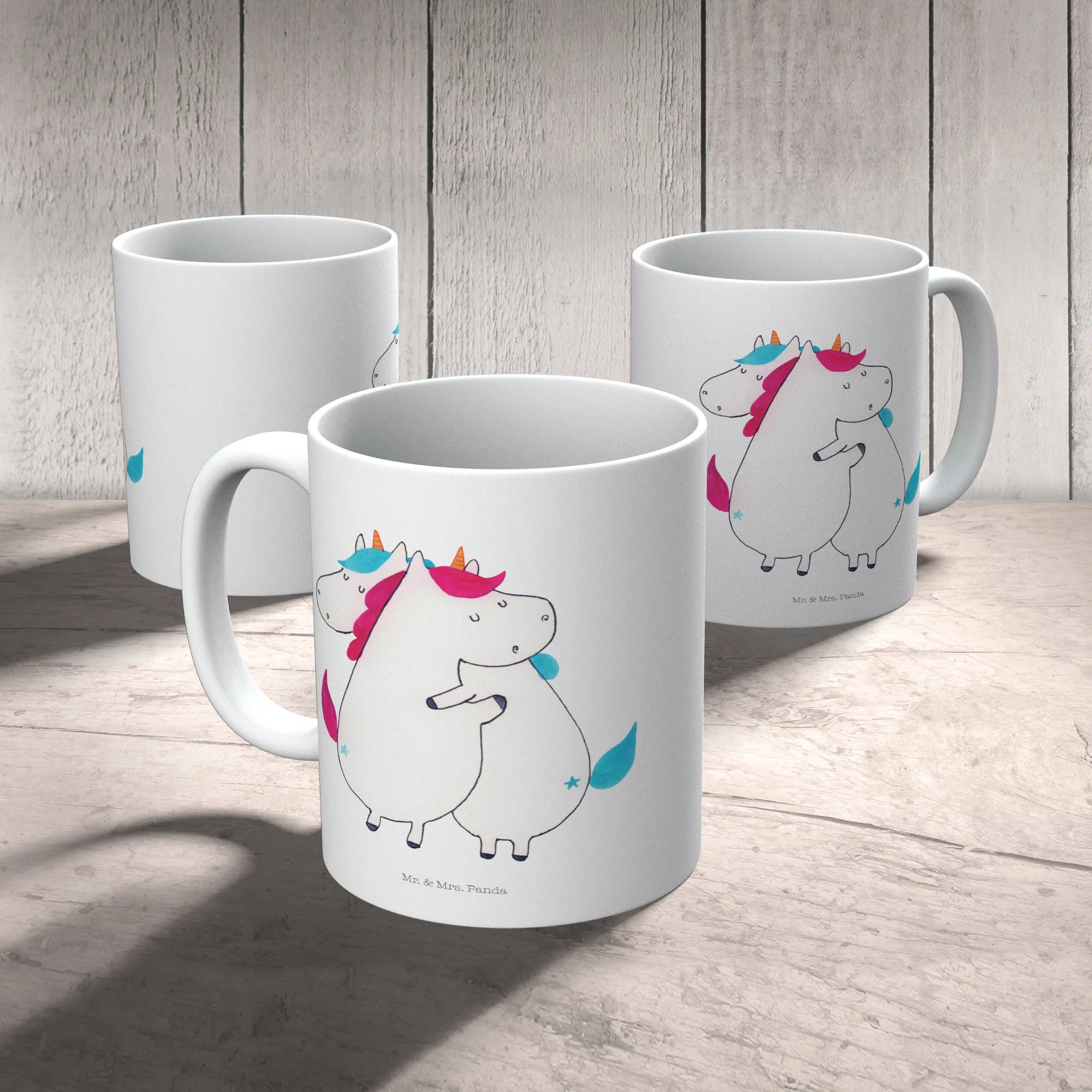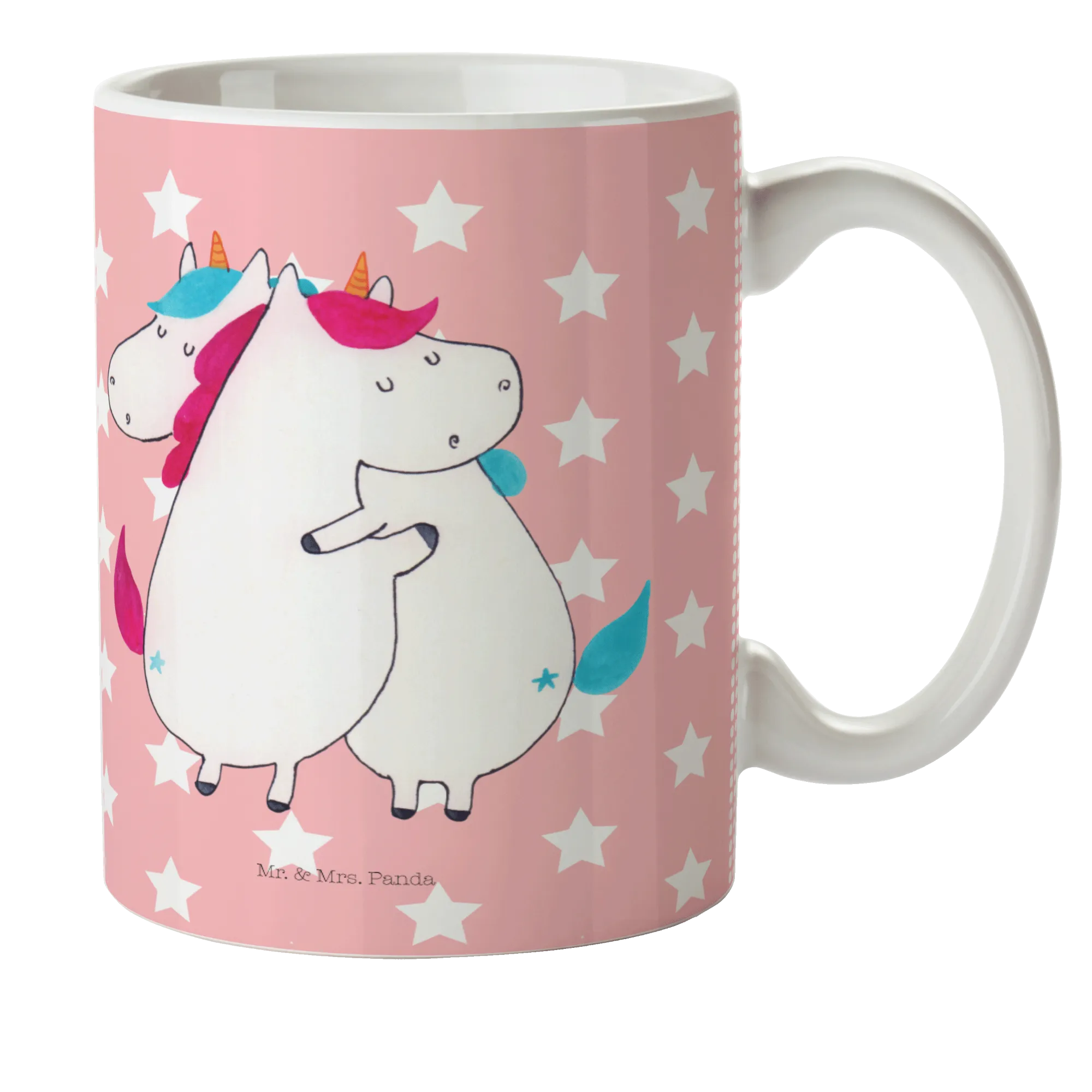 kubek dla dzieci Jednorożce Przytulanie - z napisem - Pastelowy czerwony