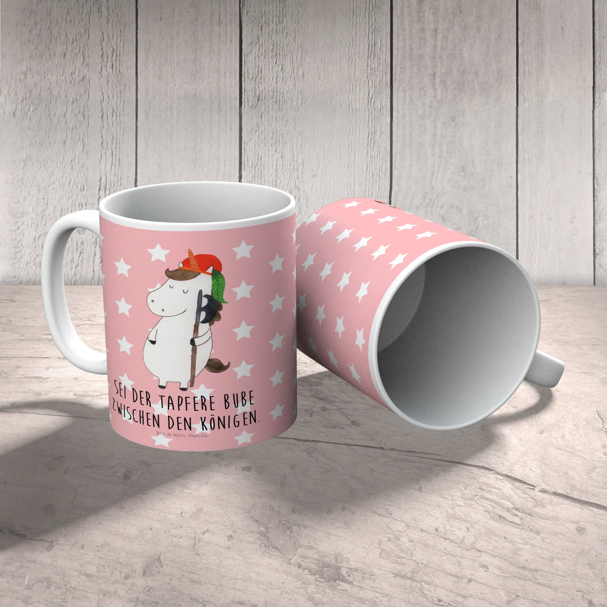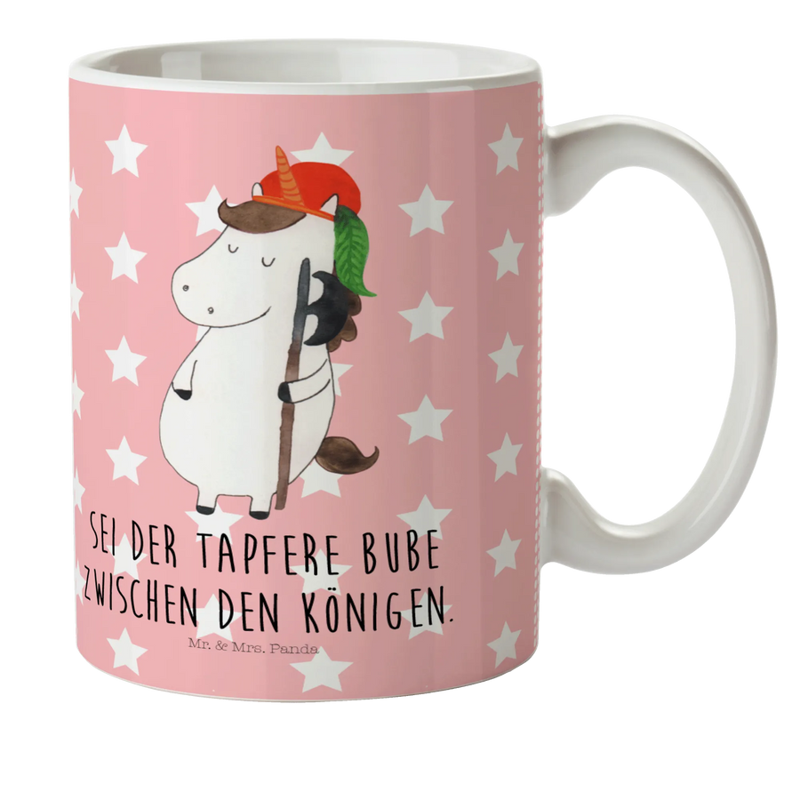kubek dla dzieci Jednorożec Chłopiec - z napisem - Pastelowy czerwony