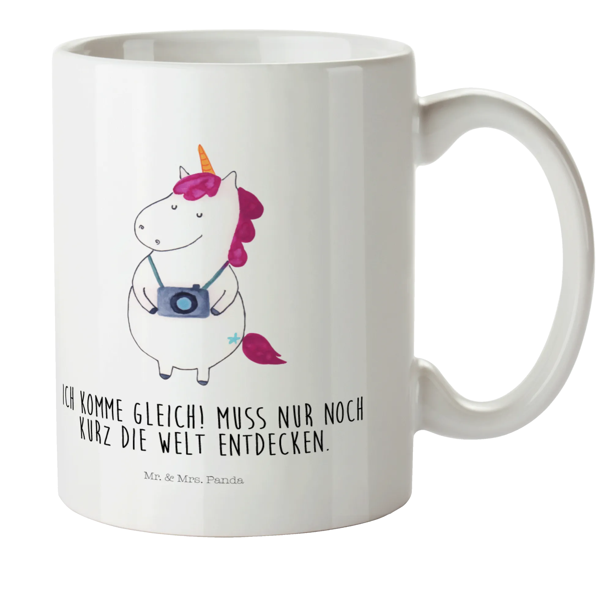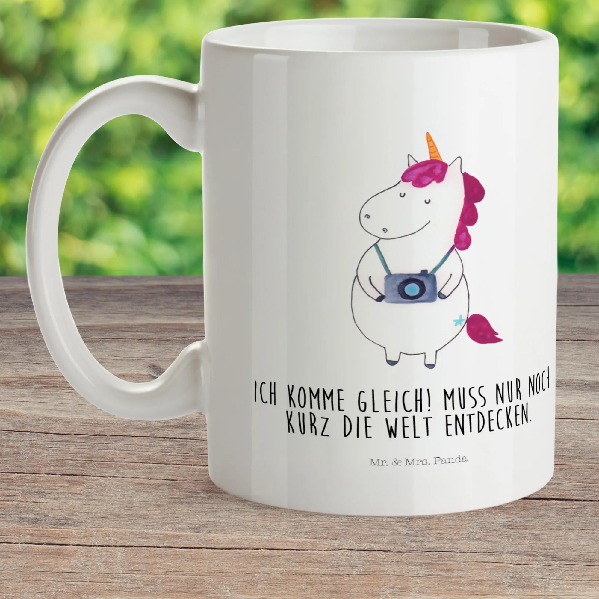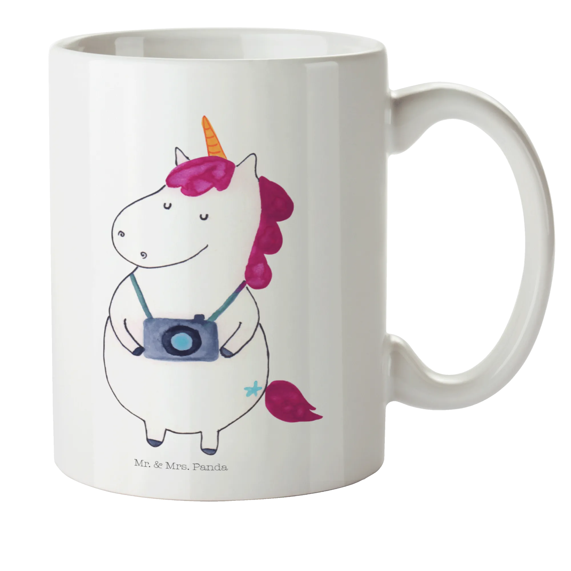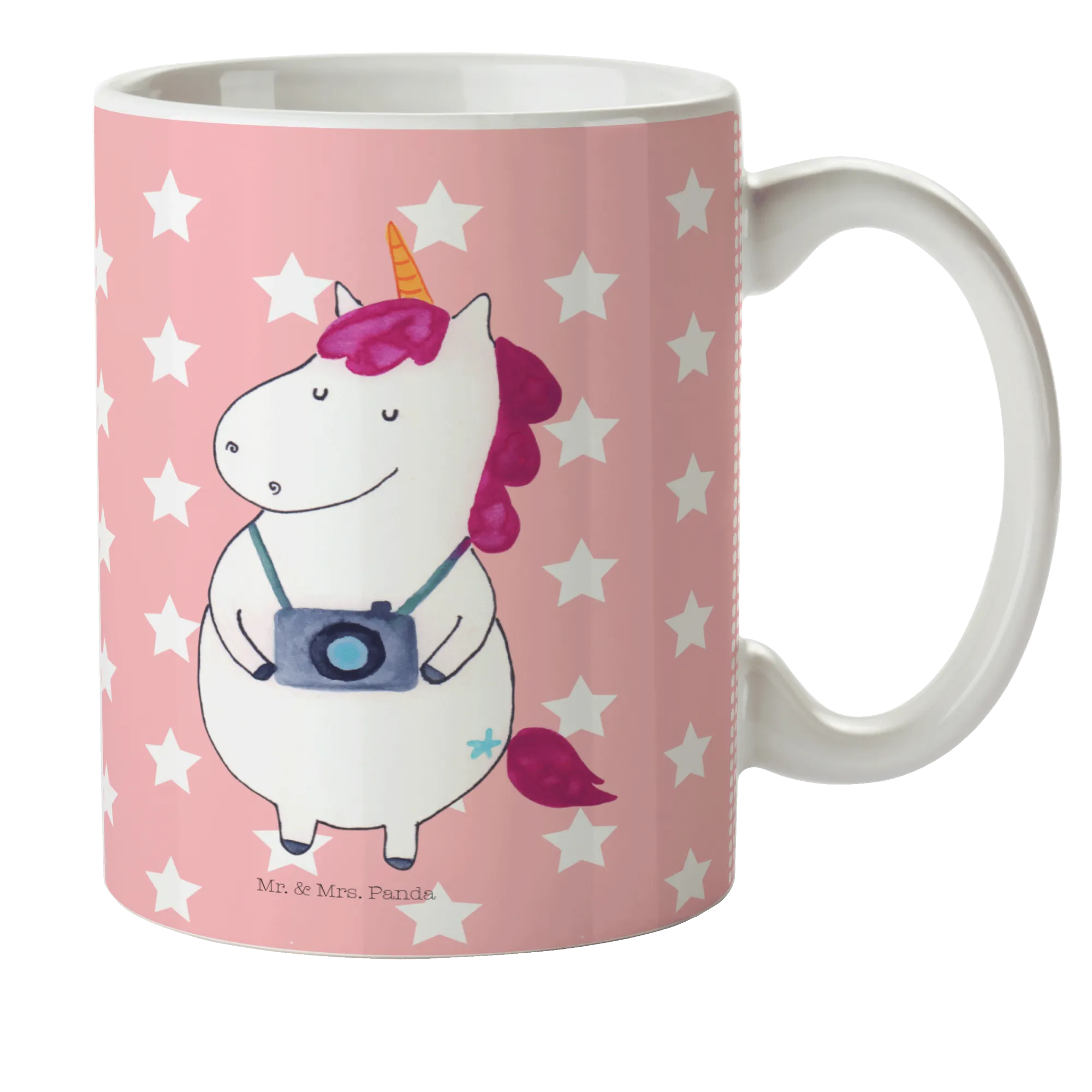kubek dla dzieci Jednorożec fotograf - z napisem - Pastelowy czerwony