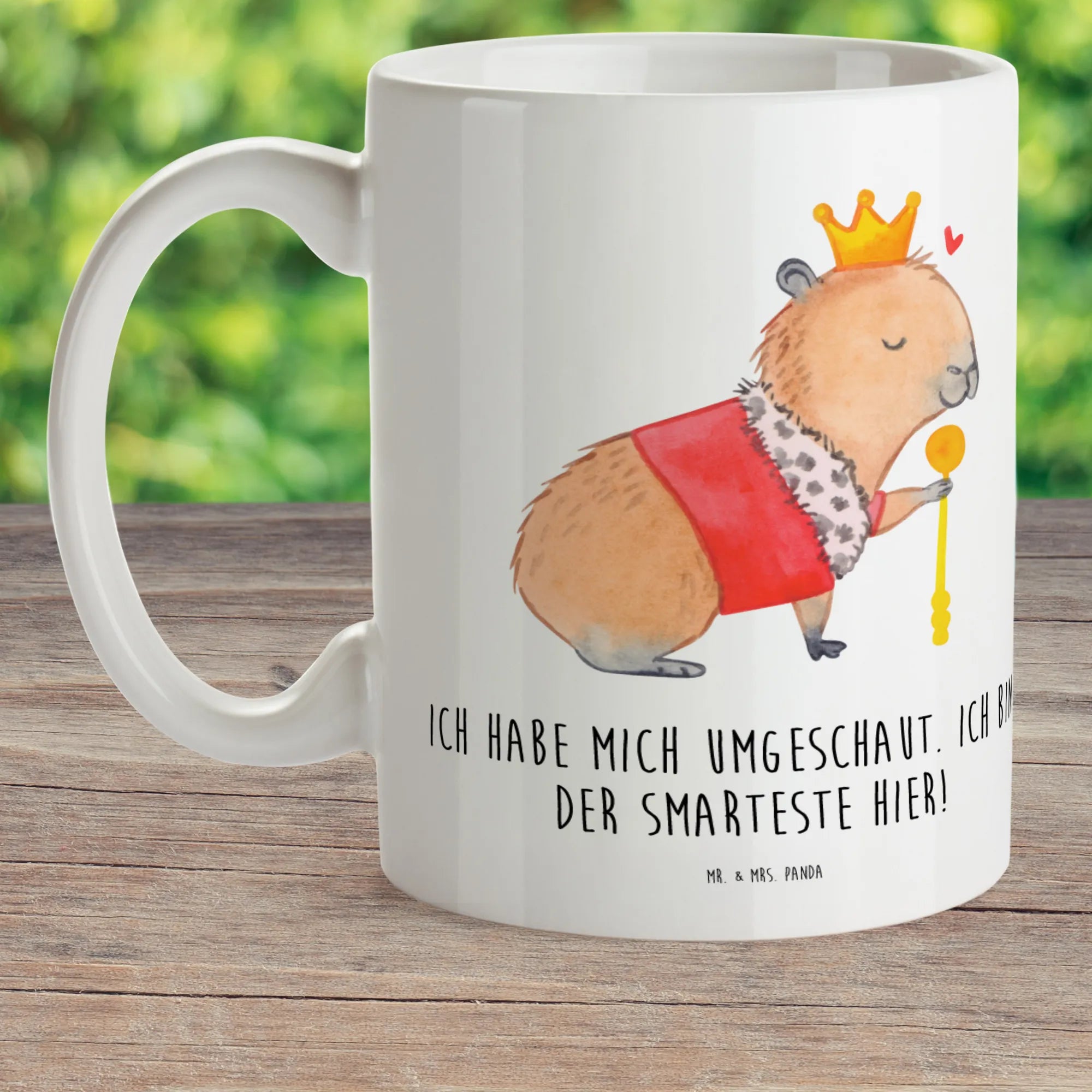 Die Kombination aus einem lustigen Spruch – "Ich habe mich umgeschaut. Ich bin der Smarteste hier!" – und dem charmanten Tiermotiv macht diese Tasse nicht nur zu einem praktischen Element, sondern auch zu einem echten Hingucker. Die Small World Kollektion ist bekannt für ihre Vielfalt und die liebevollen Designs, die Kinderaugen zum Strahlen bringen. Mit dem Capybara König hat dein Kind einen treuen Begleiter für viele Abenteuer und wird sich freuen, seine Getränke in dieser außergewöhnlichen Tasse zu genießen.