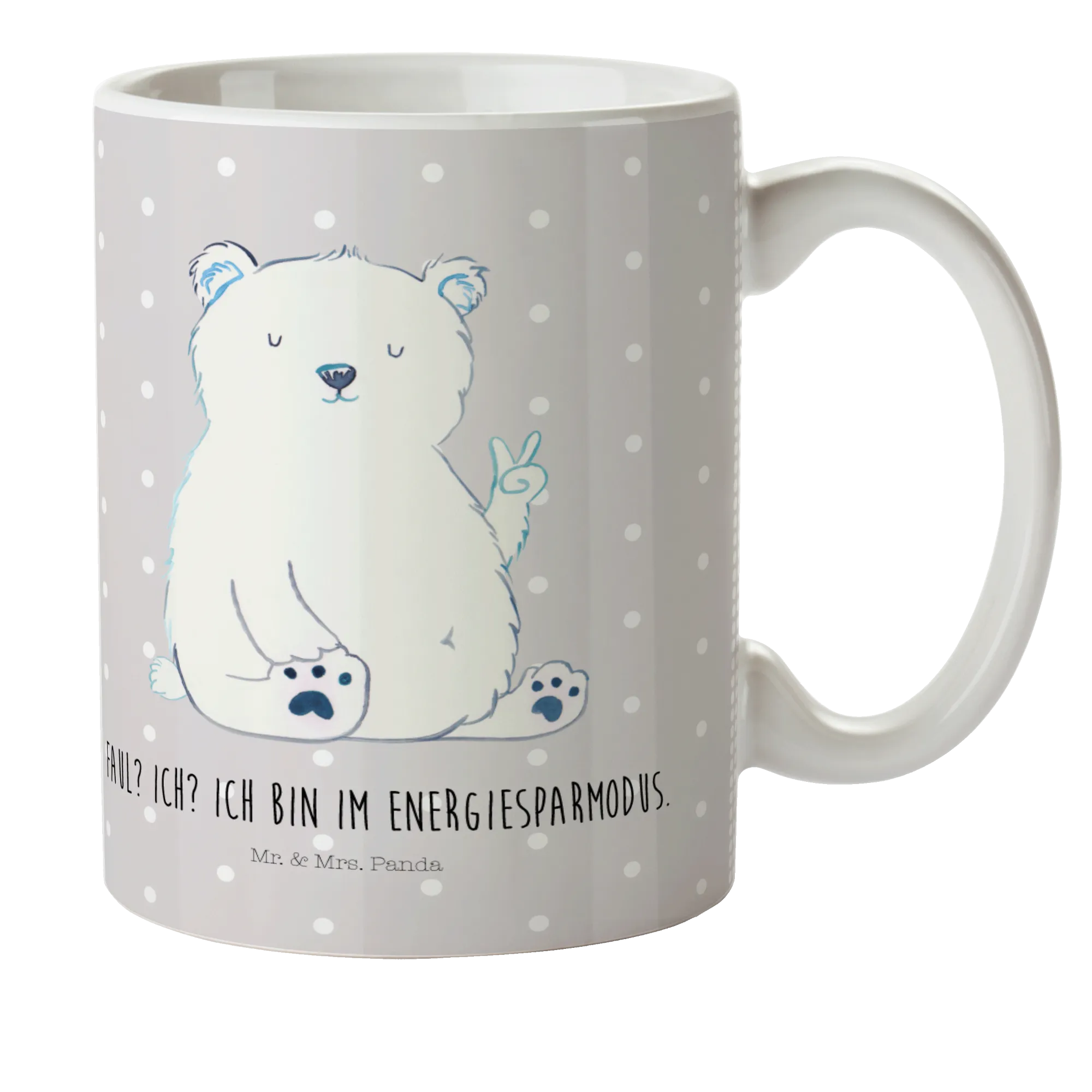 kubek dla dzieci Niedźwiedź polarny leniwy - z napisem - Pastelowy szary