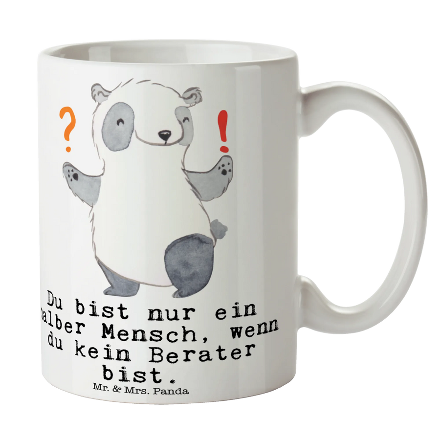 Verschenke ein Lächeln für den Berufsalltag: Die Tasse „Berater mit Herz“ aus der Berufe-Kollektion von Mr. & Mrs. Panda ist die liebevolle Geschenkidee für alle Beraterinnen und Berater. Das handgezeichnete Aquarellmotiv zeigt unseren süßen Panda im Berater-Charakter und wird ergänzt durch den frechen Spruch „Du bist nur ein halber Mensch, wenn du kein Berater bist.“ – ein perfekter Gesprächsstarter in jeder Kaffeepause.