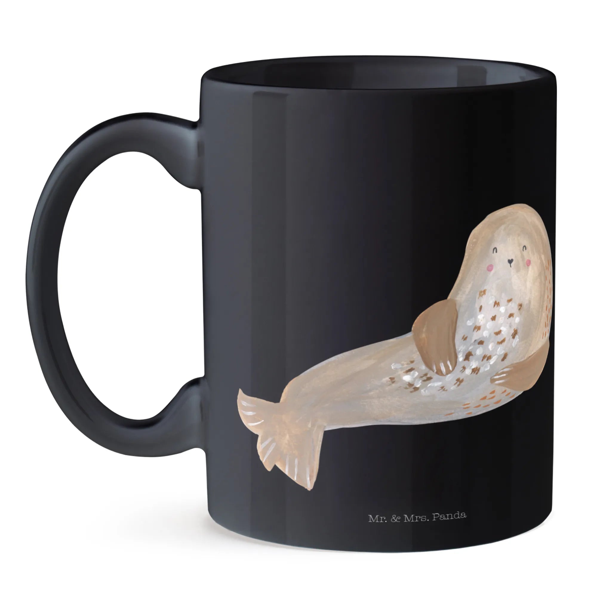 Kubek foka śmiech - z napisem - Ceramika - Pastelowy żółty
