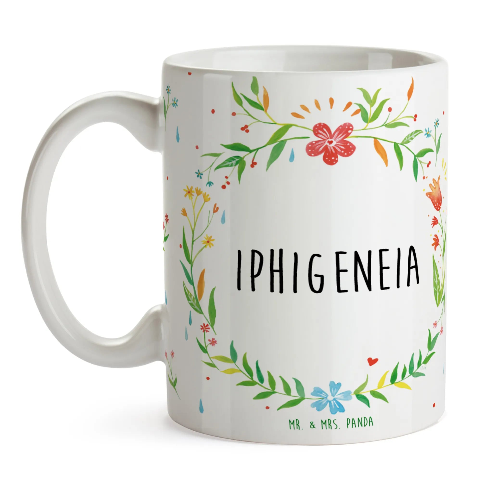 Die Tasse „Iphigeneia“ aus der forenames-Kollektion verbindet liebevolles Design mit praktischem Nutzen. Der Schriftzug „Iphigeneia“ ist von einer filigranen Blumenranke umgeben, die dem Motiv eine elegante, freundliche Note verleiht. Diese Geschenktasse ist ideal für alle, die den Namen Iphigeneia tragen oder jemanden mit diesem besonderen Namen überraschen möchten.