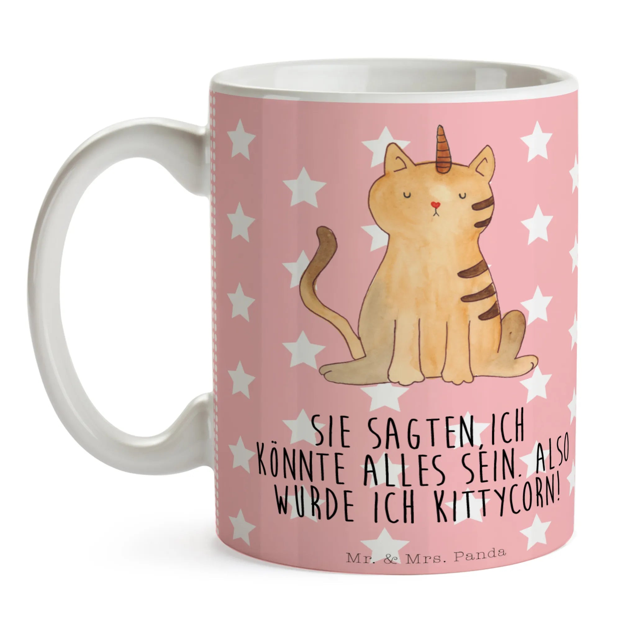 Kubek jednorożec kot - z napisem - Pastelowy czerwony
