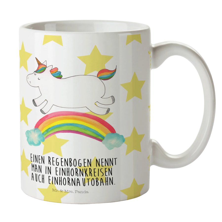 Kubek jednorożec tęcza - z napisem - biały