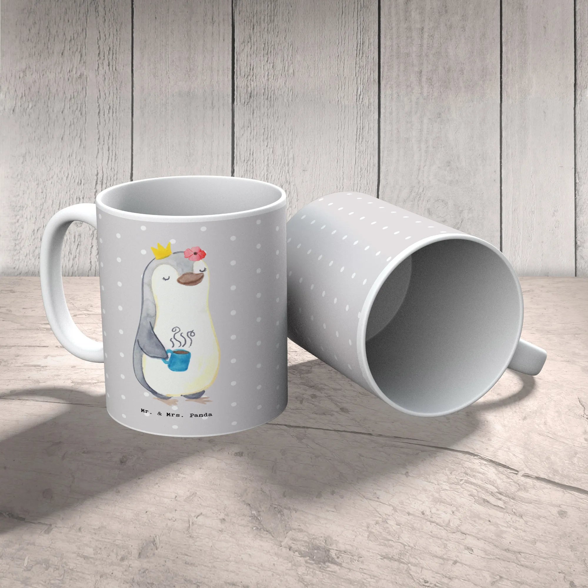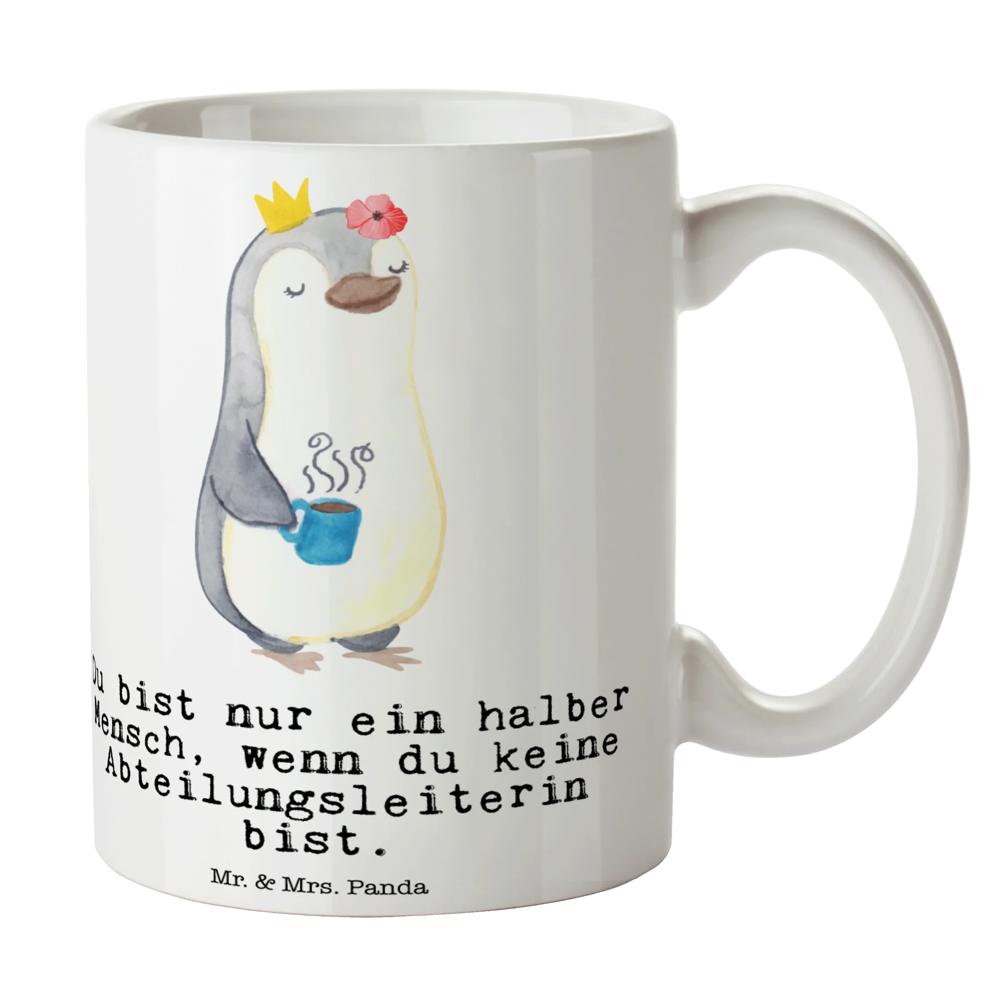 Schenk deiner Lieblingsabteilungsleiterin ein Lächeln mit unserer liebevoll gestalteten Kaffeetasse. Das süße Aquarellmotiv von Mrs. Panda zeigt einen kleinen Pinguin mit einer Tasse in der Hand und wird begleitet vom frechen Spruch „Du bist nur ein halber Mensch, wenn du keine Abteilungsleiterin bist.“ – perfekt für alle, die Führung mit Herz leben.