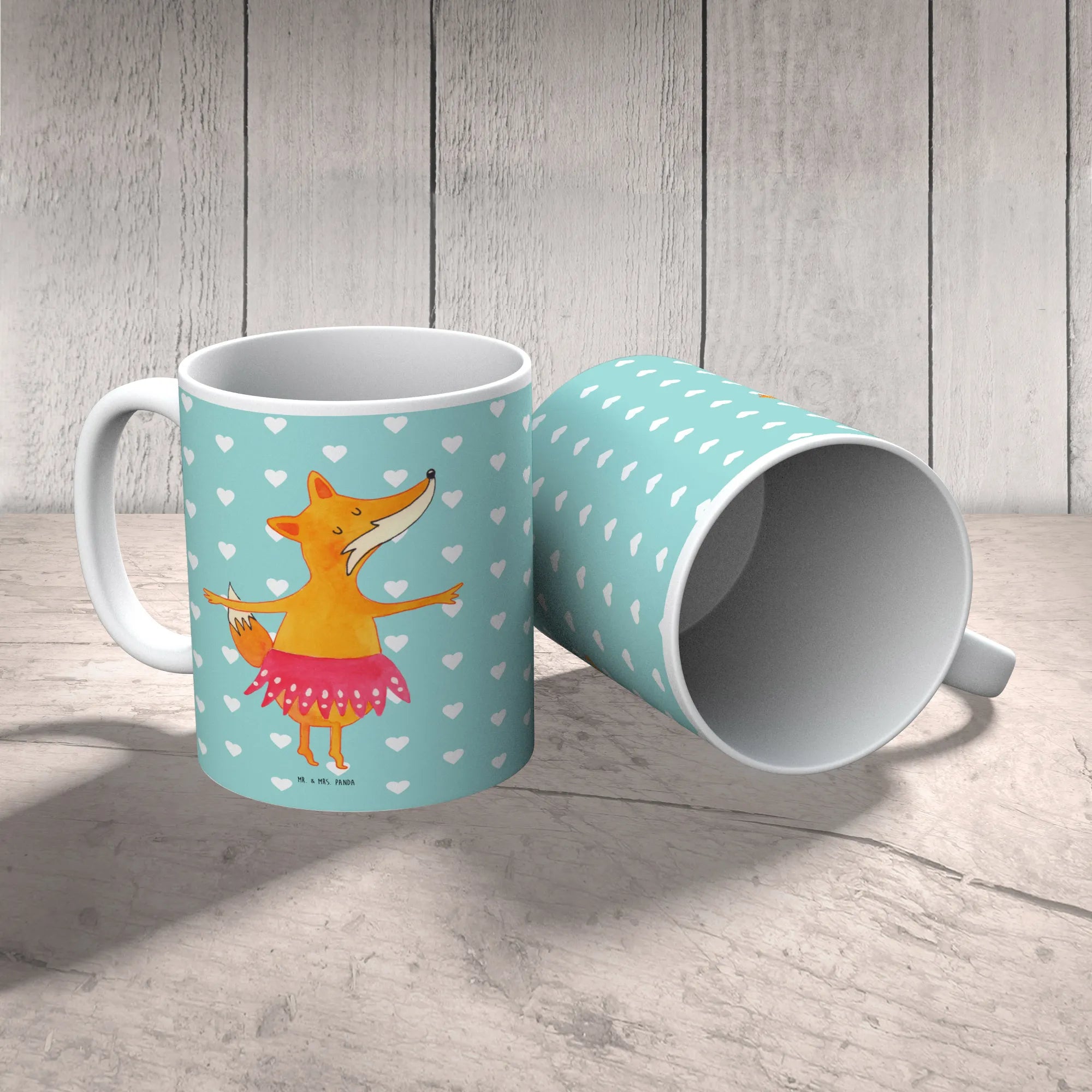 Kubek Lis baletnica - z napisem - Ceramika - pastelowy turkus