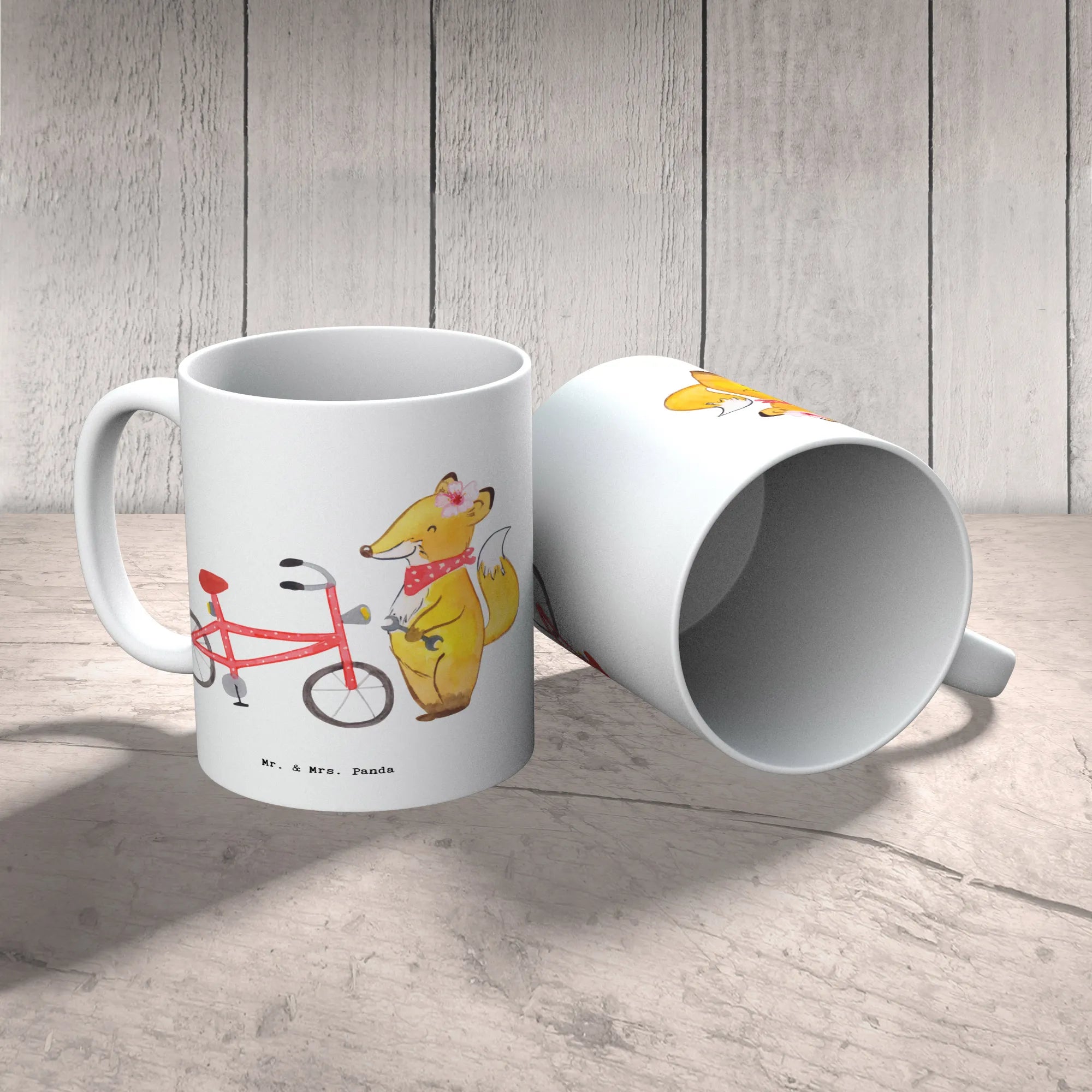 Kubek Mechatroniczka pojazdów dwukołowych serce - z napisem - biały