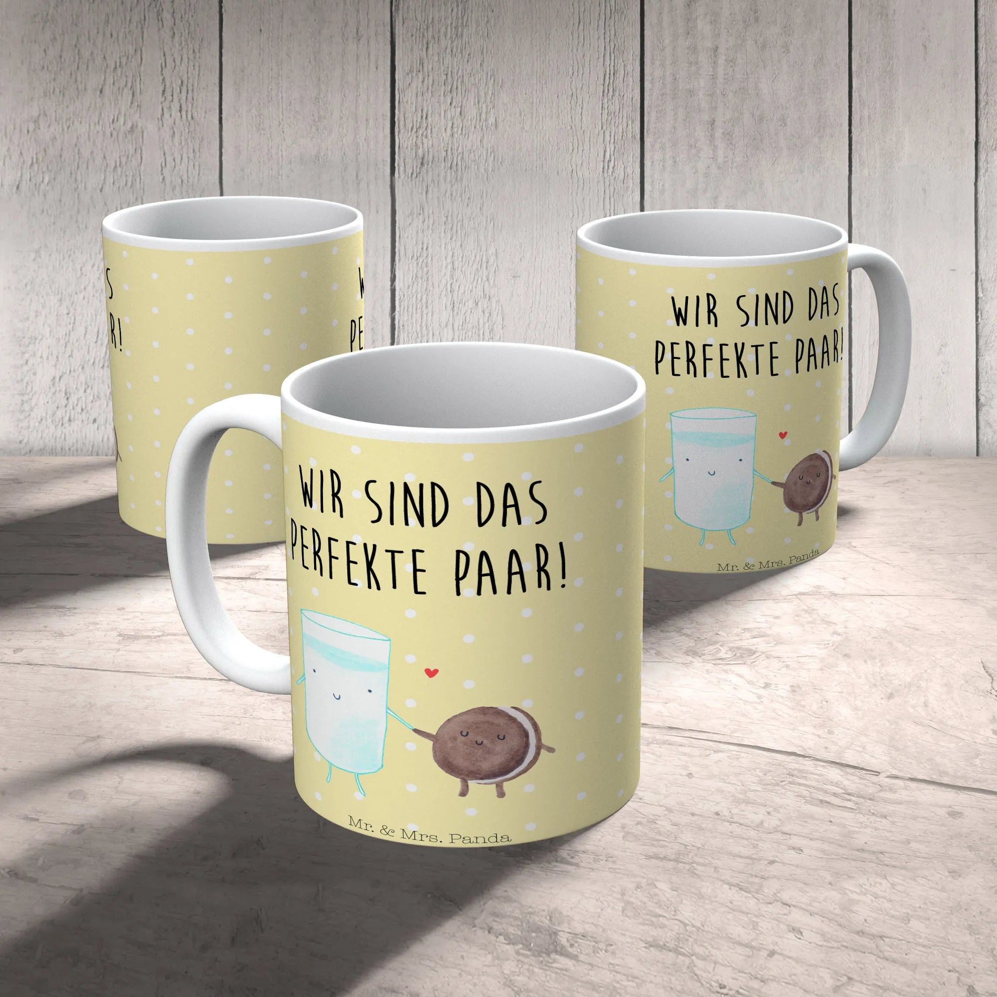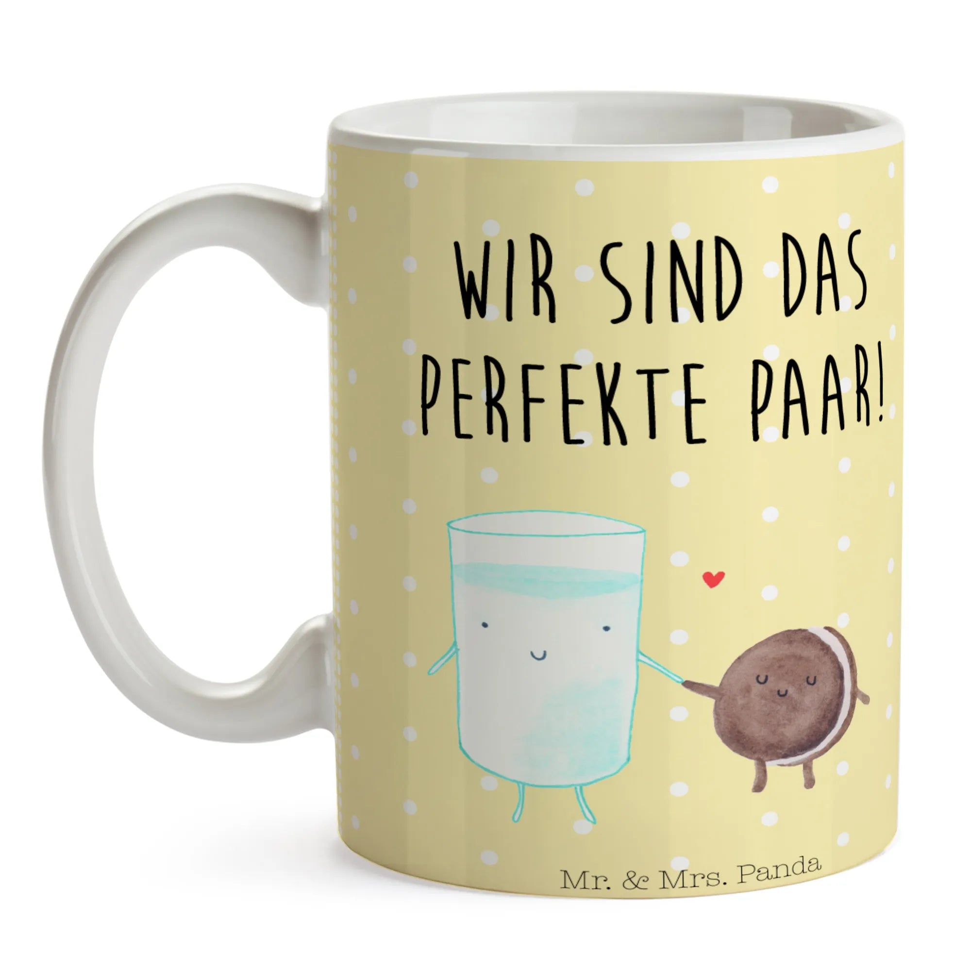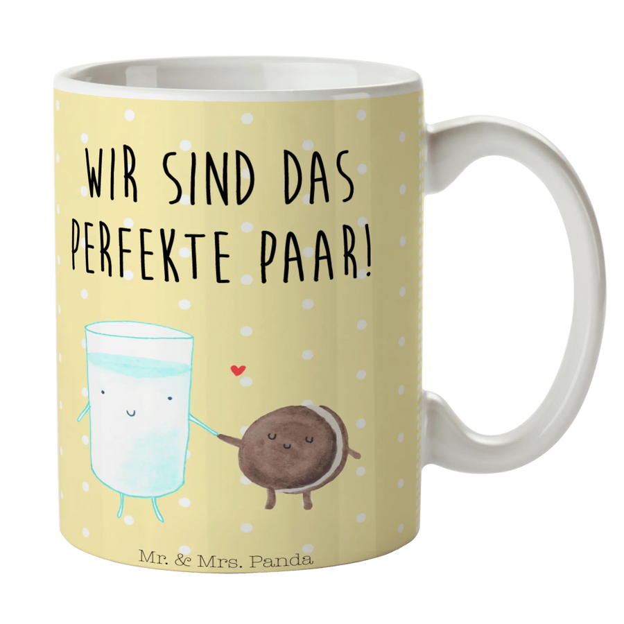 Kubek mleko ciastko - z napisem - Ceramika - Żółty Pastel