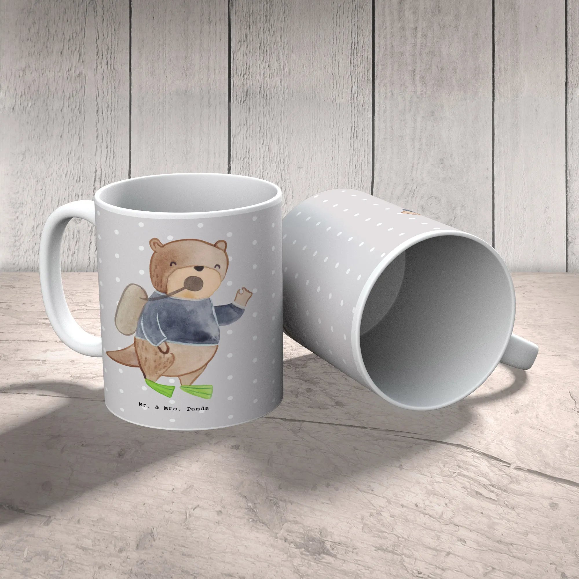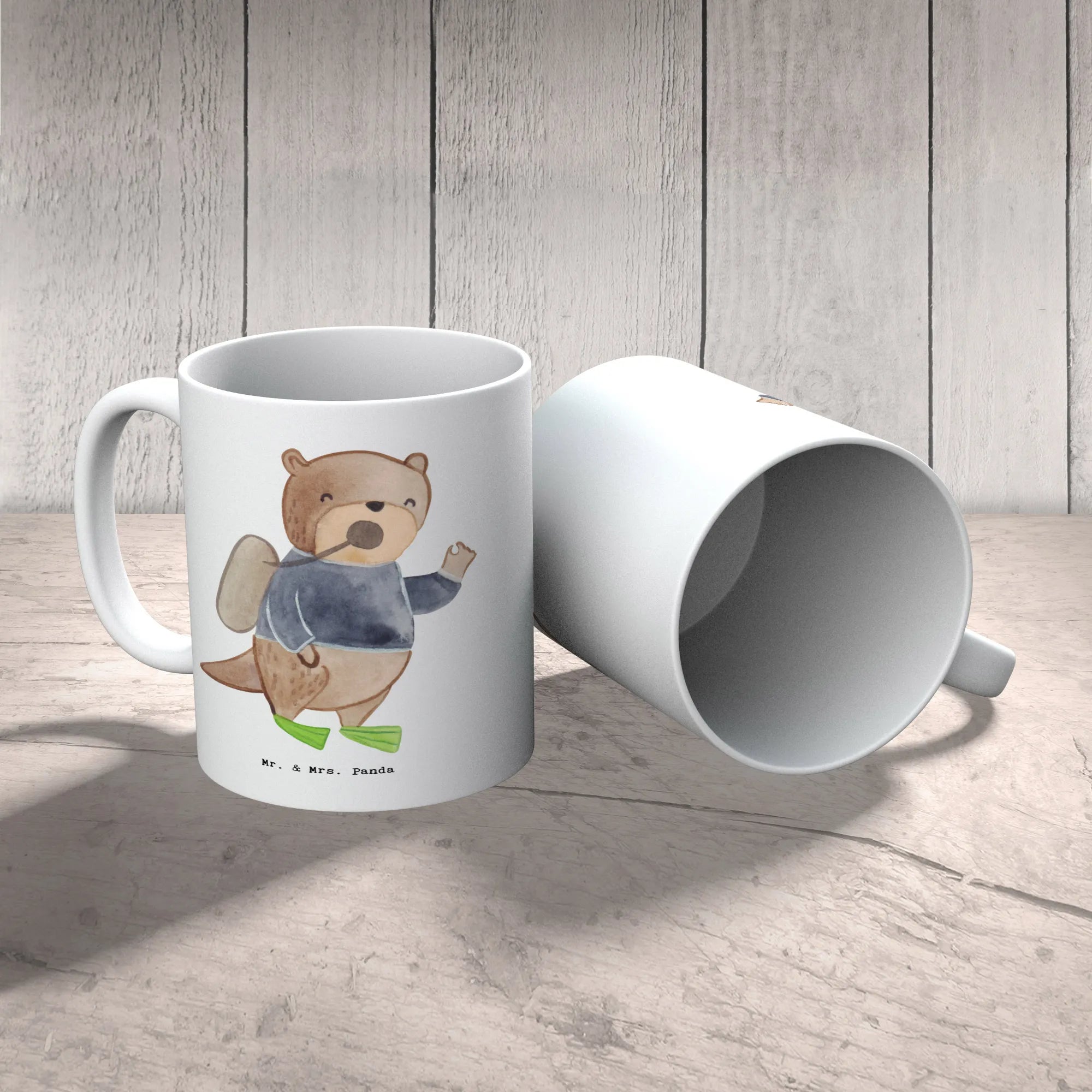 Kubek nurek serce - z napisem - biały