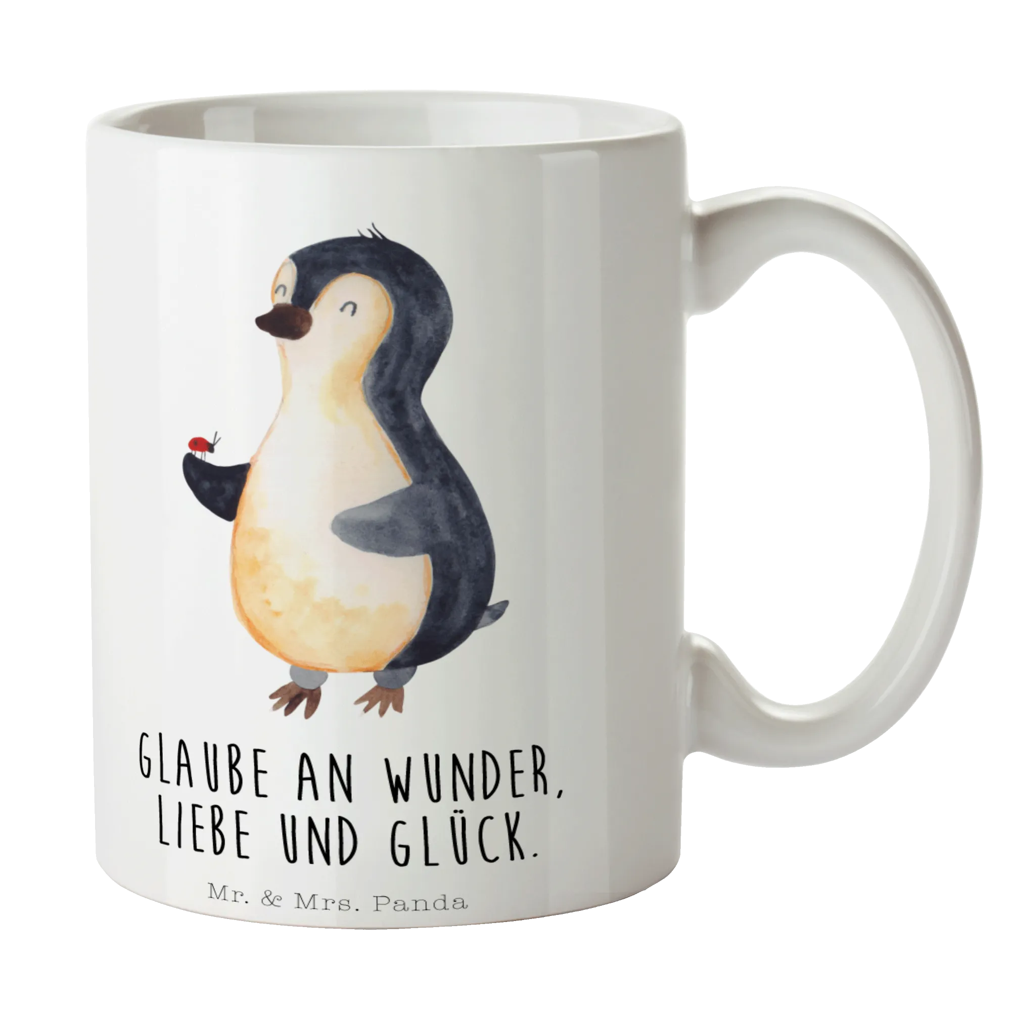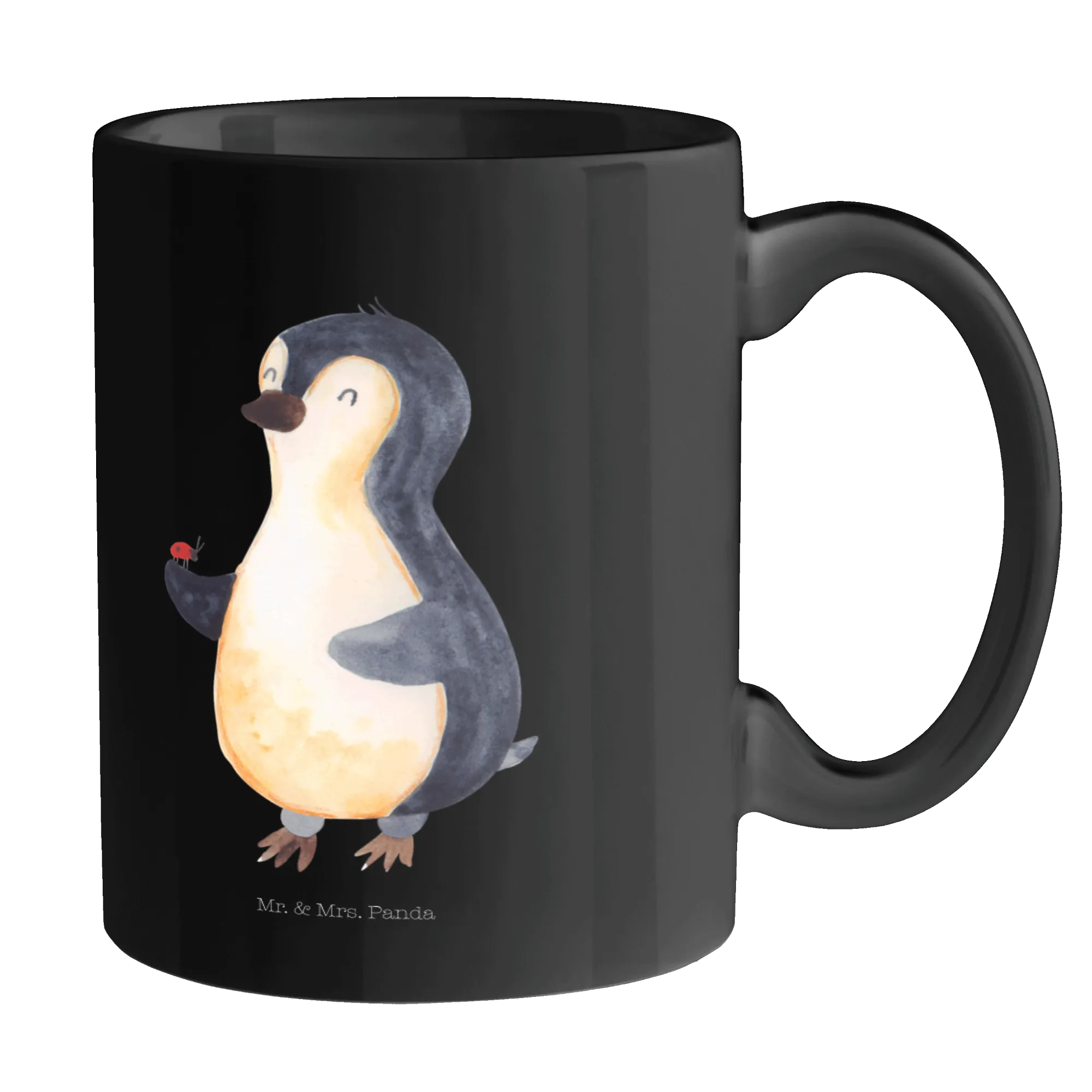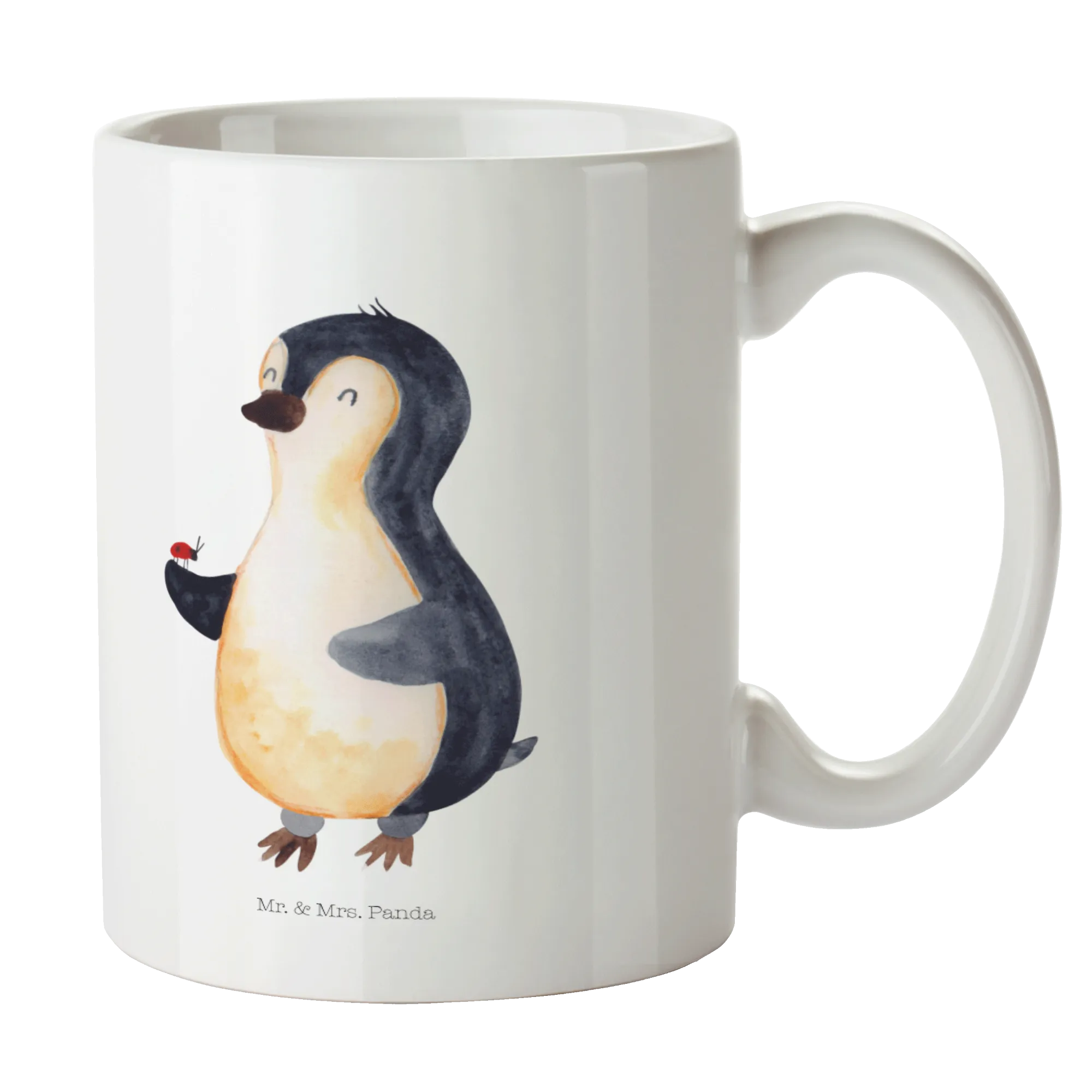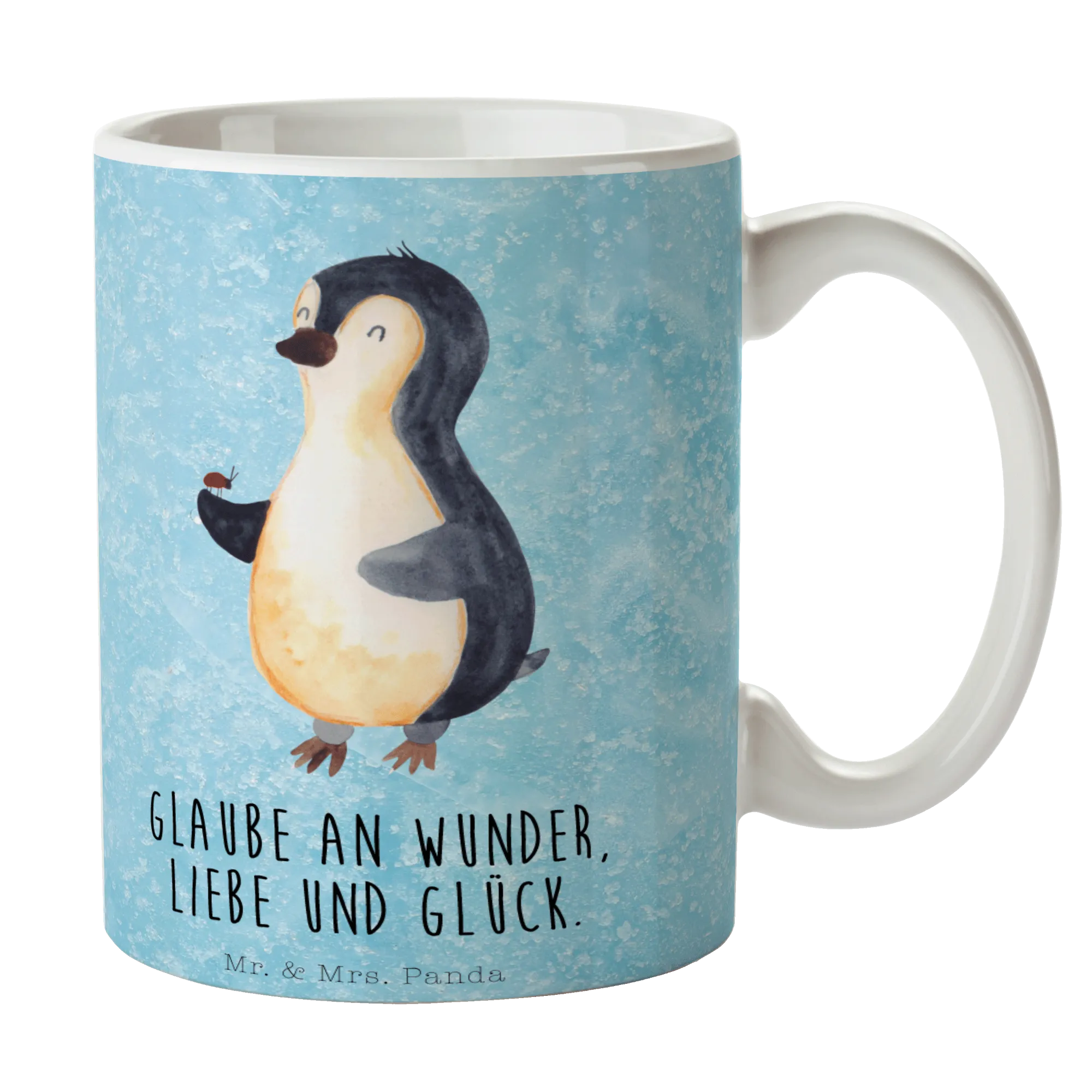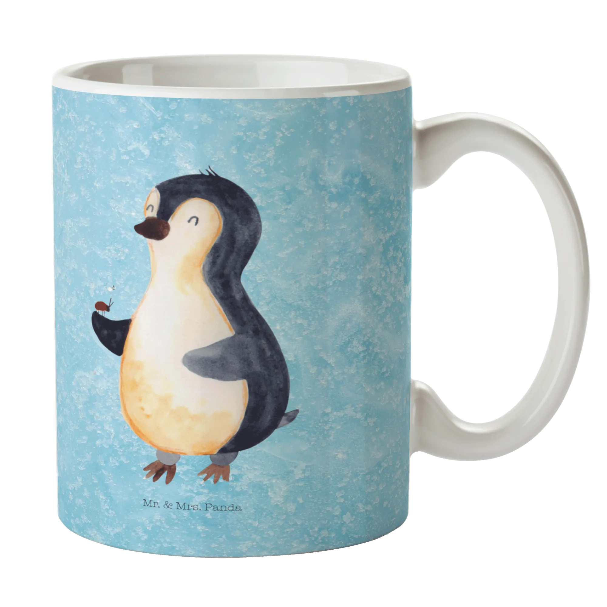 Kubek Pingwin biedronka - z napisem - Ceramika - lodowoniebieski