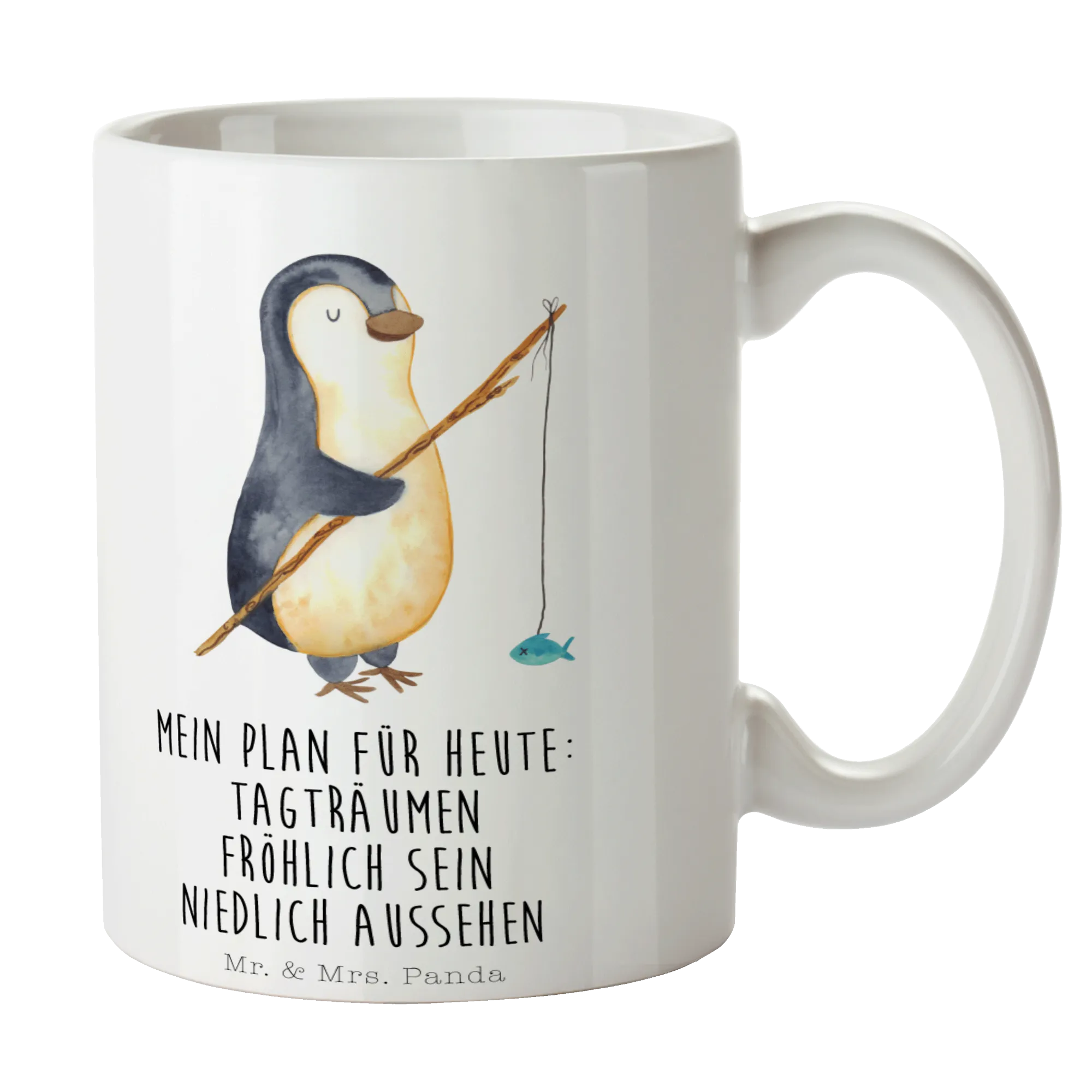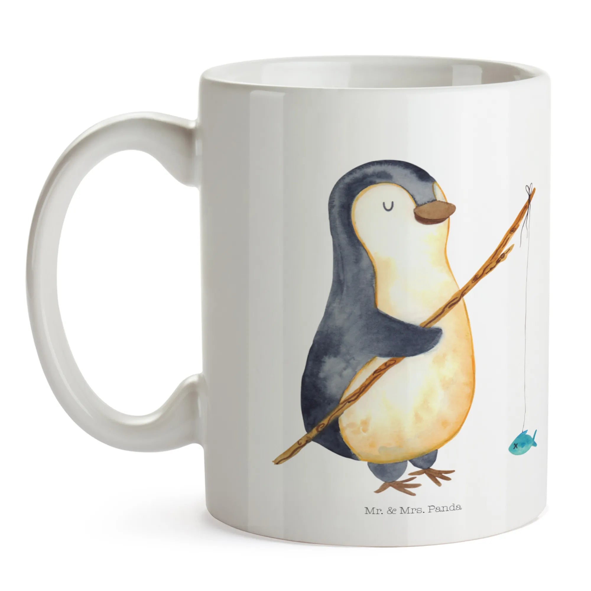 Kubek Pingwin Wędkarz - z napisem - Ceramika - biały