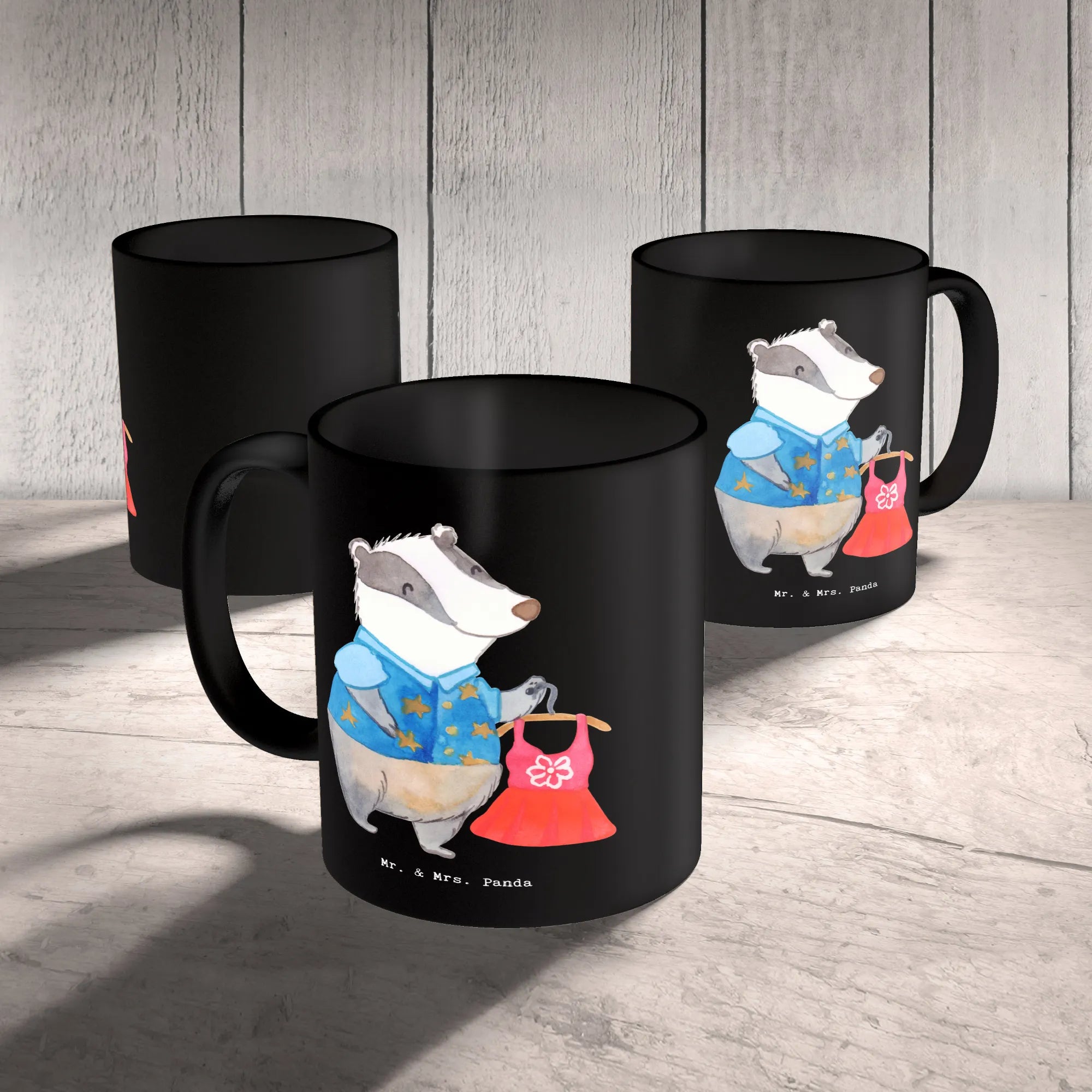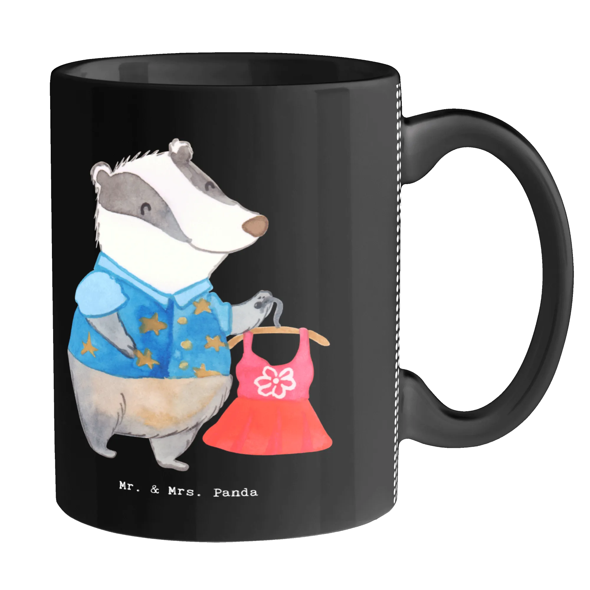 Suchst du das perfekte Geschenk für jemanden aus der Modewelt? Unsere Mr. & Mrs. Panda Tasse „Modedesigner mit Herz" vereint Herz, Stil und Alltagstauglichkeit. Das liebevoll gezeichnete Motiv zeigt einen modisch gekleideten Dachs, der stolz ein schickes Kleid präsentiert – und dazu den frechen Spruch „Du bist nur ein halber Mensch, wenn du kein Modedesigner bist." Ein charmantes Statement für jede Kaffeepause im Atelier oder Büro.