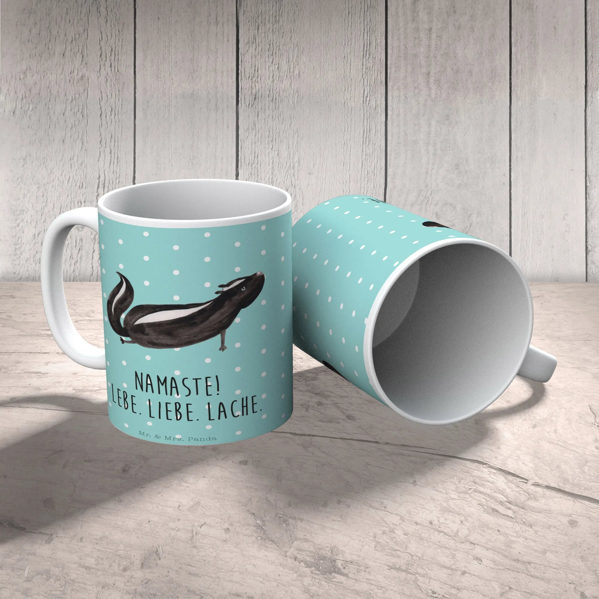 Kubek skunks Joga - z napisem - Ceramika - Turkusowy Pastel