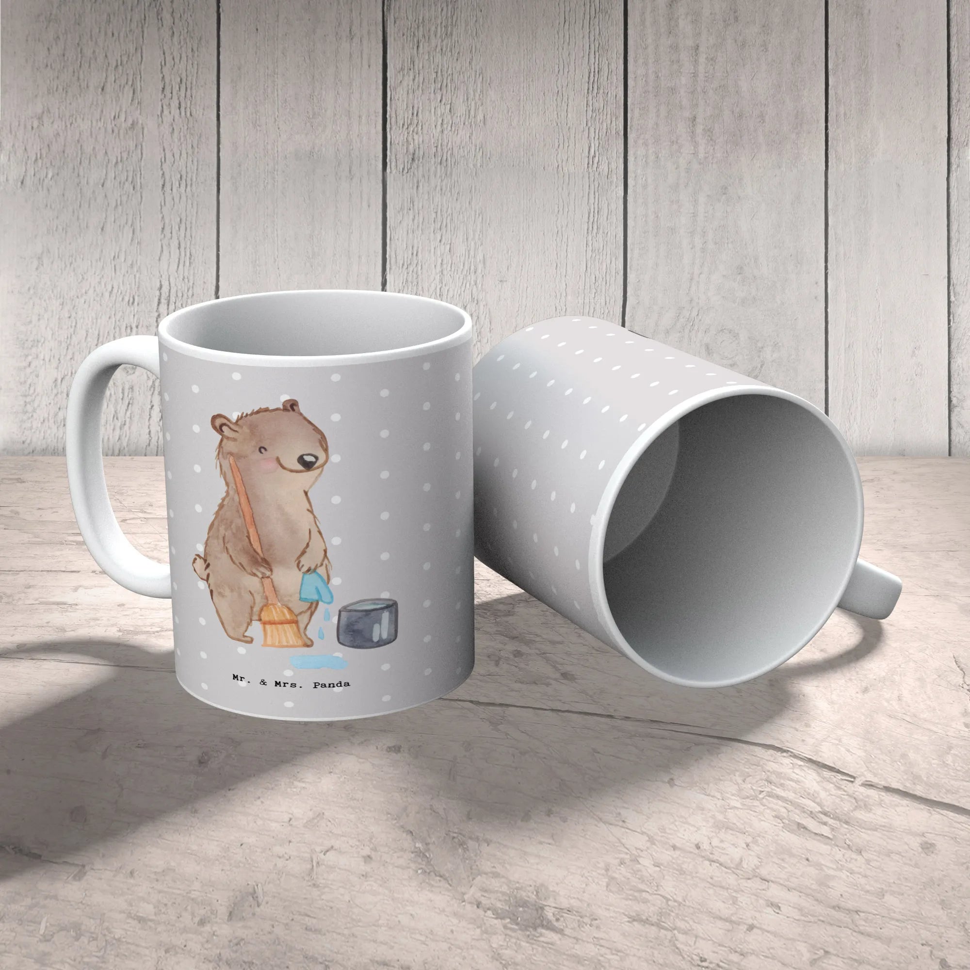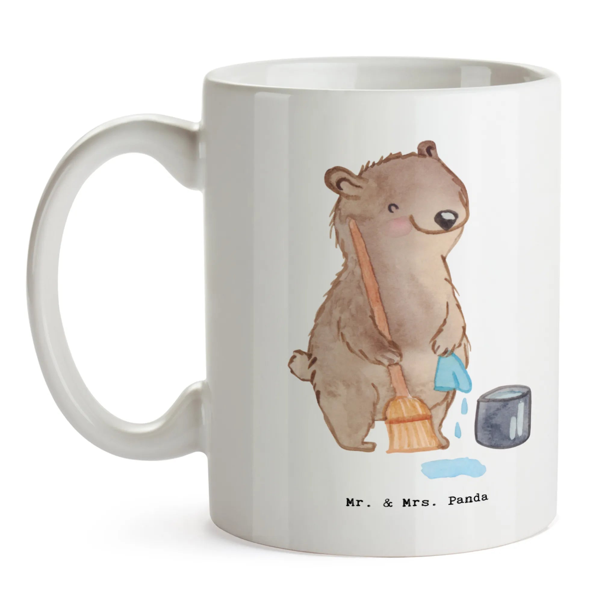 Kubek sprzątaczka Serce - z napisem - biały