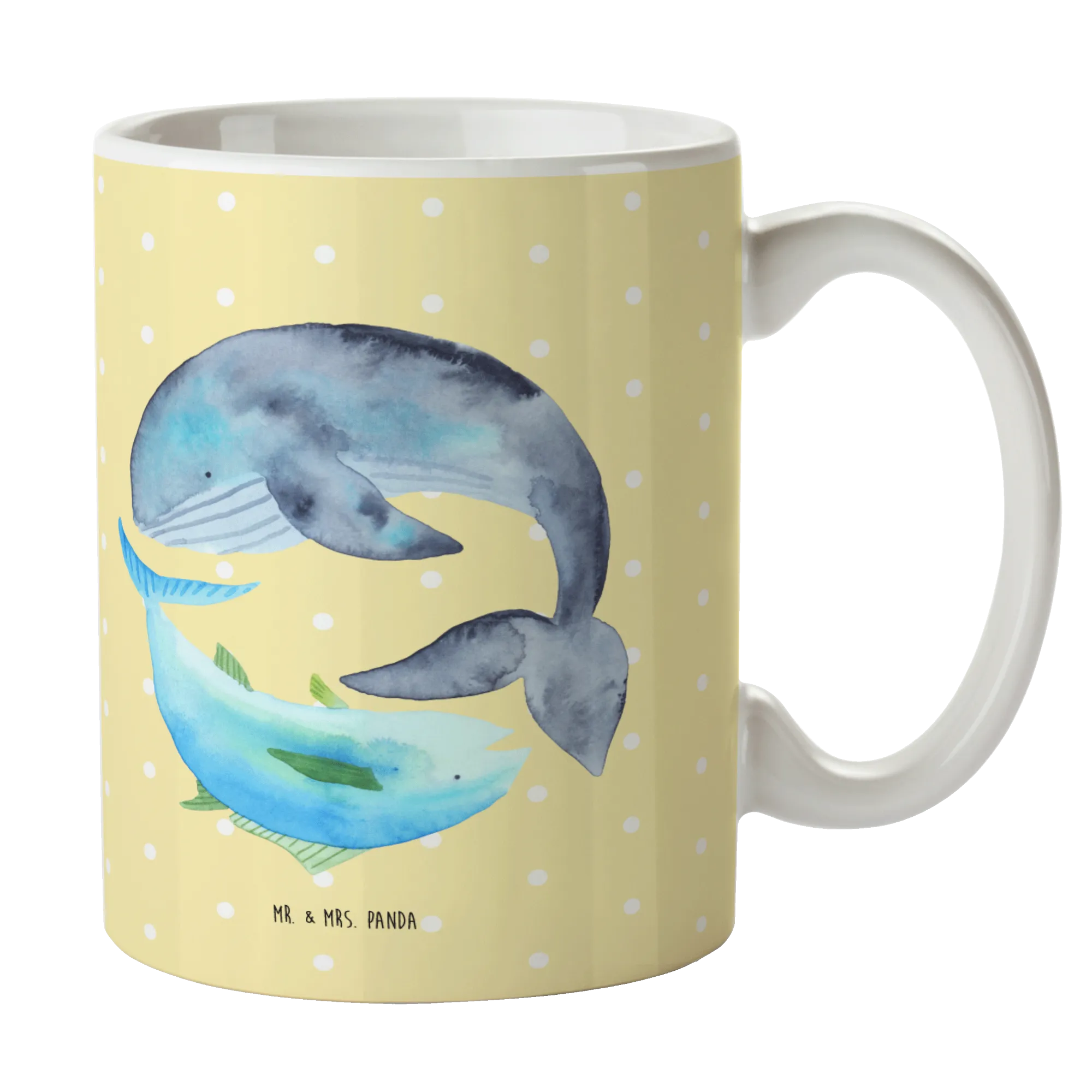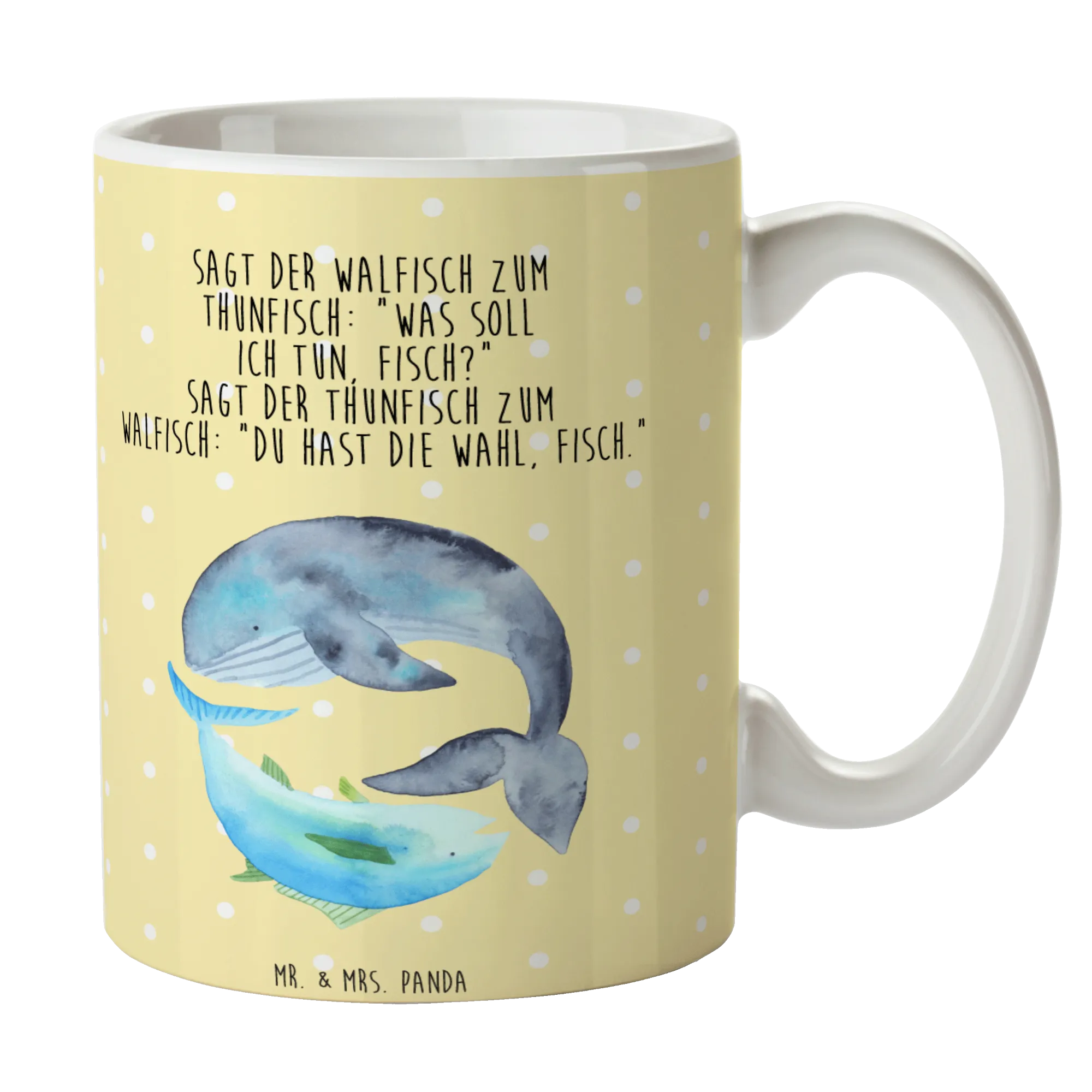 Kubek wieloryb tuńczyk - z napisem - Ceramika - Żółty Pastel