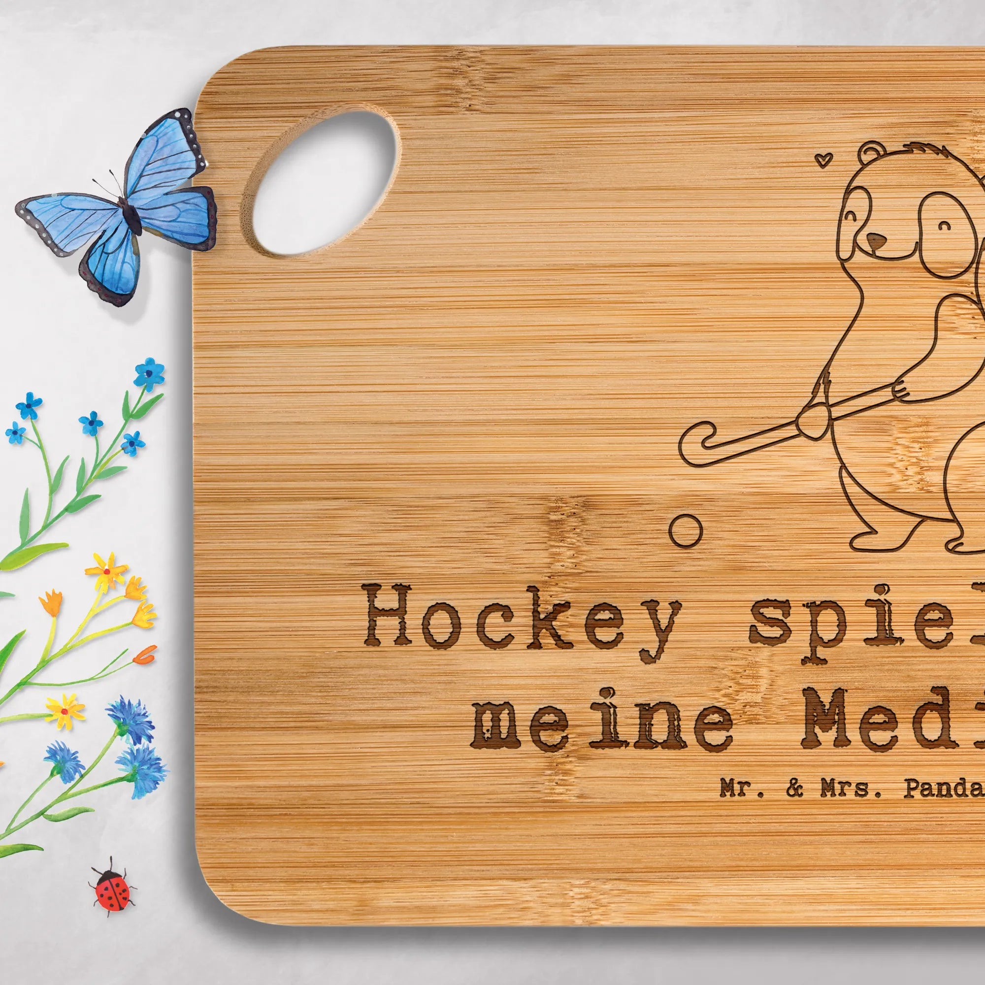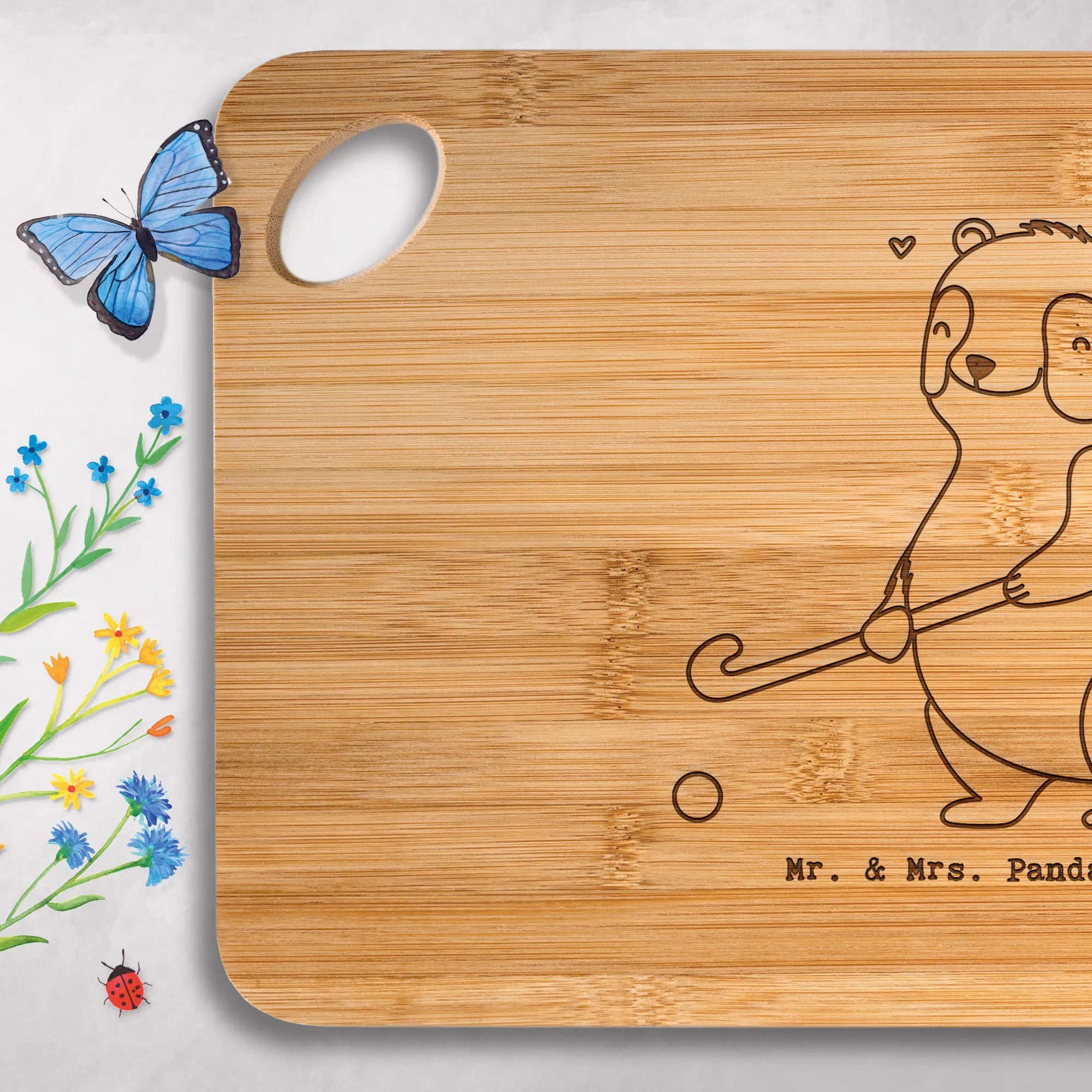Küchenbrett Panda Hockey spielen - mit Spruch